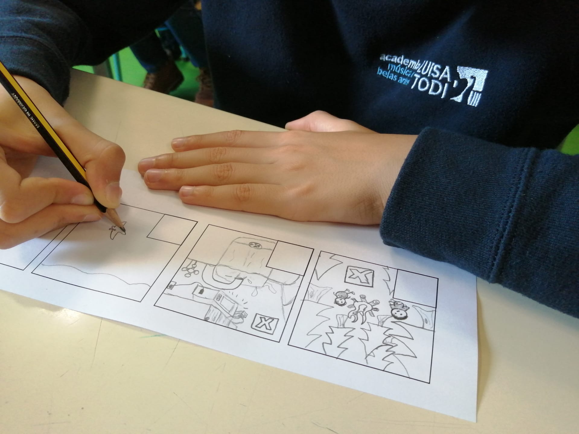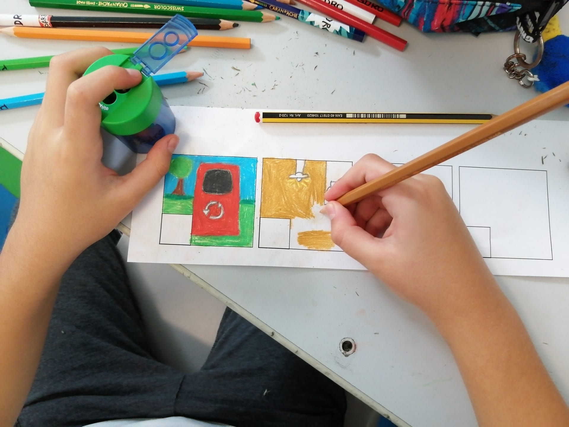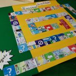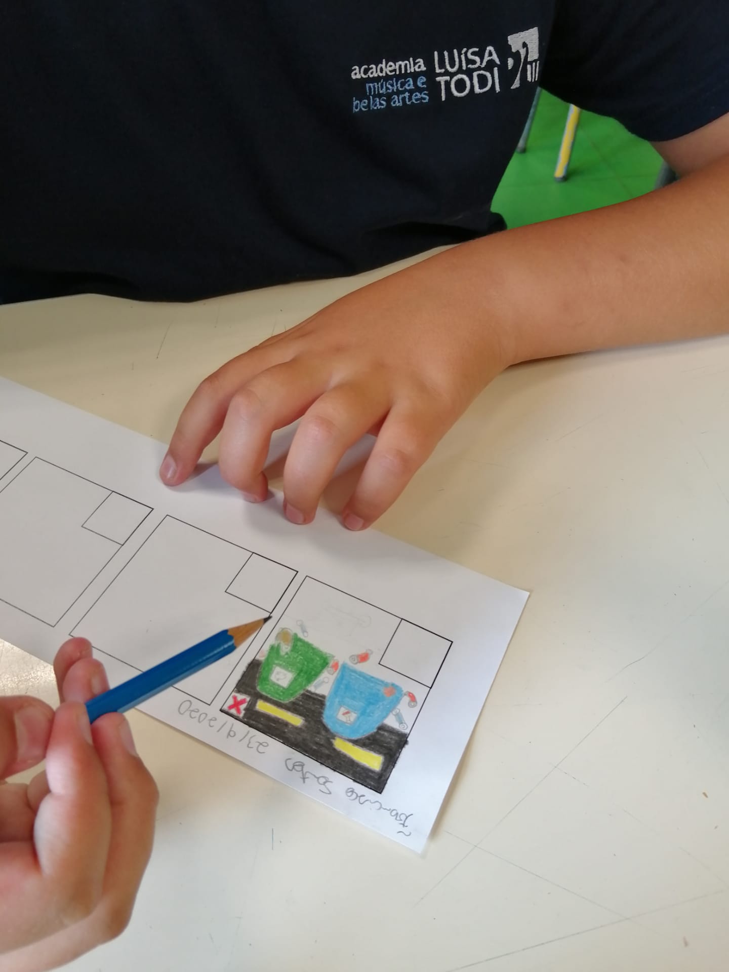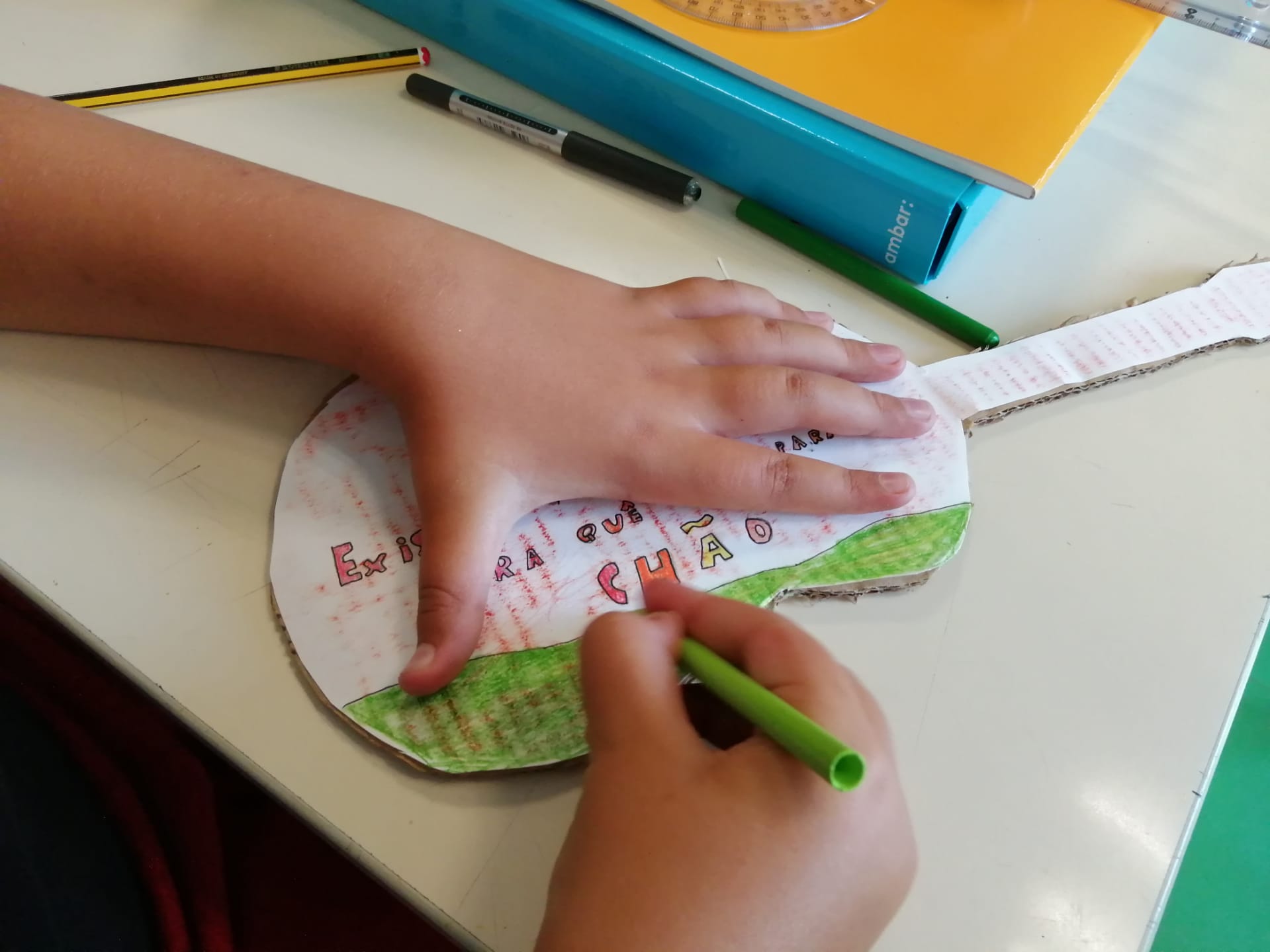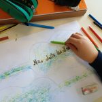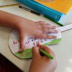 Oficina Criativa – Os alunos do 5º e 6º anos trabalharam em parceria com tarefas definidas para cada ano. O objetivo final foi realizar um tabuleiro do Jogo da Glória da Sustentabilidade. Ao 5º ano coube ilustrar os quadrados do jogo (tal como o 6º ano) e escolher o título do jogo.