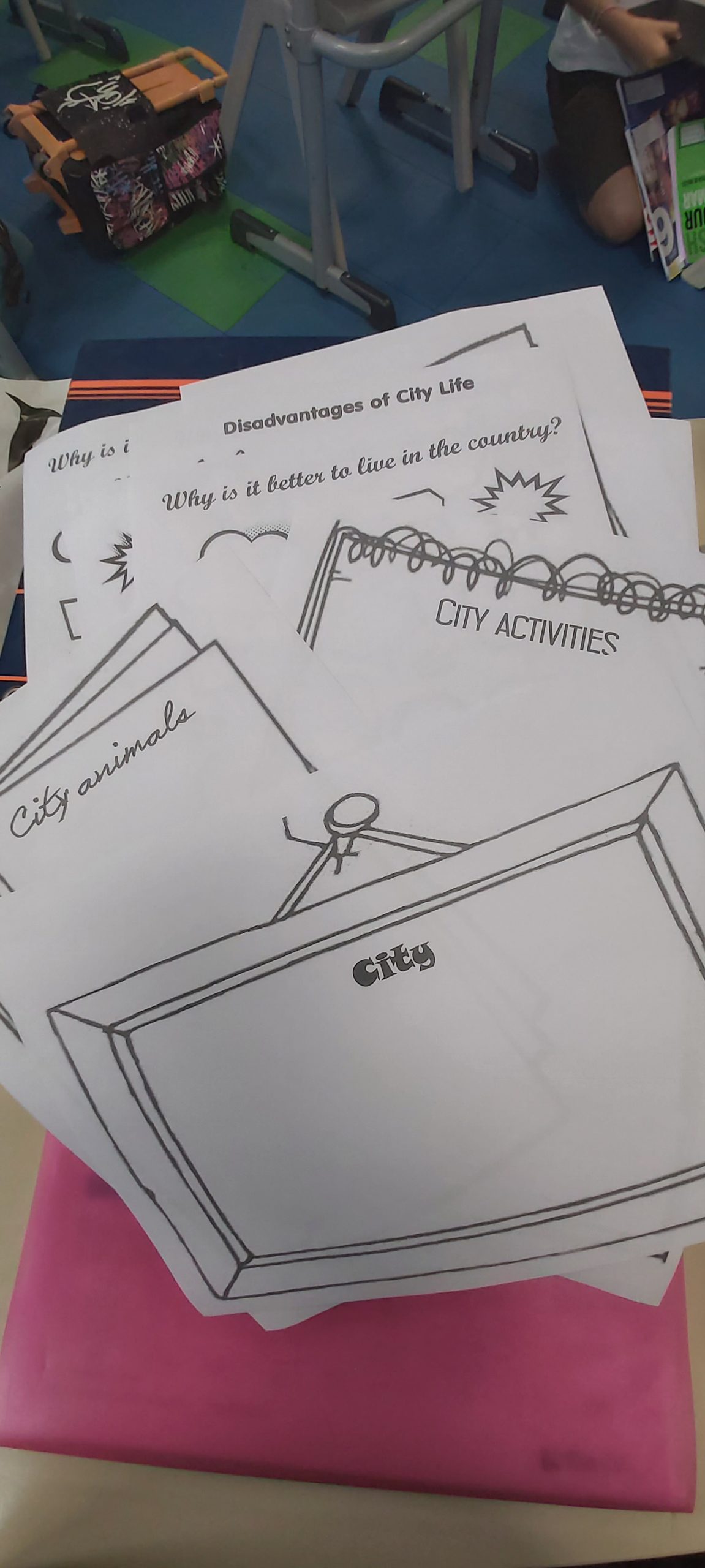 Inglês– Através da história “The country mouse and the city mouse”, os alunos analisaram as diferenças entre o campo e a cidade a nível das vantagens e desvantagens de cada um deles.