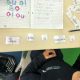 Nas Artes Visuais construíram molduras e colaram alguns desenhos para a elaboração de um painel.