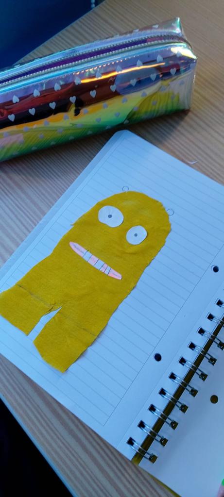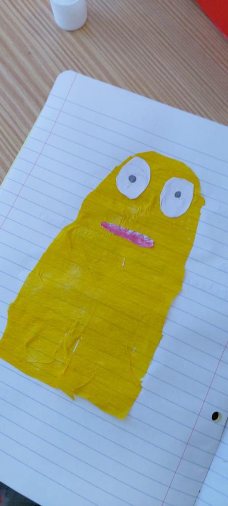 Na disciplina de Inglês trabalharam a história: “ I just ate my friend” e construíram um monstro fazendo colagens.