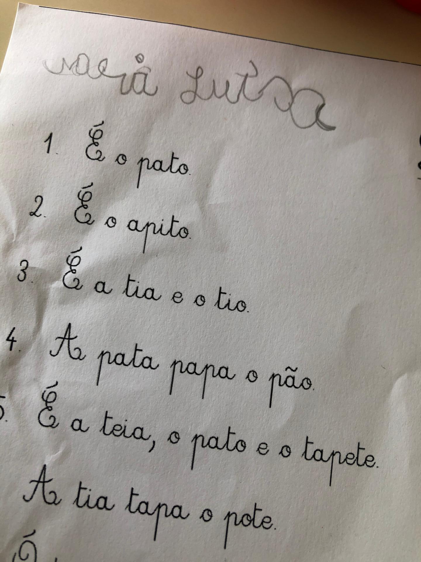 Esta semana introduzimos a consoante “t” com a obra “O Trollzarrão” de Michal Snunit. Começámos a ler e a construir frases com todas as letras já aprendidas e reparámos que já conseguimos escrever imensas palavras! Na semana passada, quando começámos a construir frases, falámos do ponto final e esta semana introduzimos o ponto de interrogação! Para além disso, introduzimos os trava-línguas com uma chuva de ideias – O que são trava-línguas? Porque têm este nome? |