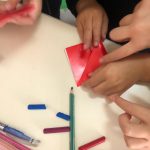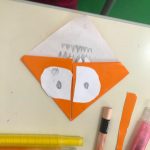 Construímos marcadores em forma de monstros, como o Trollzarrão, e de tigres em origami para nos organizarmos em relação às páginas dos exercícios que levamos para trabalho de casa.