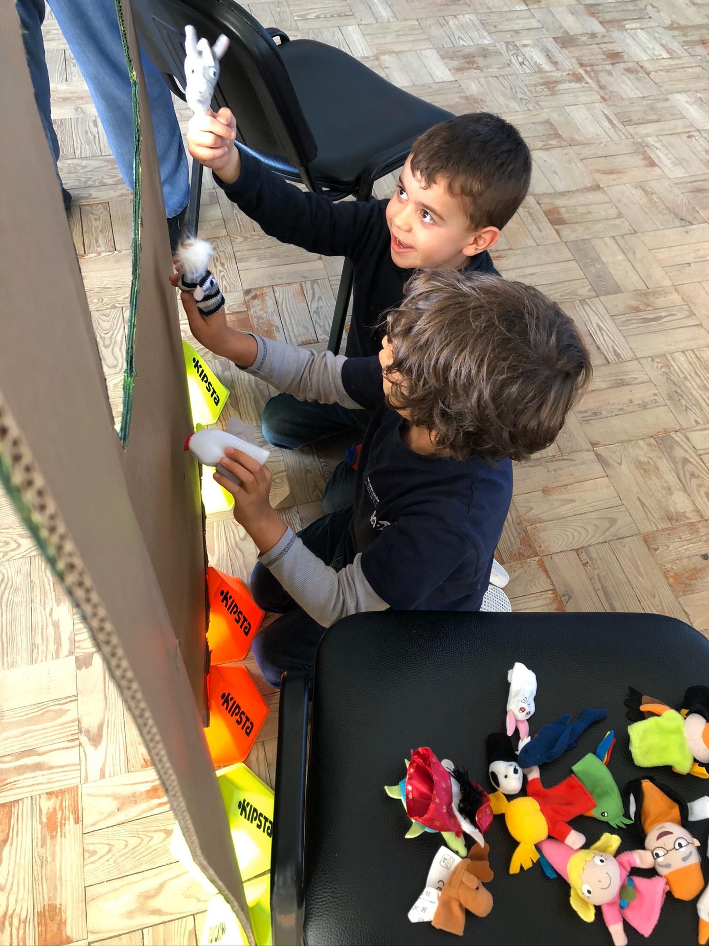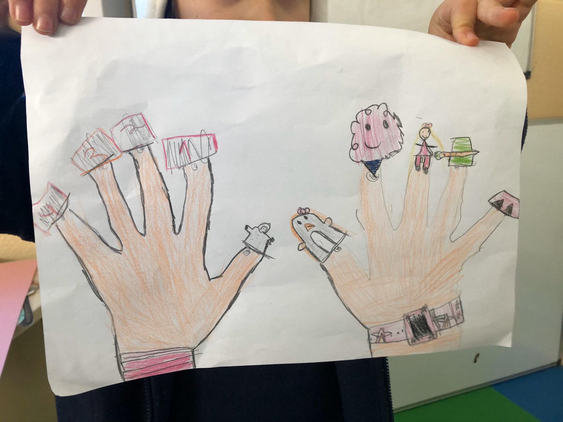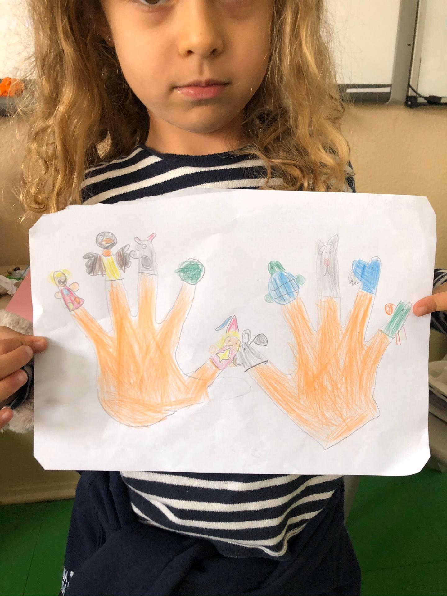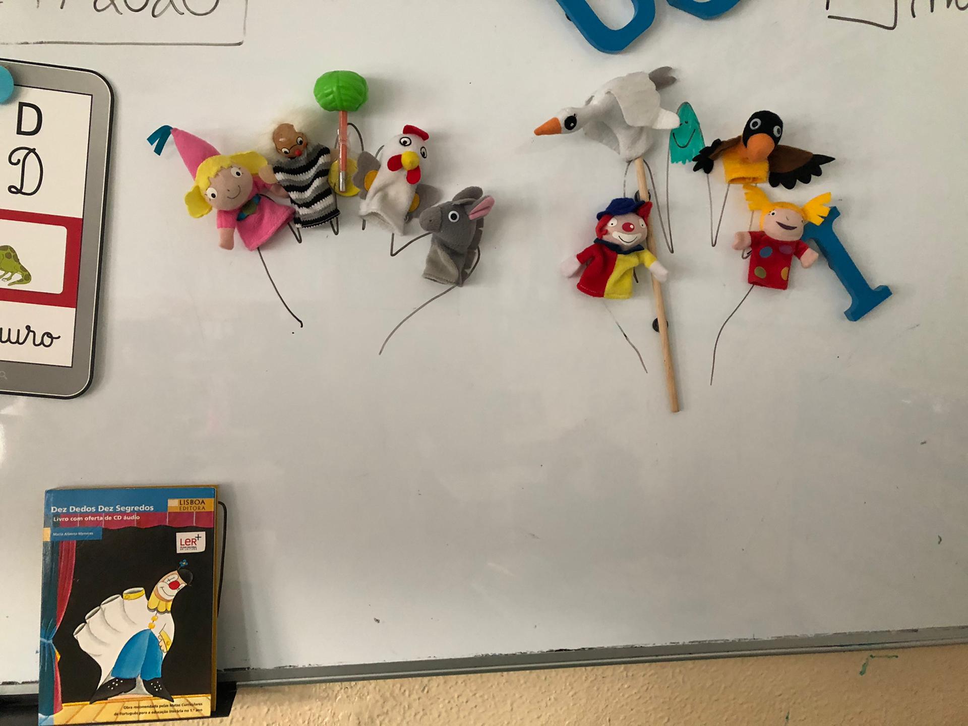 Demos asas à nossa imaginação e, com recurso a fantoches de dedos, improvisámos as nossas histórias, apresentando-as à turma. |