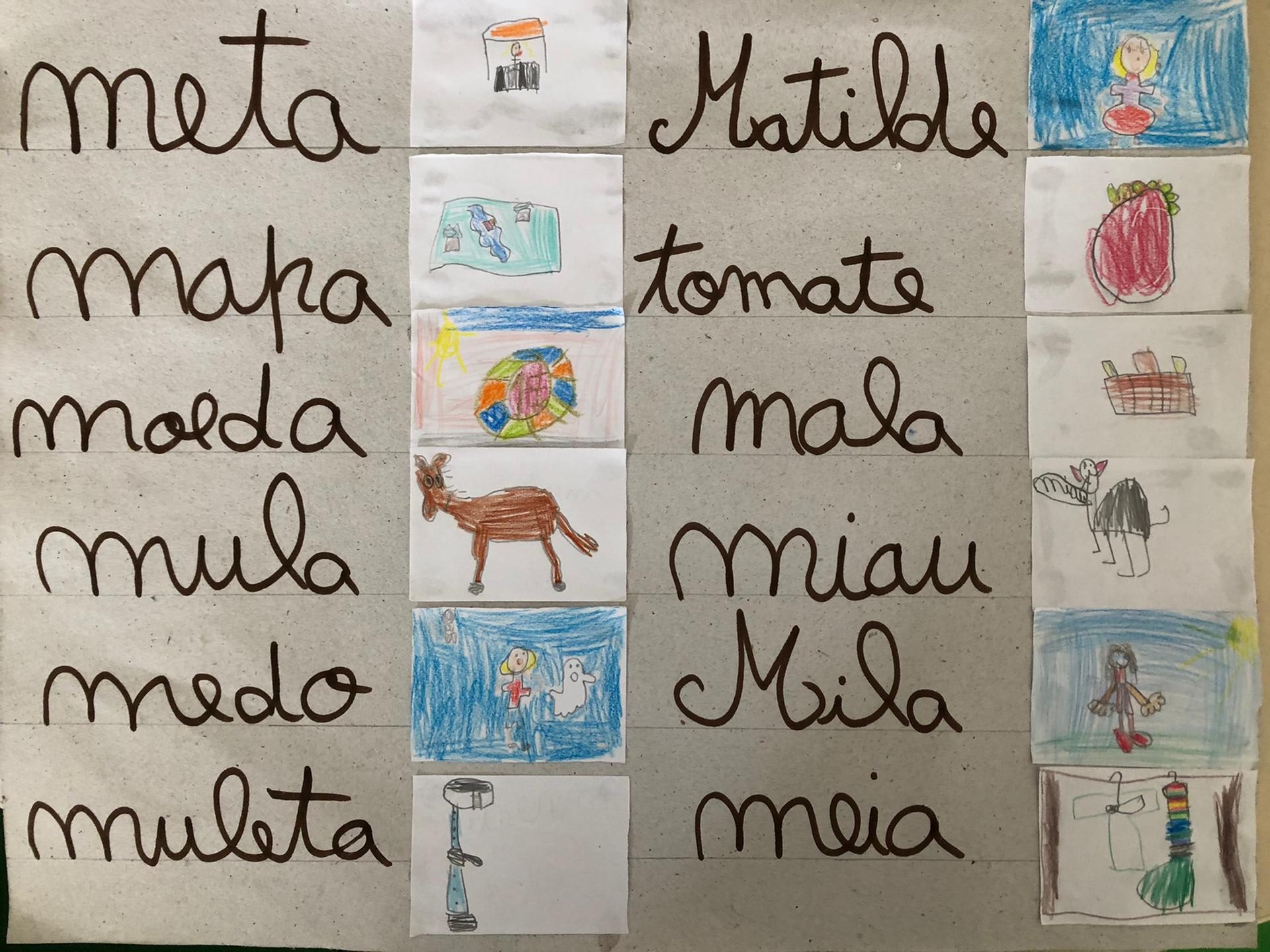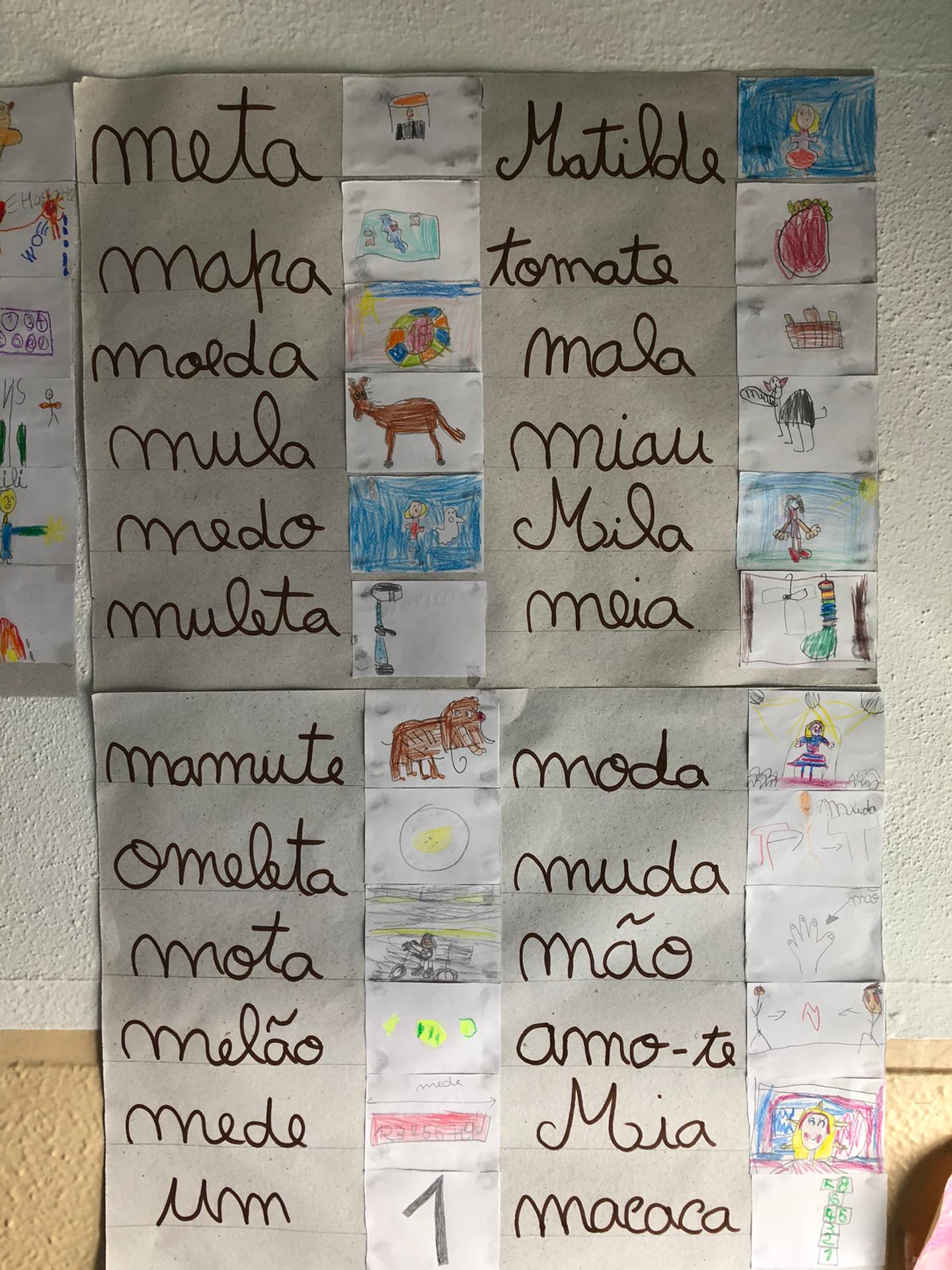Esta semana introduzimos a consoante “m” com a obra “Maria-vai-com-as-outras” de Sylvia Orthof. A ovelha Maria, protagonista da nossa história, fazia sempre o que as outras ovelhas faziam! Se as ovelhas decidissem ir para a esquerda, lá ia a Maria para a esquerda. Se decidissem subir uma montanha, lá ia a Maria atrás das ovelhas… Esta é uma história que destaca a importância de tomarmos as nossas próprias decisões! À consoante “m” juntámos o ditongo “ãe” e obtivemos uma palavra especial, a palavra mãe. Ao nível da oralidade, realizámos um momento de partilha com a turma – “Como é a minha mãe?”. |