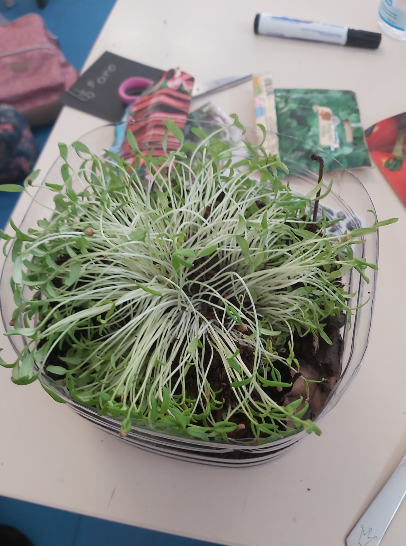 Ciências- Os alunos de 5.º ano iniciaram uma horta. Começaram por semear sementes de tomate, girassol e salsa que trouxeram de casa em pequenos vasos. Semearam também um abacate. Replantaram algumas plantas comestíveis que nos foram oferecidas por uma empresa que as semeia. Os alunos ficaram responsáveis pela manutenção da sua horta. Pequenos grupos ficaram responsáveis por regar as plantas.