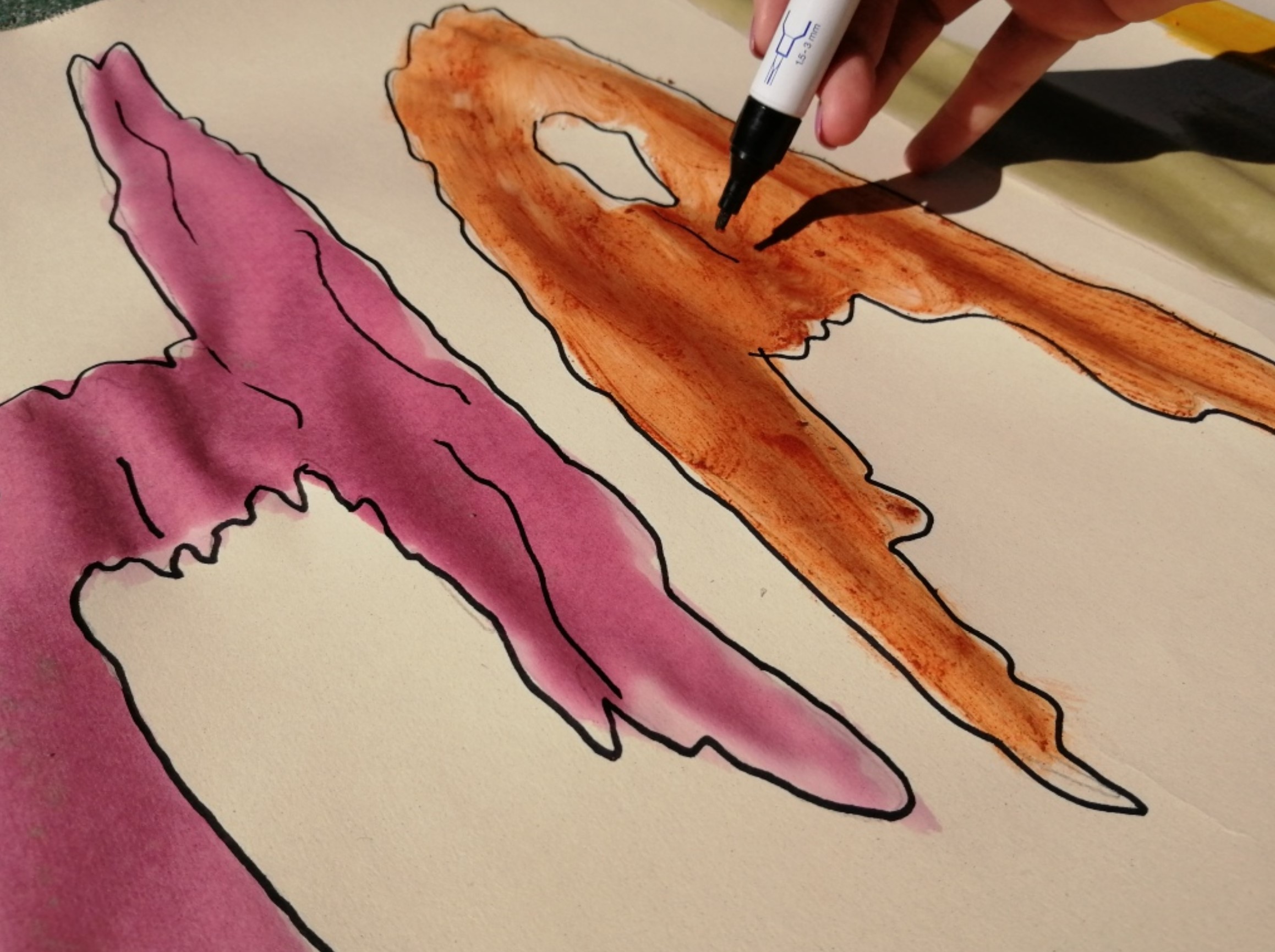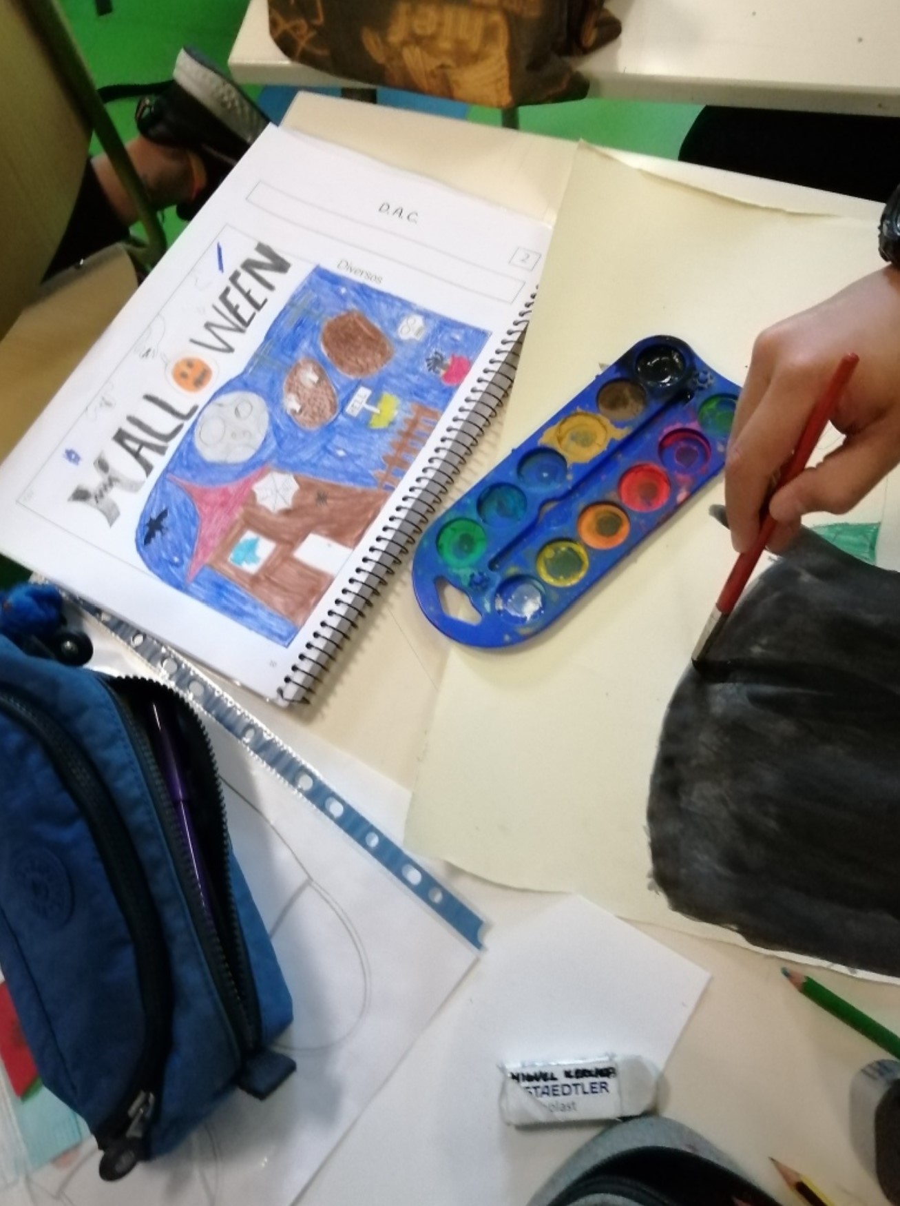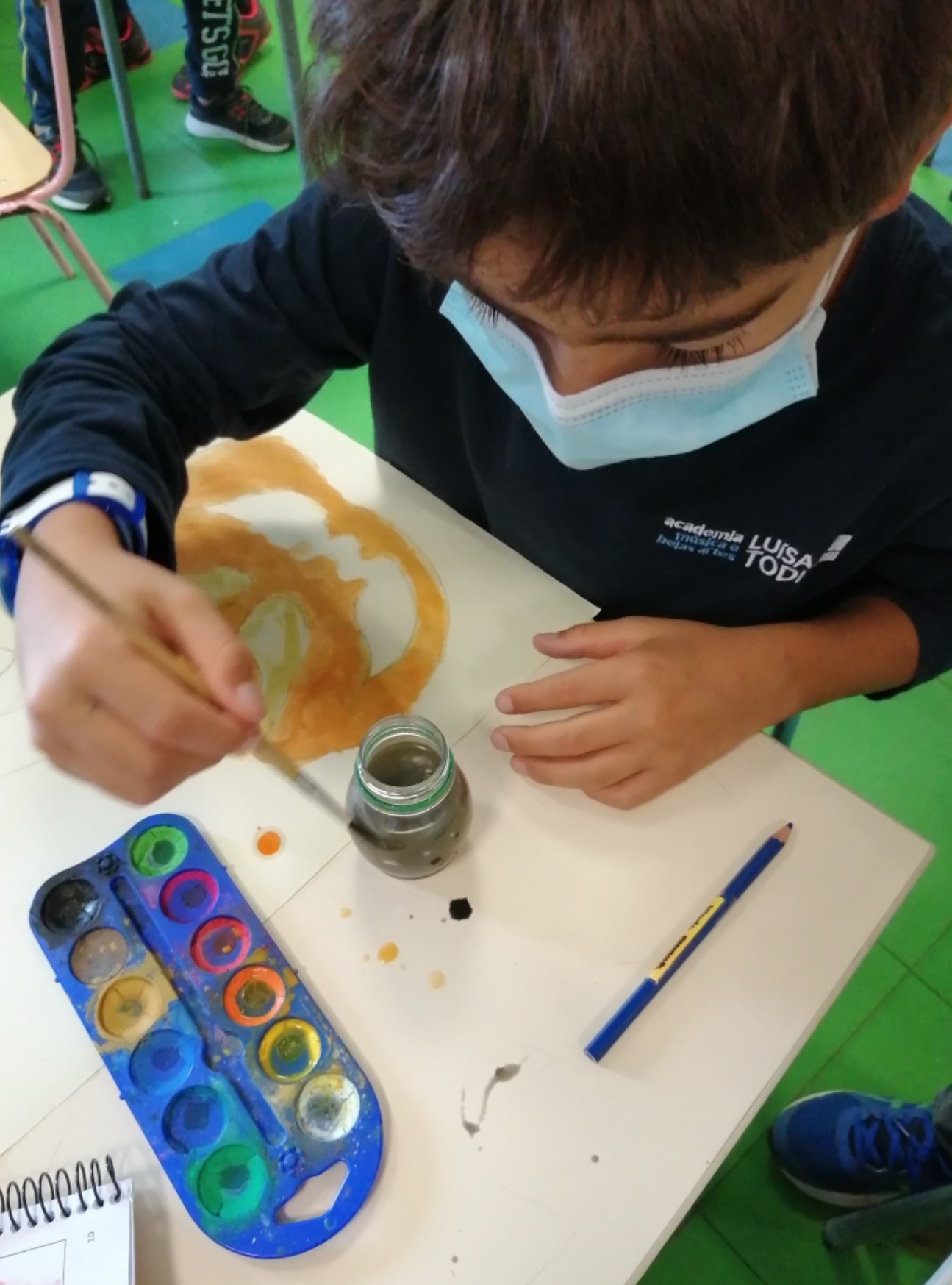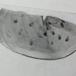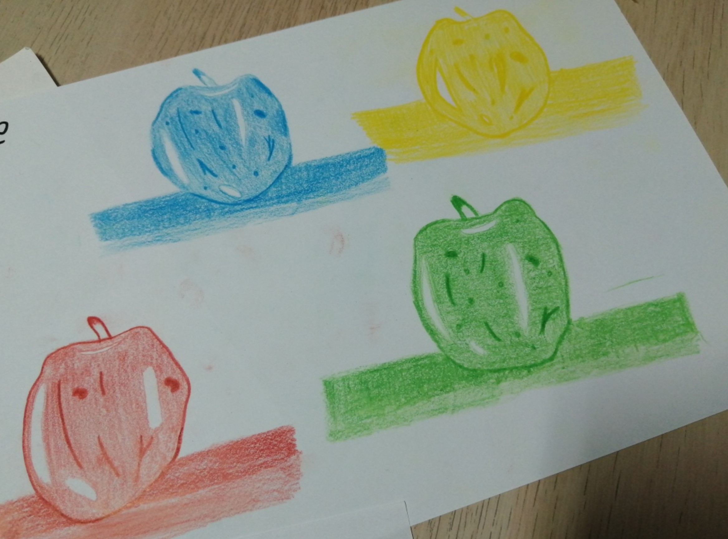 Educação Visual – Realização de desenhos à vista de alimentos com diversos materiais riscadores. De acordo com o tema de Halloween, foi feito um desenho à vista de uma abóbora com a utilização da noção de tridimensionalidade. Com o material riscador Lápis de Cor, foi feita a reprodução do referido desenho para trabalhar a bidimensionalidade.