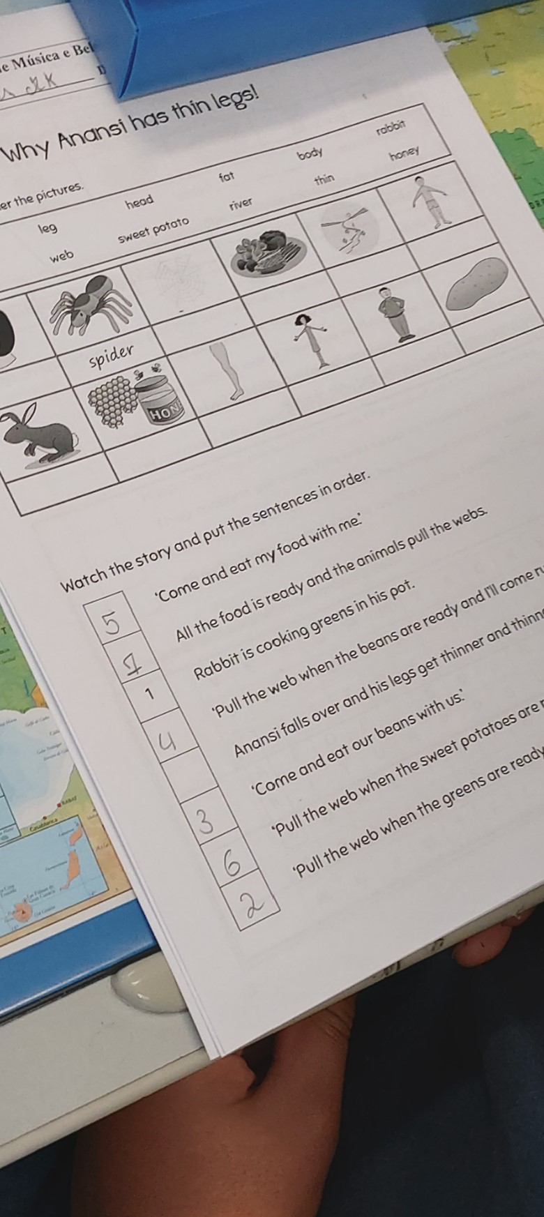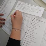 Matemática- Realização de expressões numéricas, cada uma correspondente a uma letra do abecedário. Após realização das expressões numéricas, utilizaram um código para decifrar a frase relacionada com o tema Sustentabilidade.