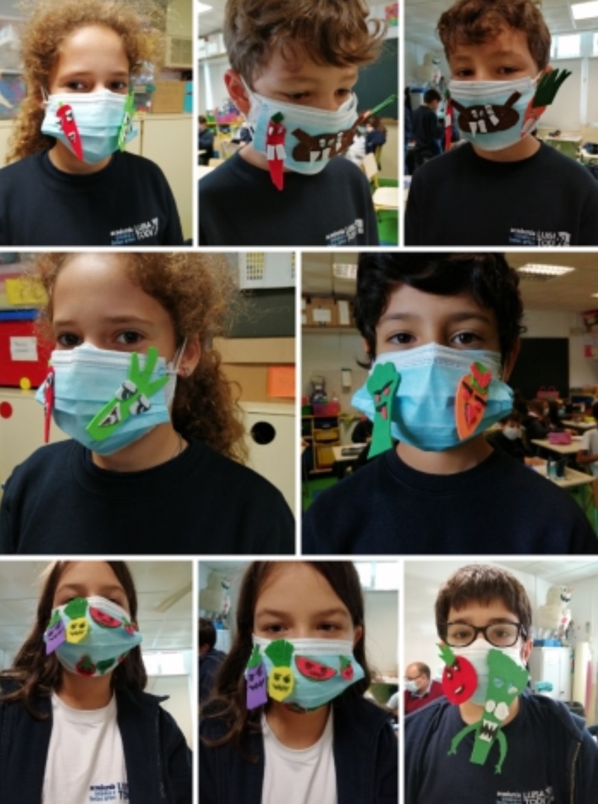Oficina Criativa – Realização de um projeto de decoração de uma máscara com alimentos “assustadores”. Recriação dos alimentos com cartolina Eva e Feltro. Colocação de todos os elementos realizados numa máscara descartável. Realização de elementos decorativos alusivos ao Halloween.