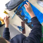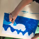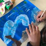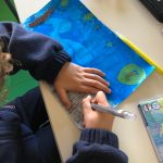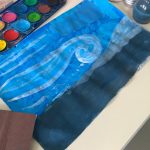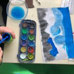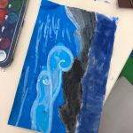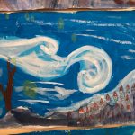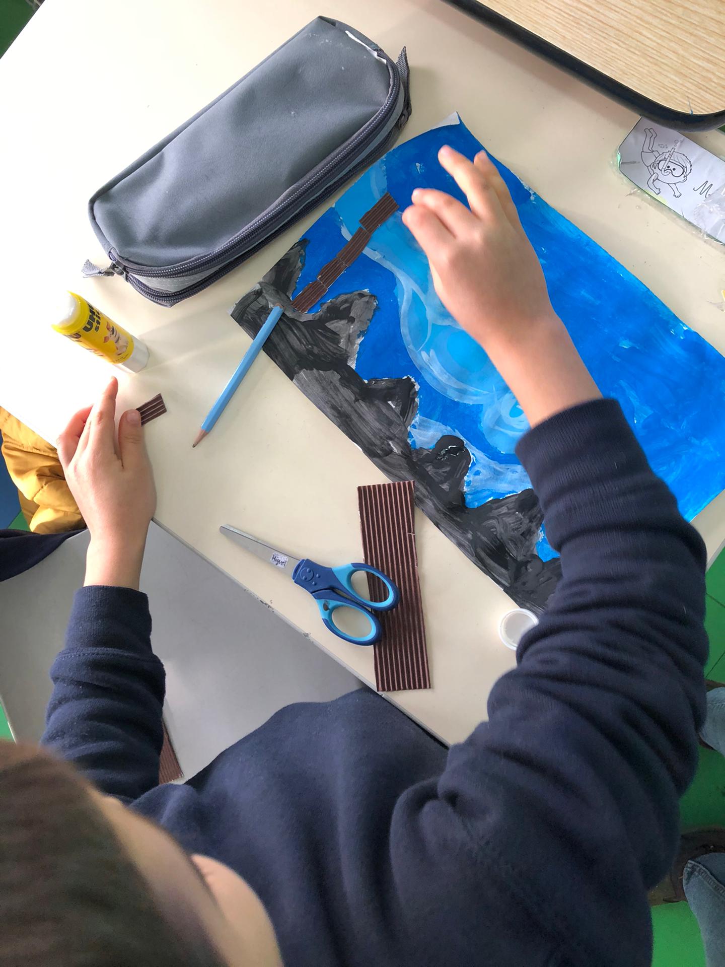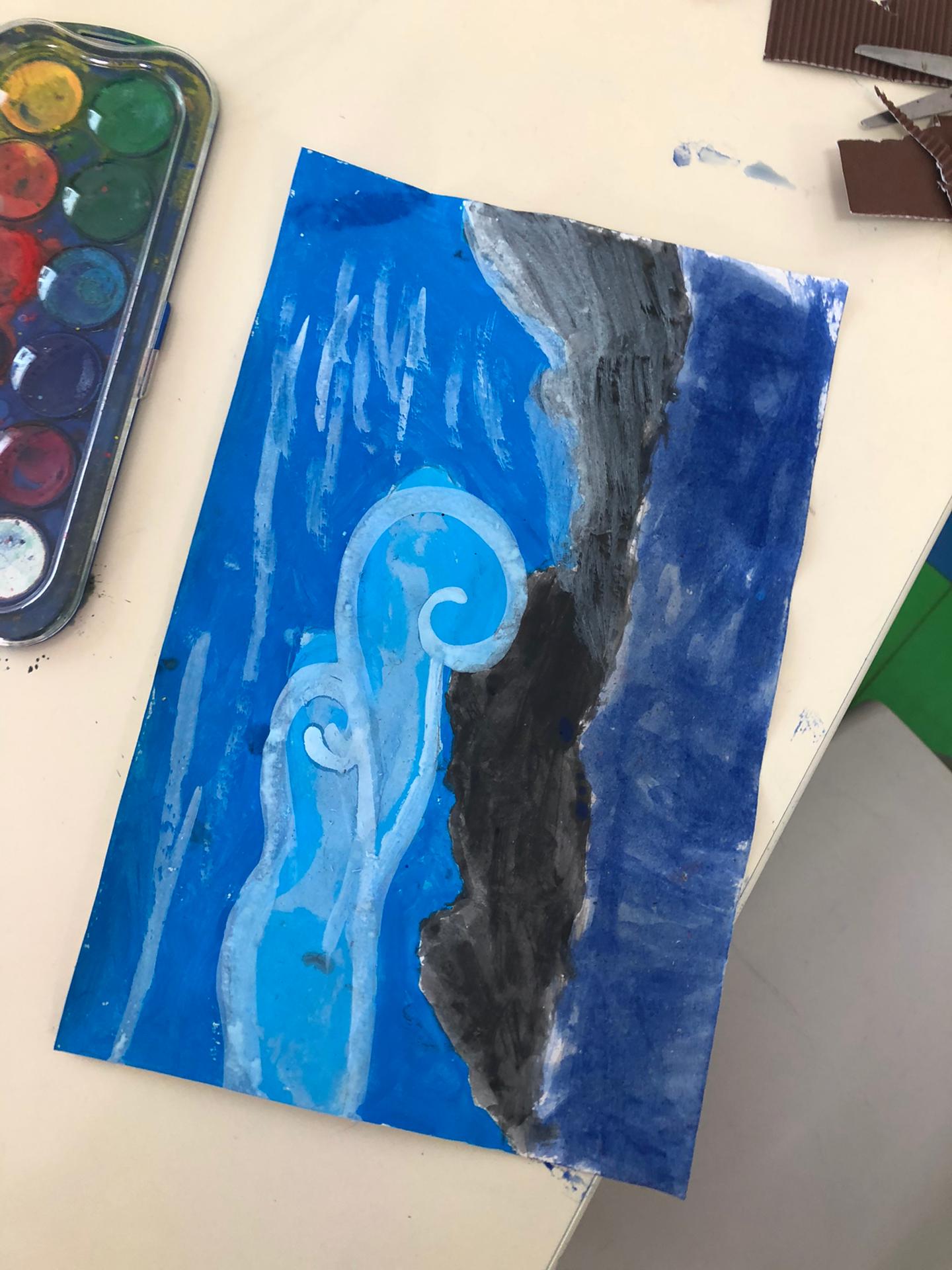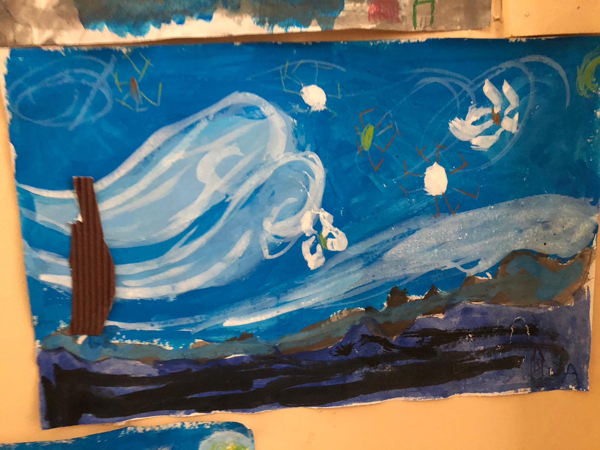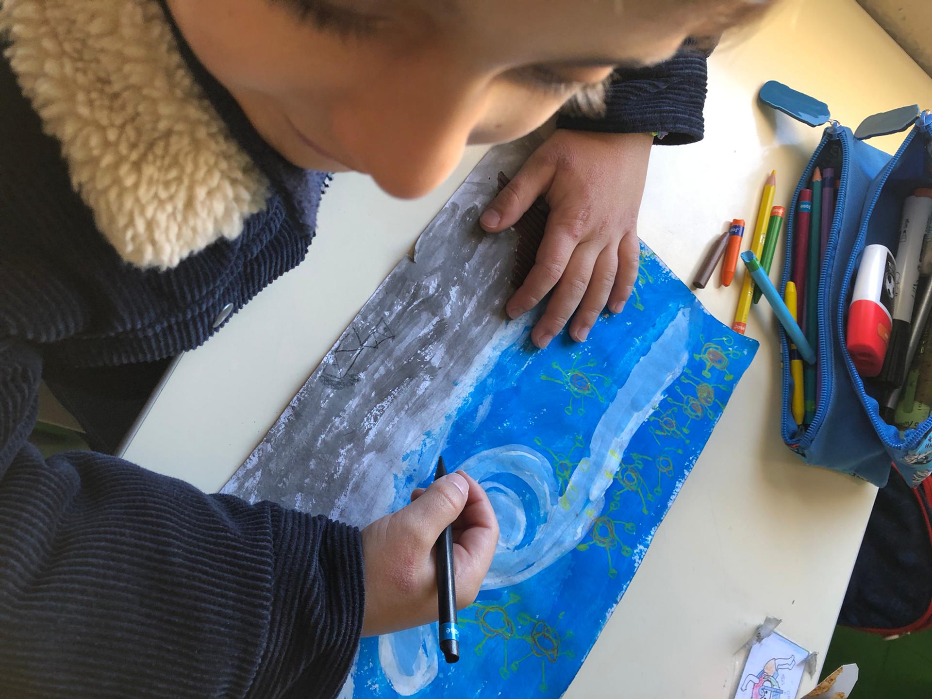 Pintámos um desenho, com lápis de cor, inspirado na obra “A noite estrelada” de Van Gogh. |