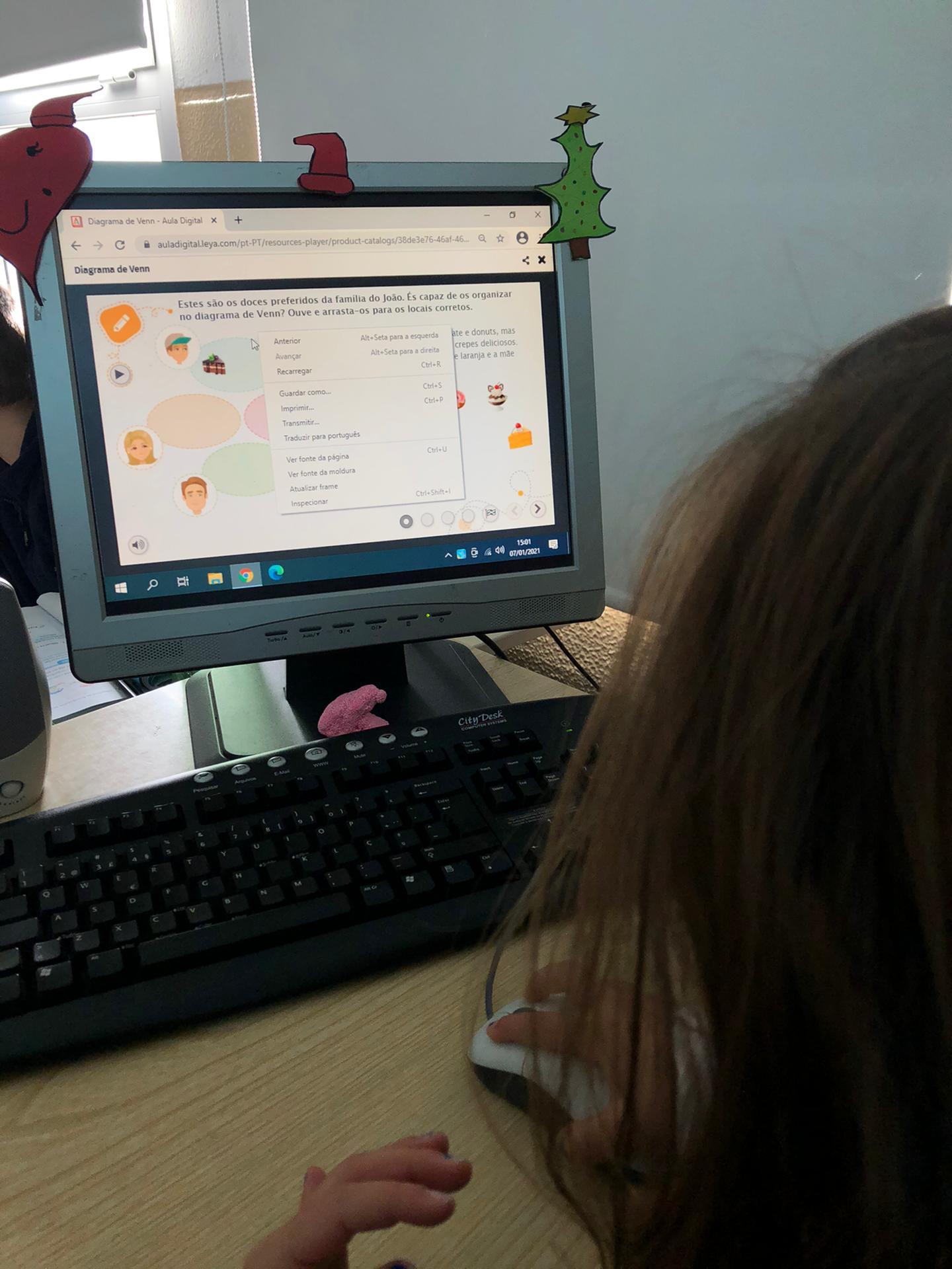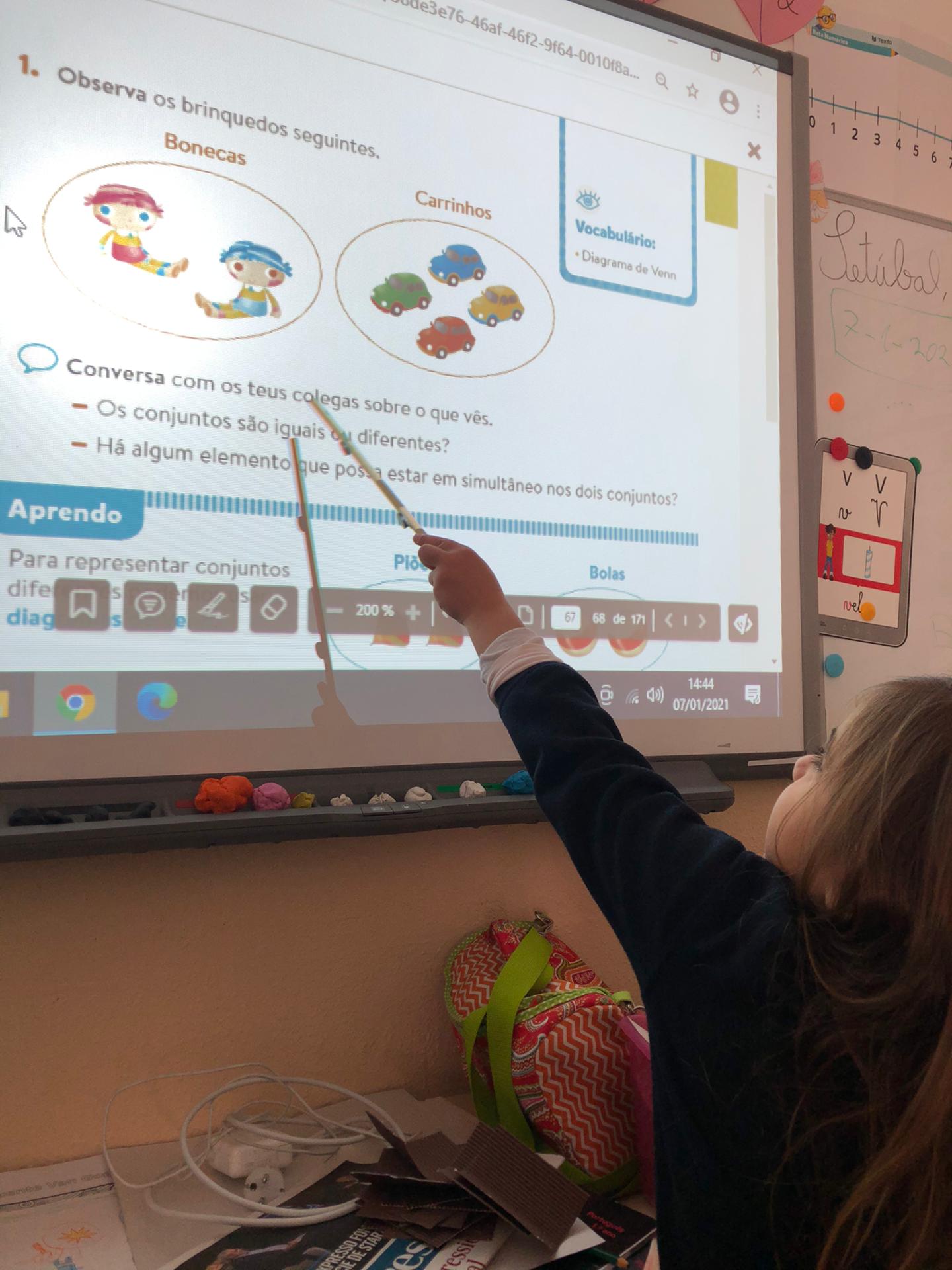 Introduzimos os diagramas de Venn com uma chuva de ideias. Explorámos conceitos, como: conjunto, elementos, critérios de seleção (forma, tamanho, cor). Realizámos a atividade de cálculo mental “Velocidade nas somas coloridas”, onde a cada minuto, utilizando uma cor à nossa escolha, tivemos o desafio de realizar o maior número de operações que conseguíssemos. Trocámos de cor após cada minuto e, no final, trocámos de folha com um dos nossos colegas e verificámos quais as operações corretas e incorretas do nosso colega. |