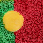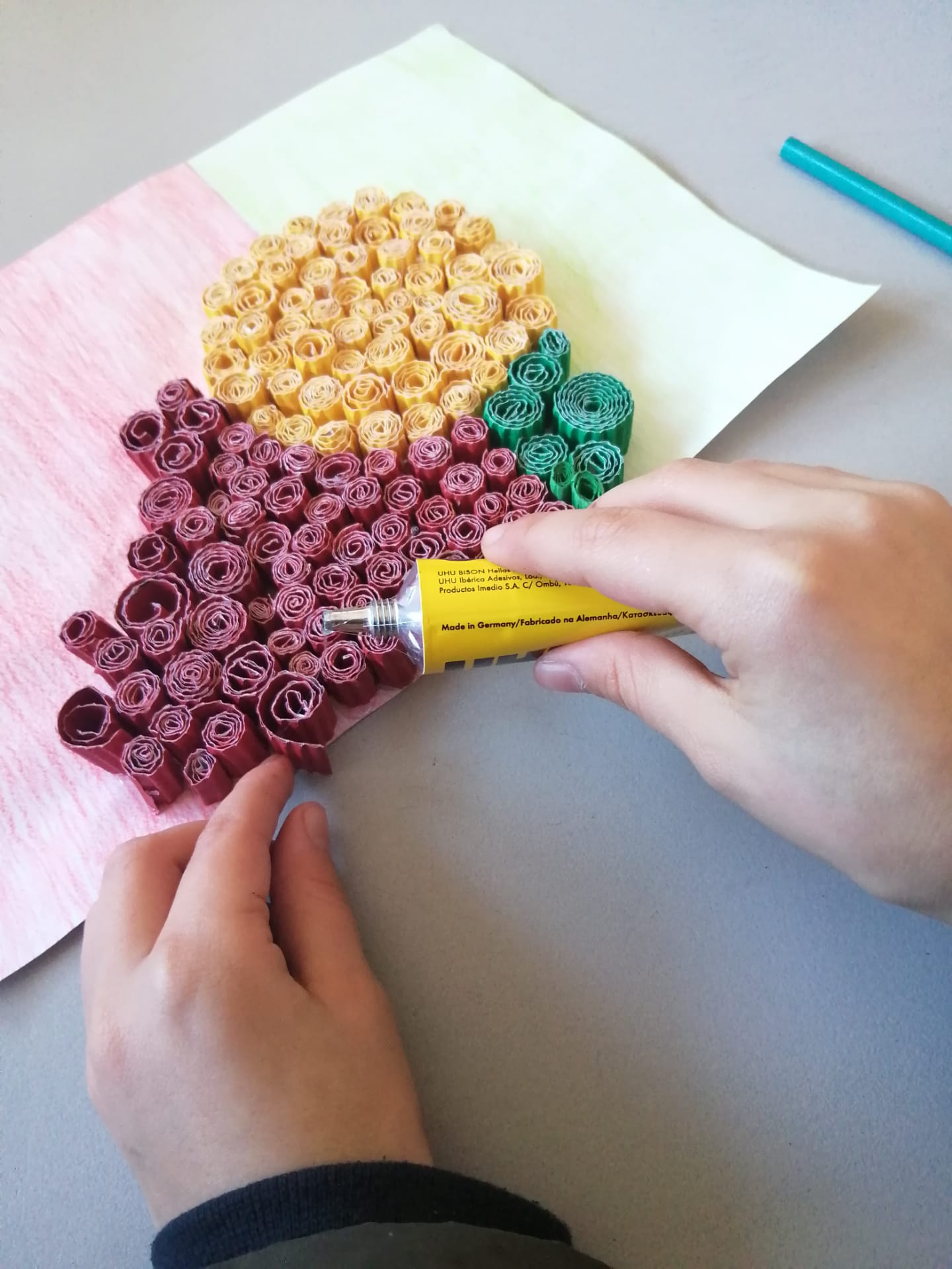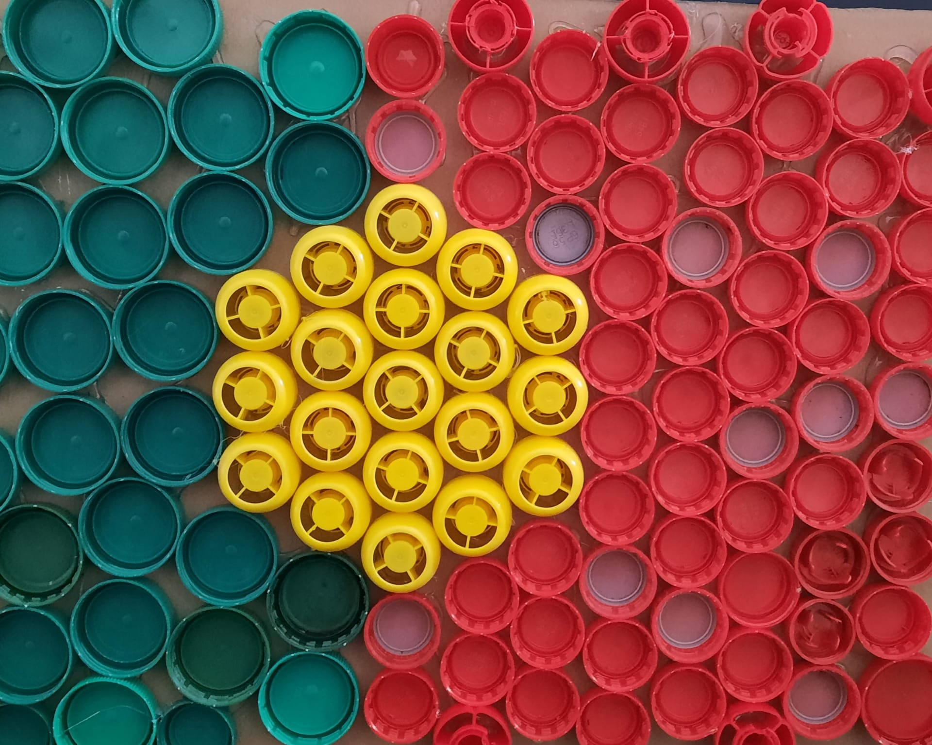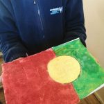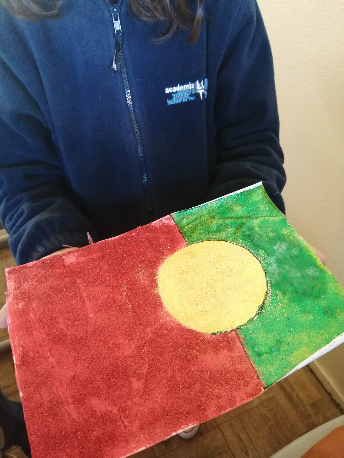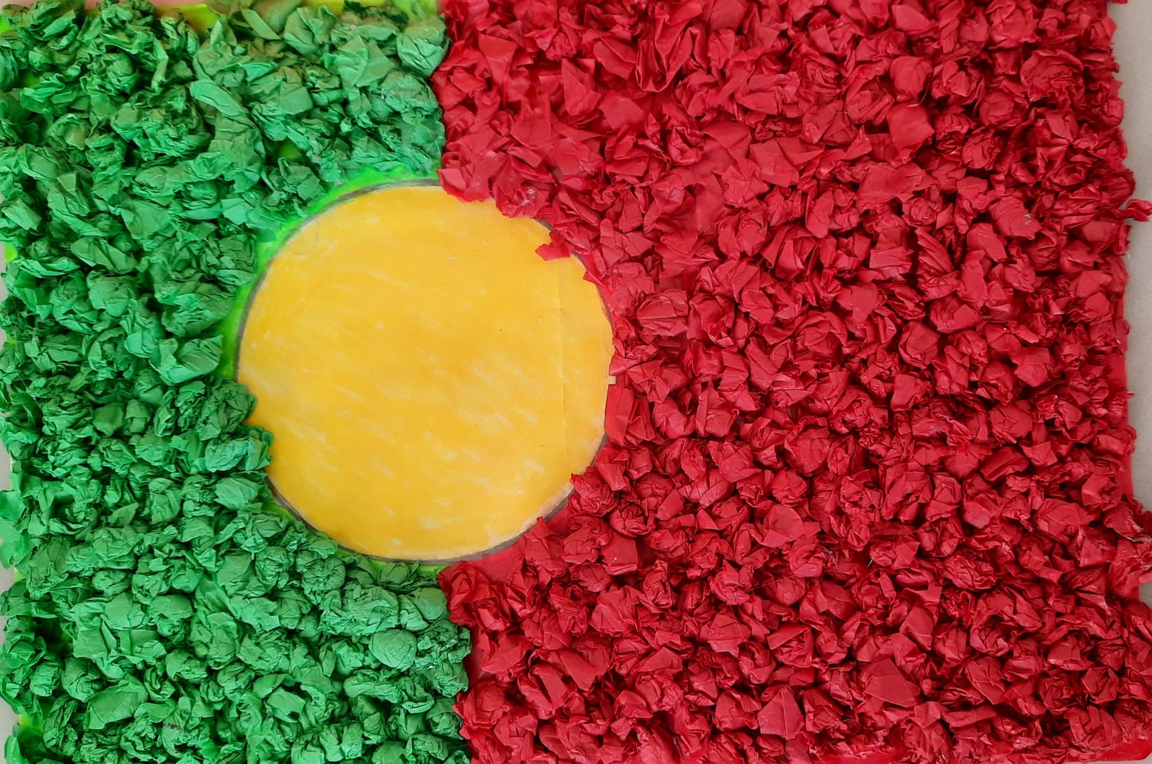Em Artes Visuais construímos bandeiras de Portugal com materiais reciclados.