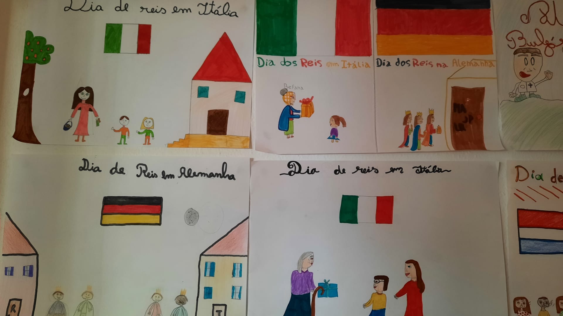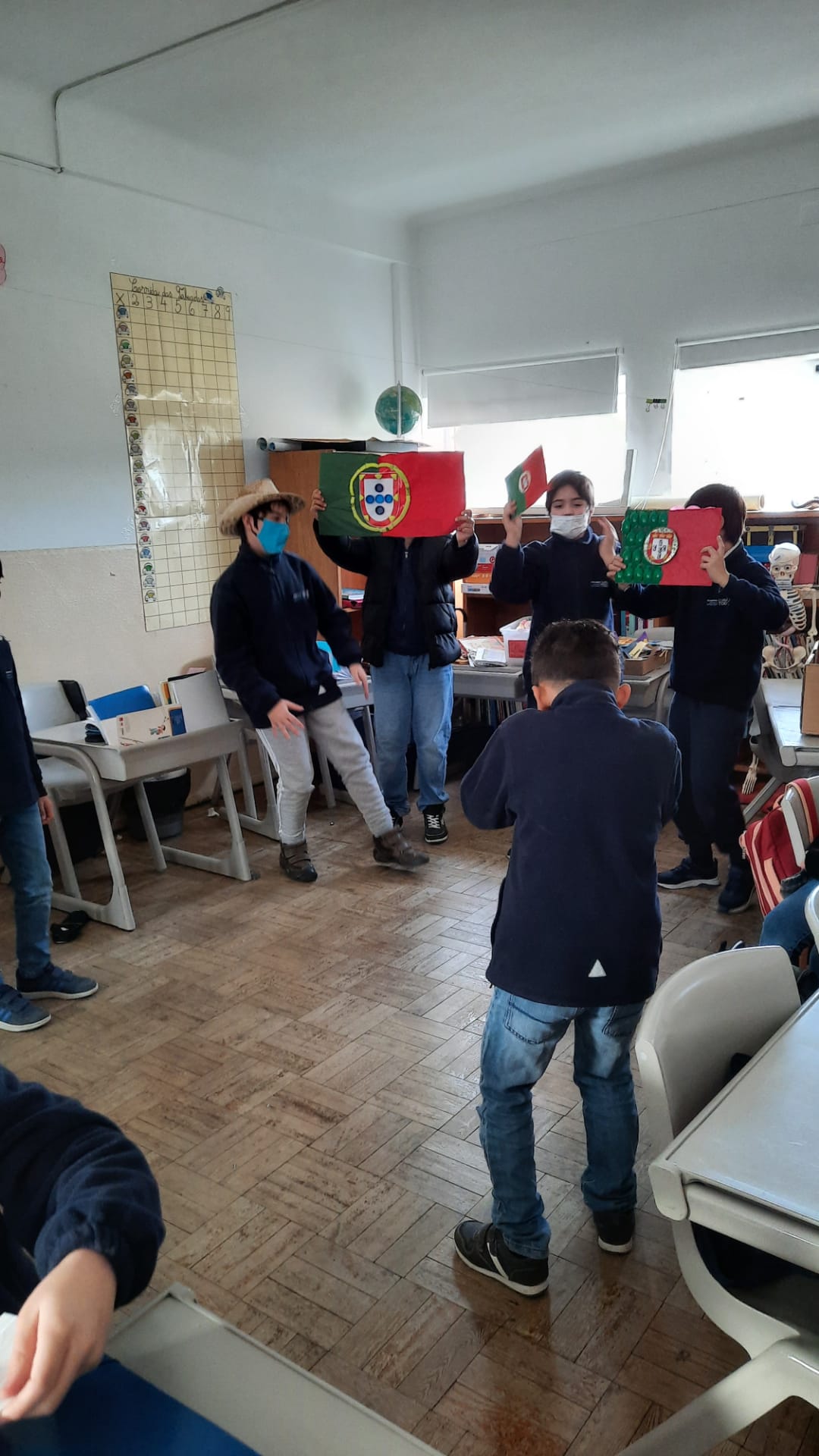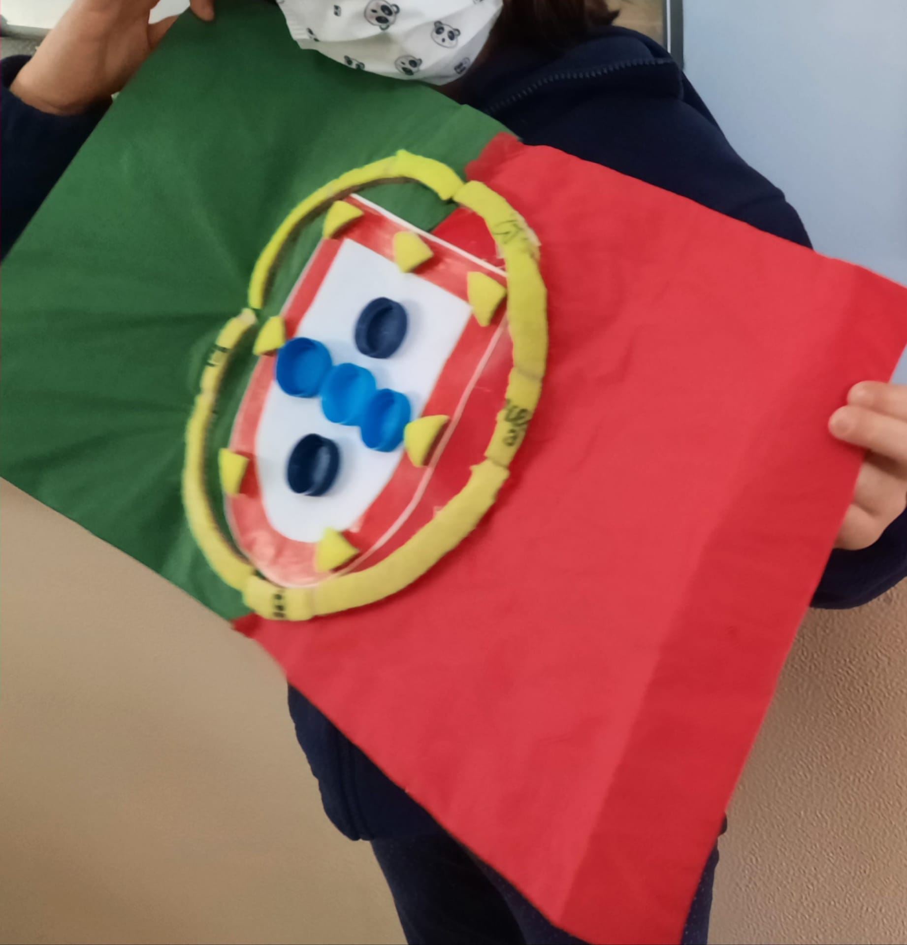 Na aula de estudo do meio abordámos os vários símbolos nacionais. No Dia de Reis, pesquisámos várias tradições deste dia pela Europa. E ouvimos o hino da União Europeia. Em aula invertida os alunos apresentaram à turma bandeiras de Portugal, construídas em família.