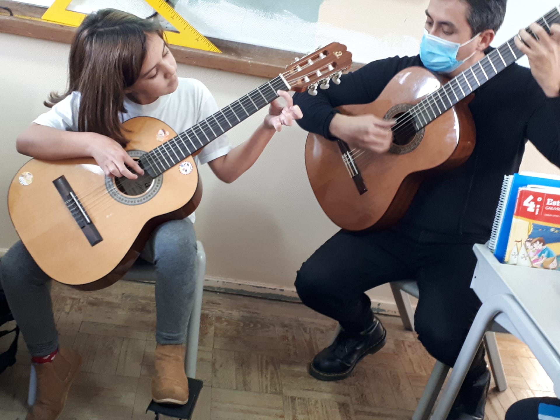 Com o acompanhamento do professor de guitarra Luís Roldão, uma aluna tocou uma música portuguesa “A Rosinha”.