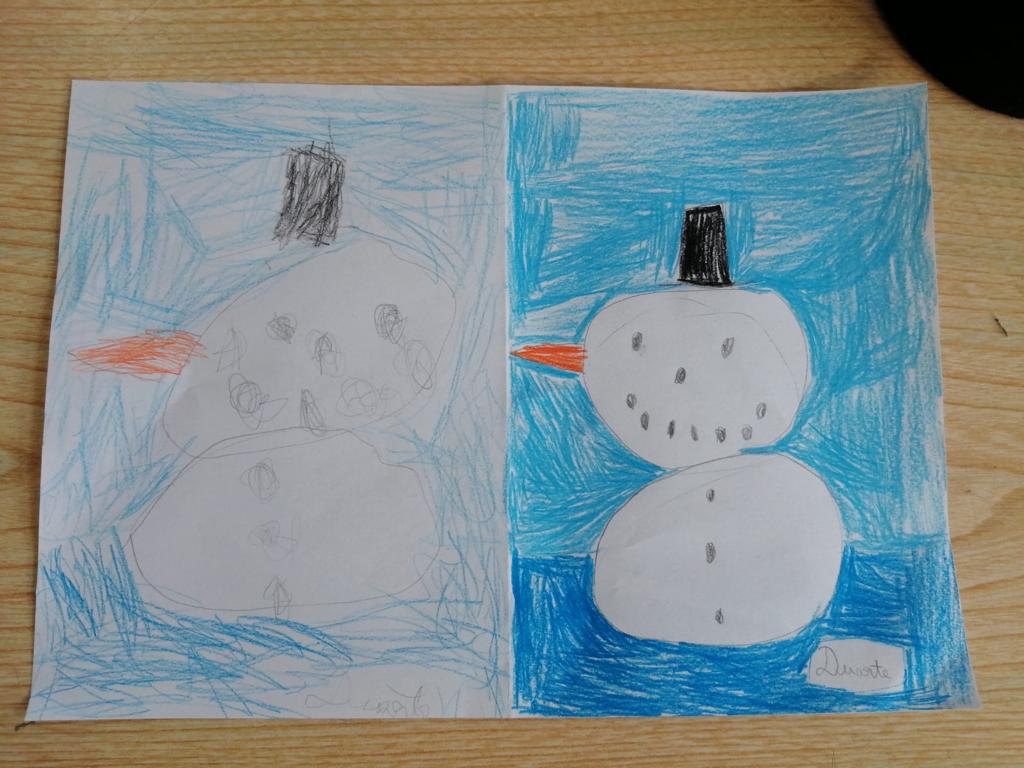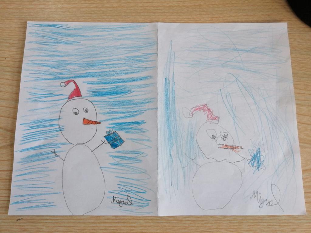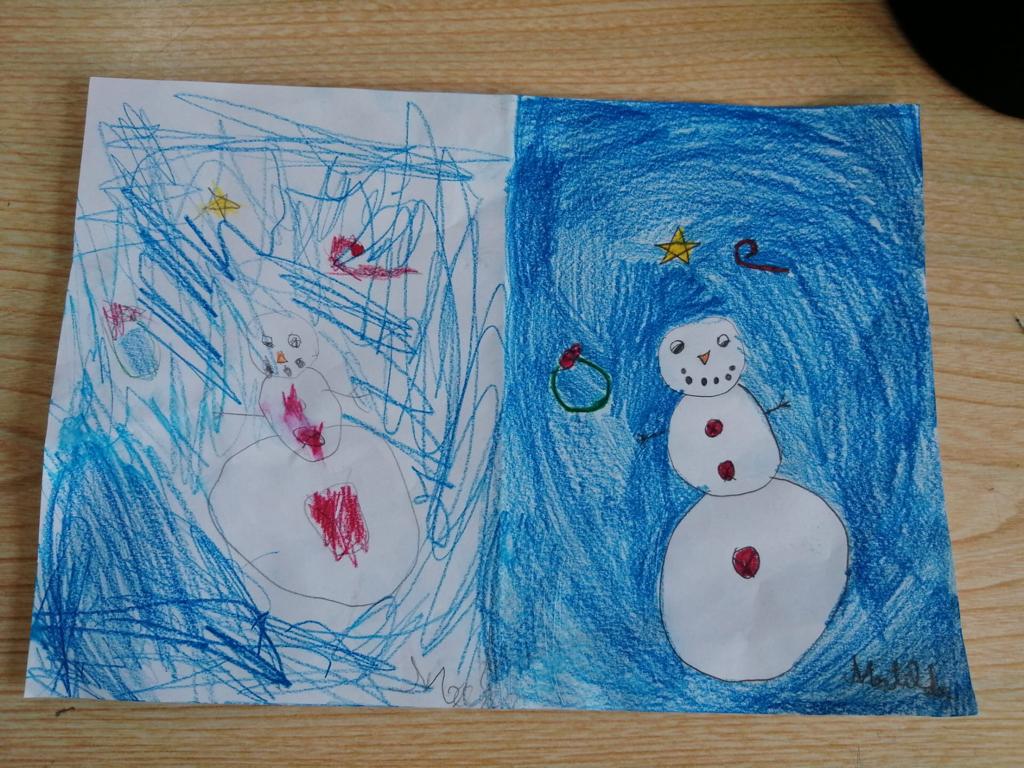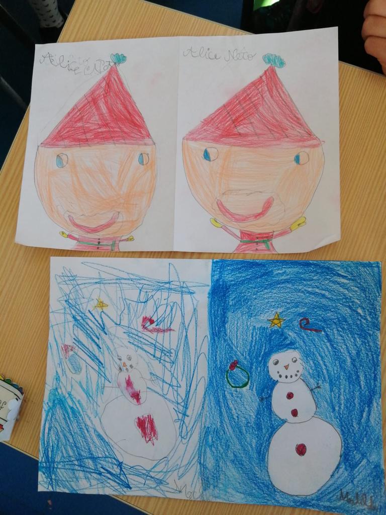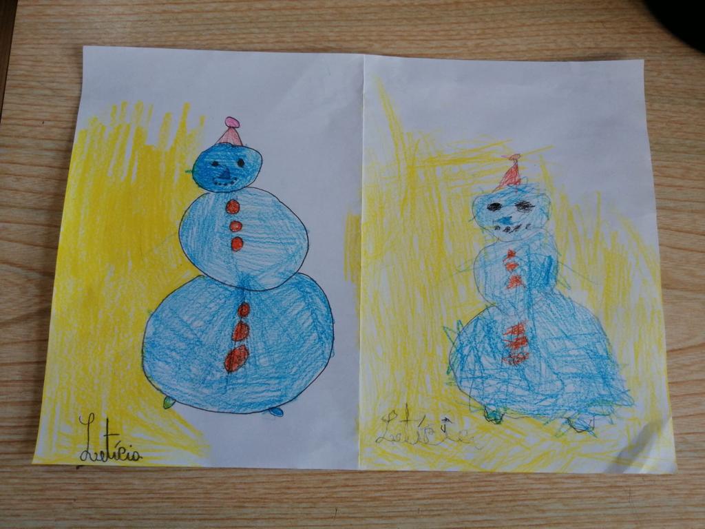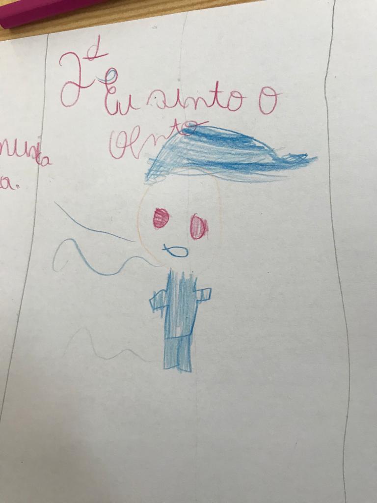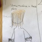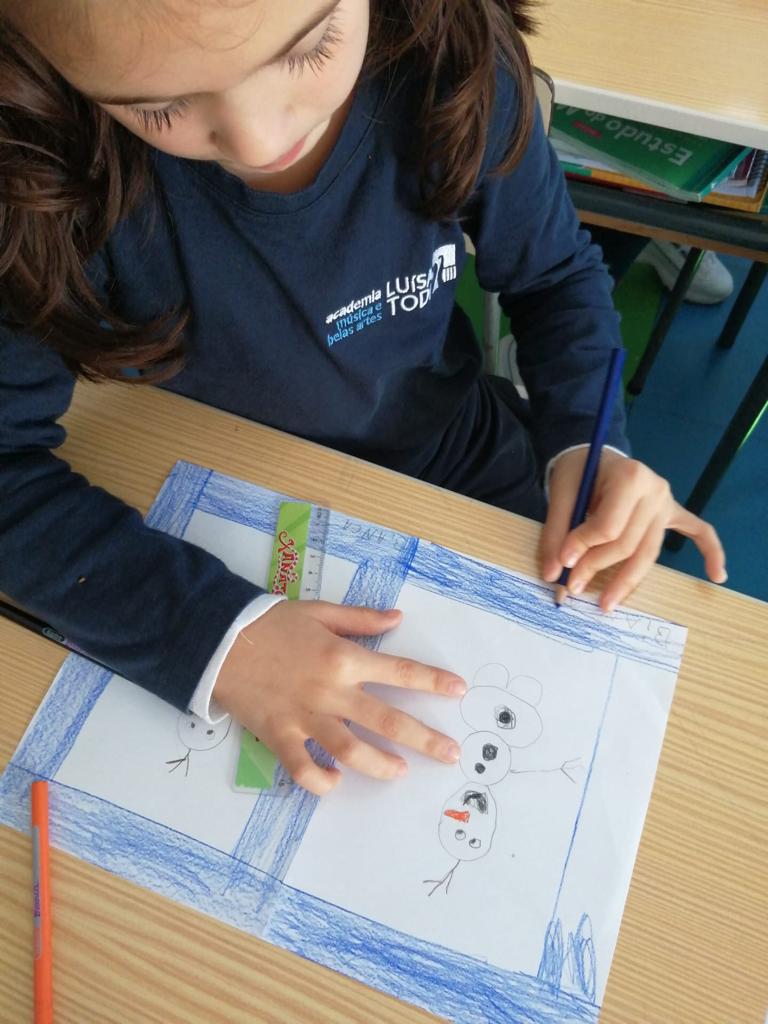 Na aula de Artes Visuais, desenharam com a mão direita e repetiram o desenho utilizando a mão esquerda.