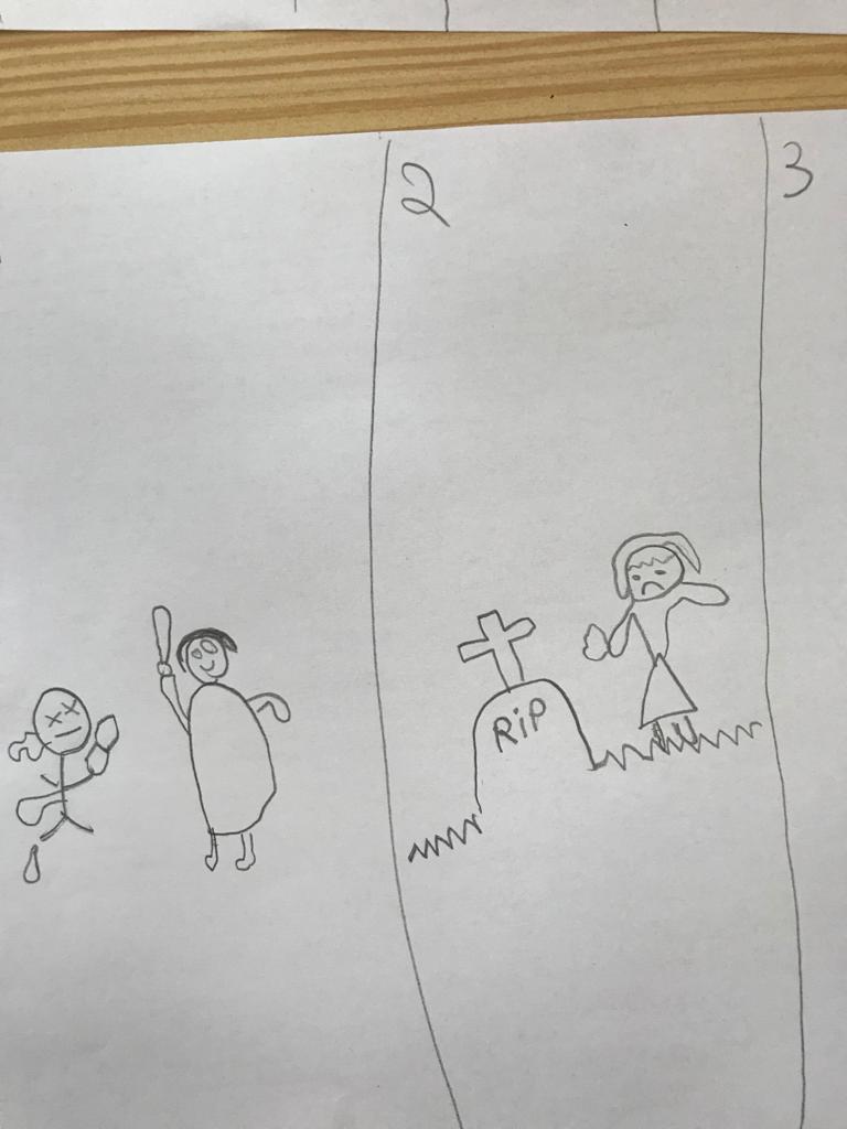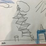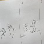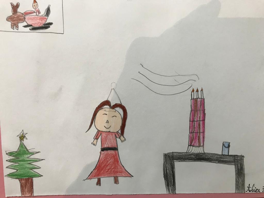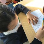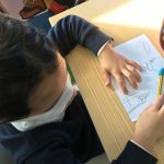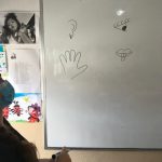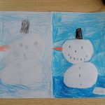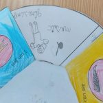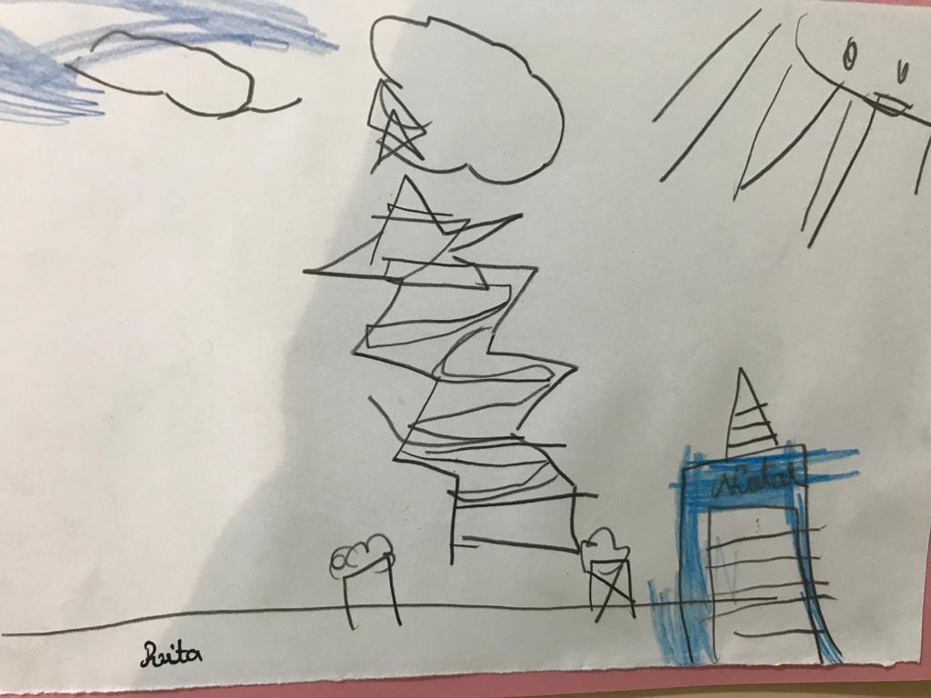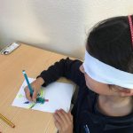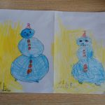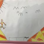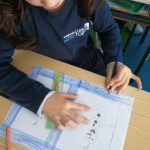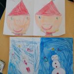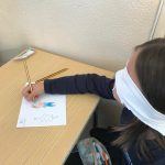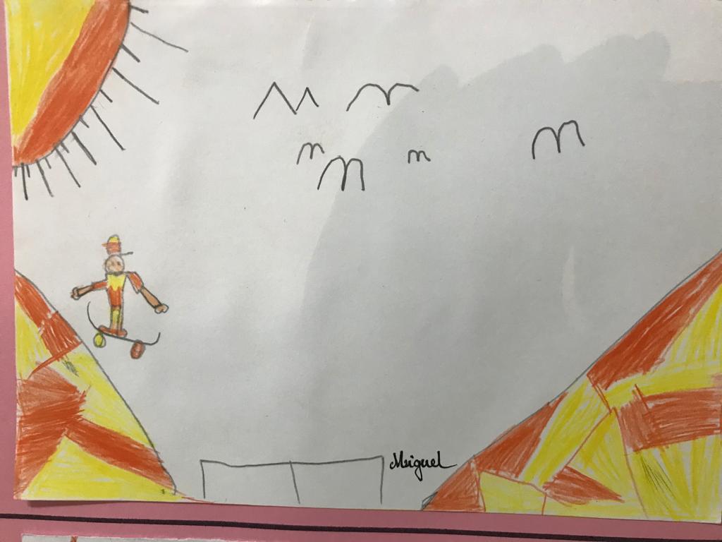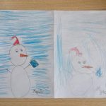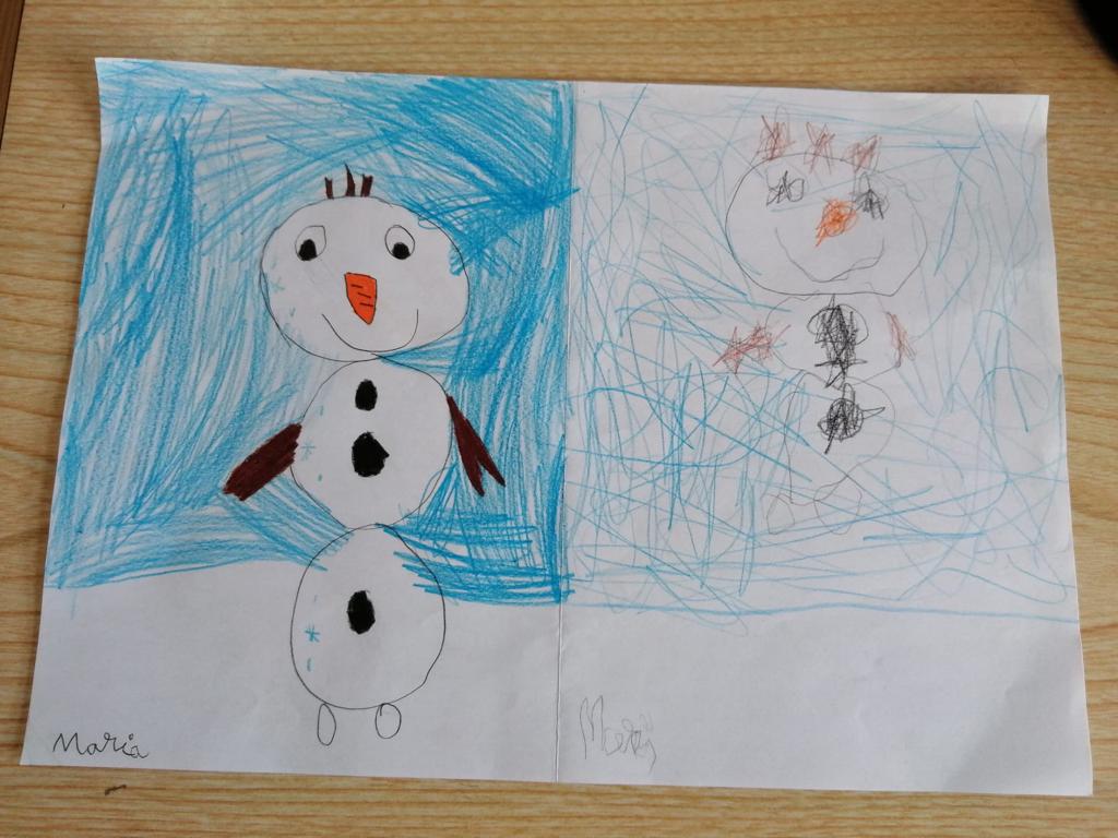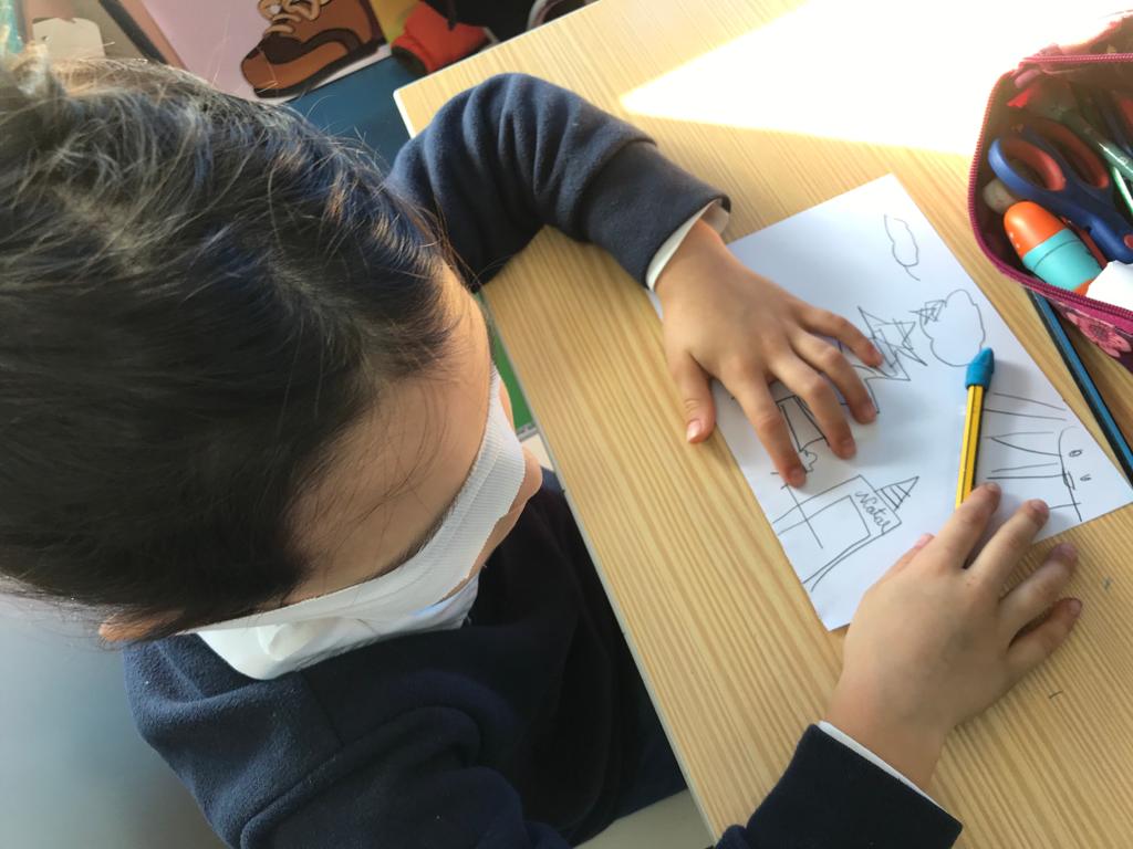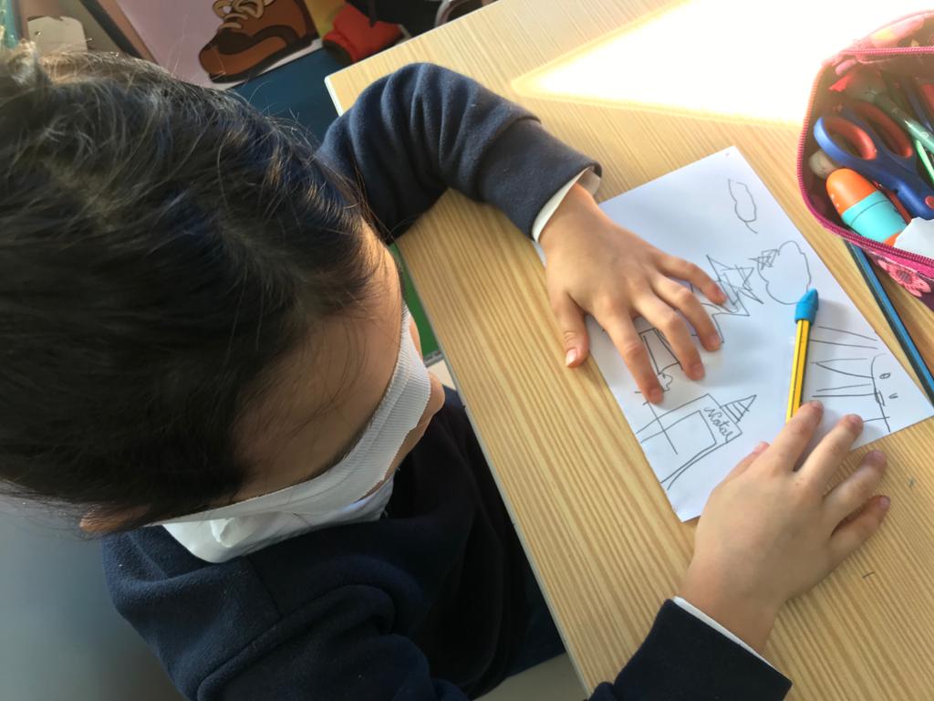 Na aula de Artes Visuais, desenharam com a mão direita e repetiram o desenho utilizando a mão esquerda.