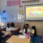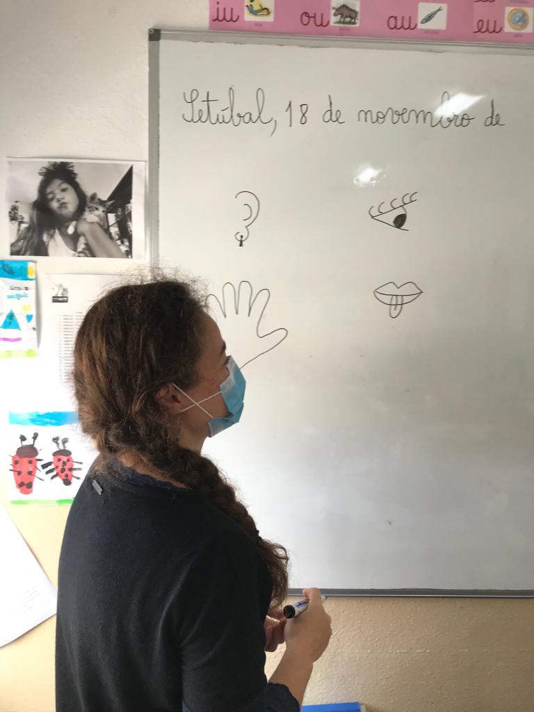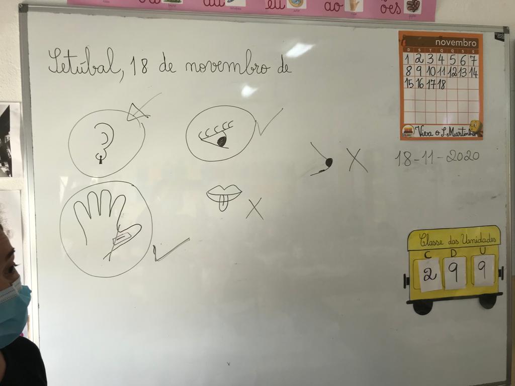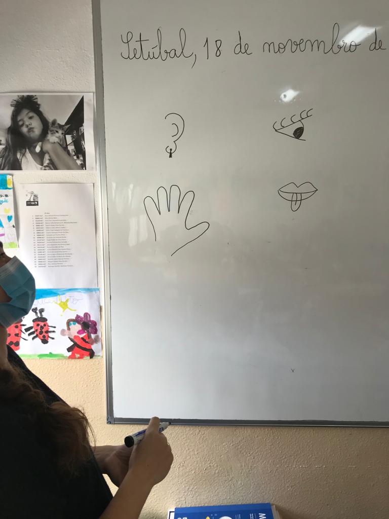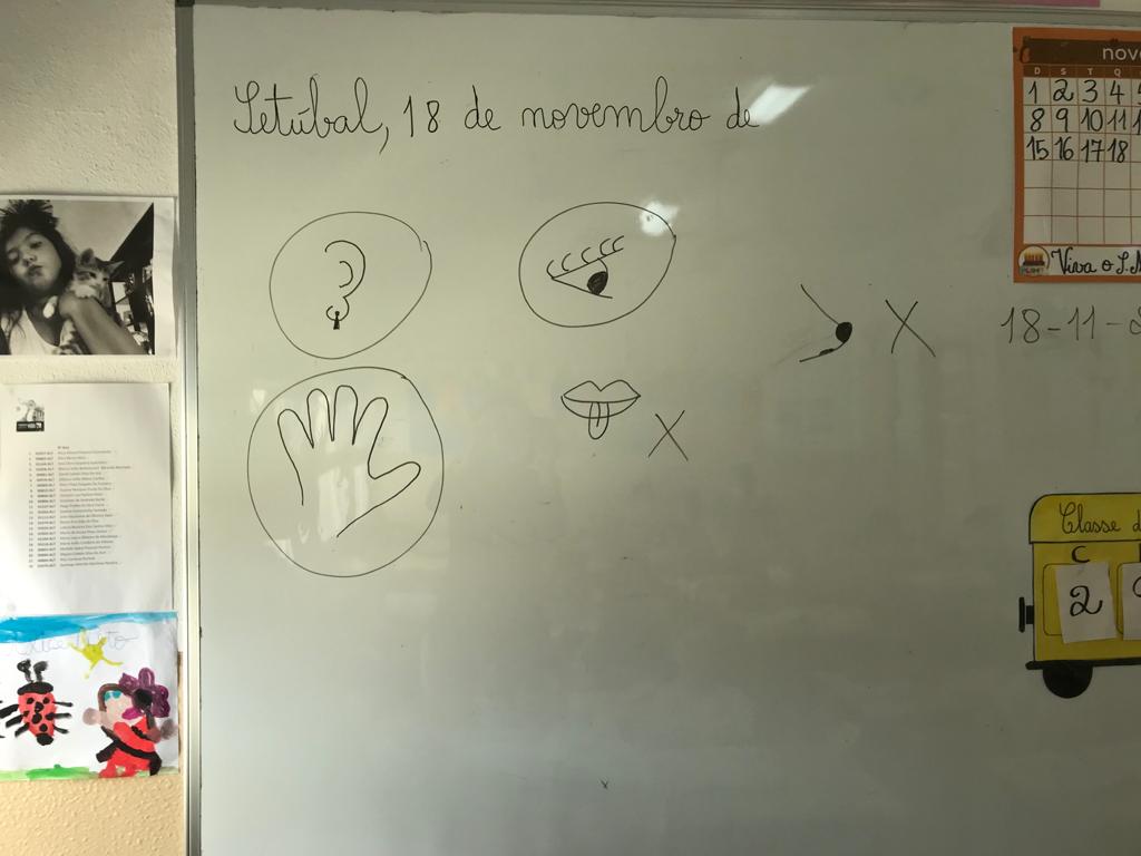 Os alunos aprenderam uma canção intitulada “ Os 5 sentidos”, composta pelo Professor Marco Santos e feita especialmente para a aprendizagem destes conteúdos.