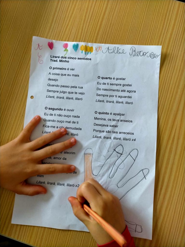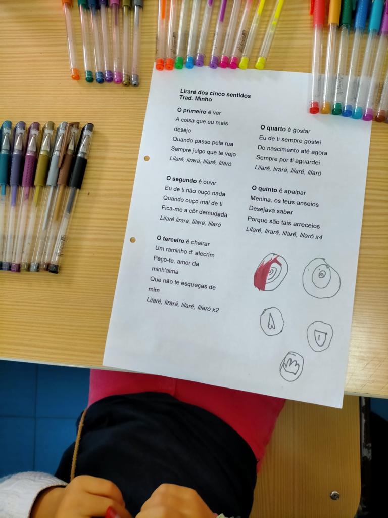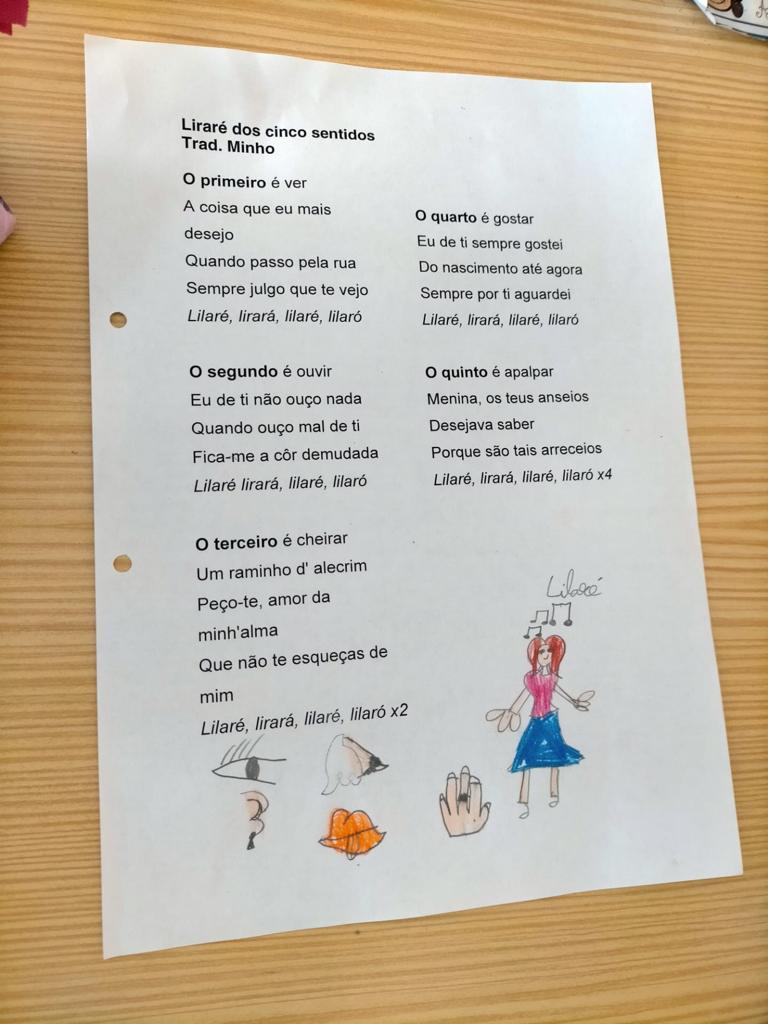 Para finalizar, a Professora de Música e Cultura trabalhou a Música: “Liraré dos cinco sentidos” – Trad. Minho.