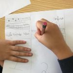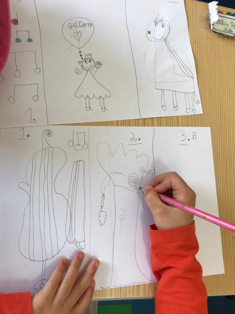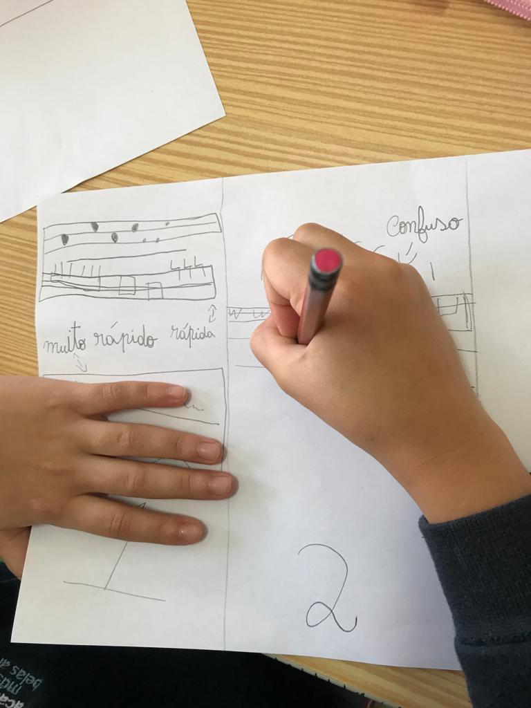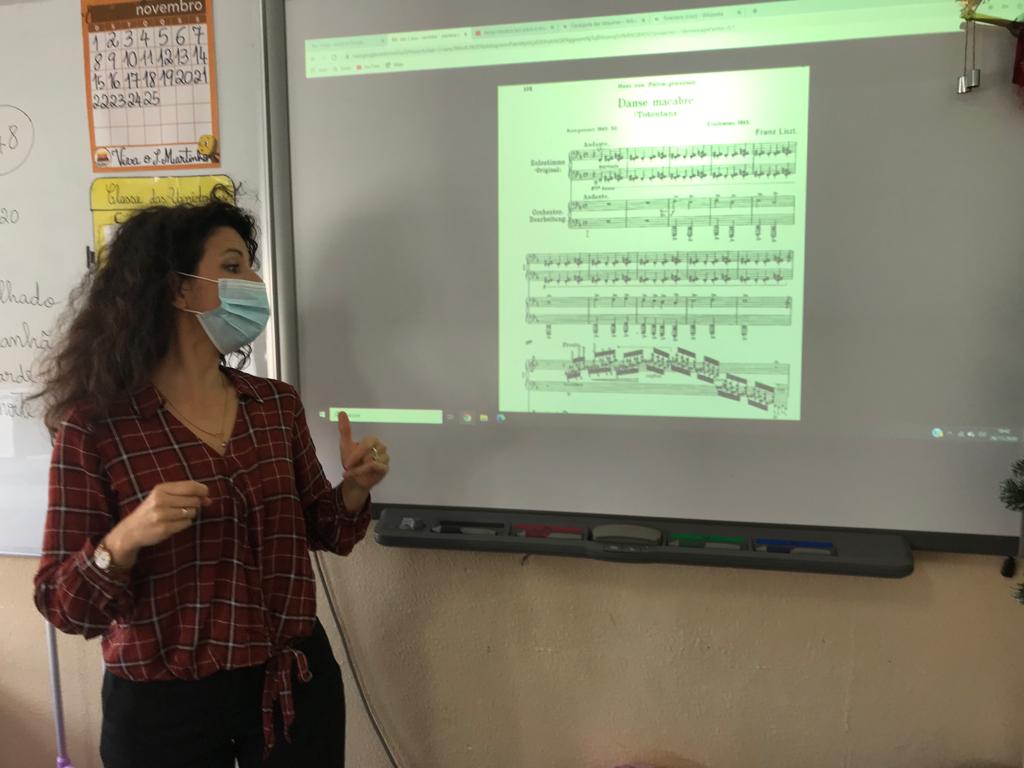 A Professora de Piano, Mariana, dinamizou a atividade “Partitura e desenho”.