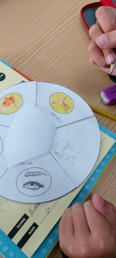 Na disciplina de Inglês, os alunos elaboraram um jogo e aprenderam uma canção sobre os sentidos.