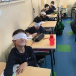 Na Educação Física, realizaram atividades físicas privando um dos sentidos, trabalhando assim a consciencialização do desporto adaptado.