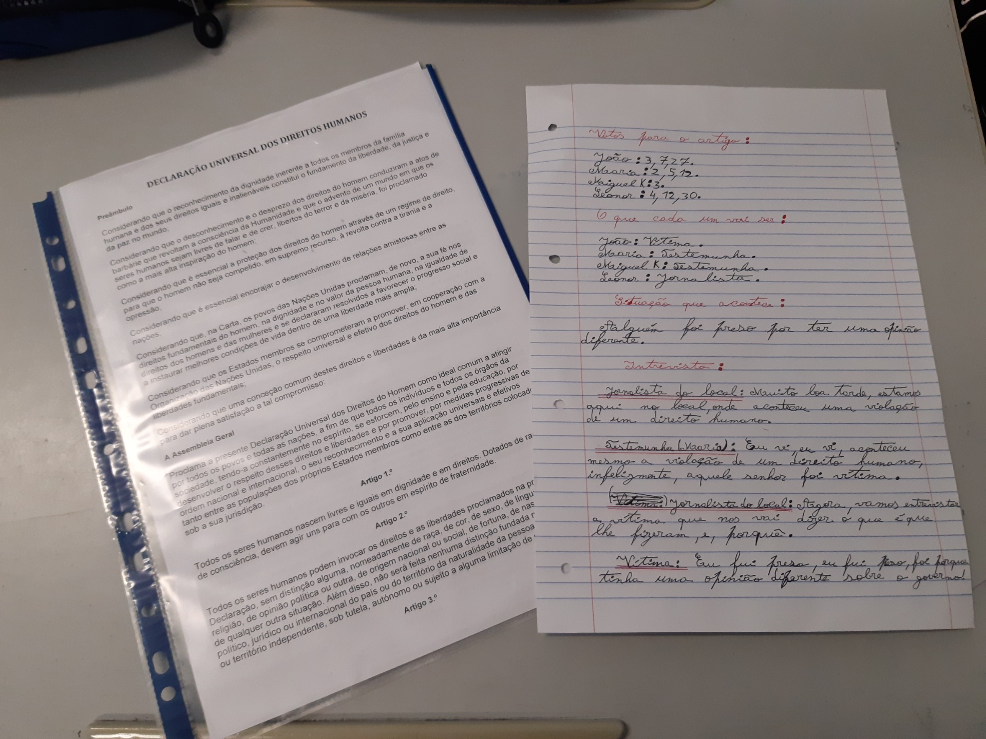 Cidadania e Desenvolvimento- Análise da Declaração Universal dos Direitos do Homem. Visionamento de vídeos alusivos a cada um dos artigos da declaração. Escolha de um artigo e criação de um vídeo informativo com a representação da violação do respetivo artigo.