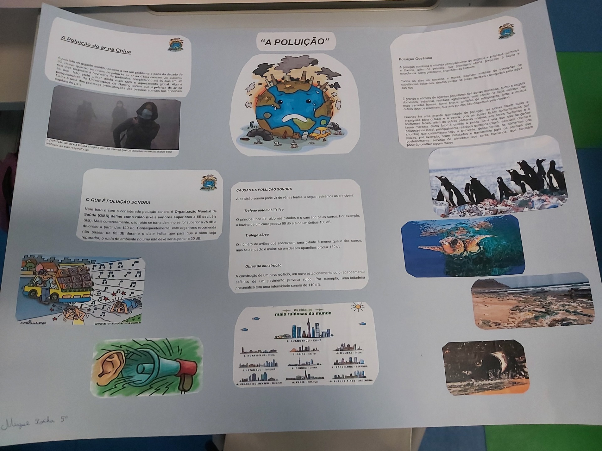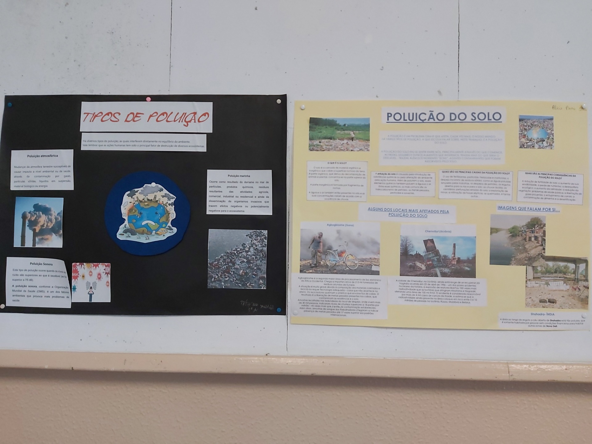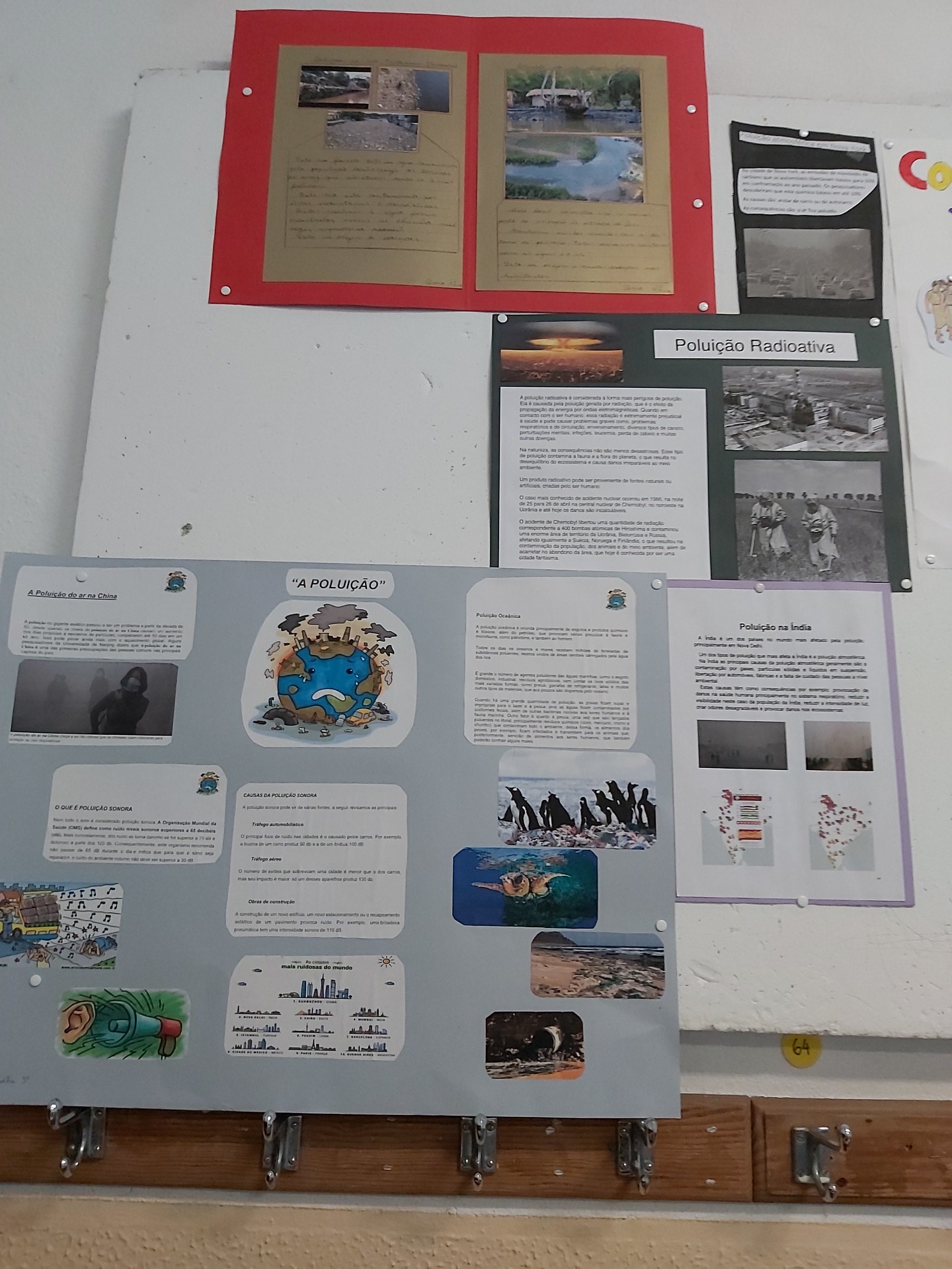 Ciências- Realização de pesquisas sobre vários tipos de poluição e sobre as zonas do mundo mais poluídas, quais as causas e consequências dessa poluição para o ambiente e para a saúde. Realização de cartazes com a informação recolhida.