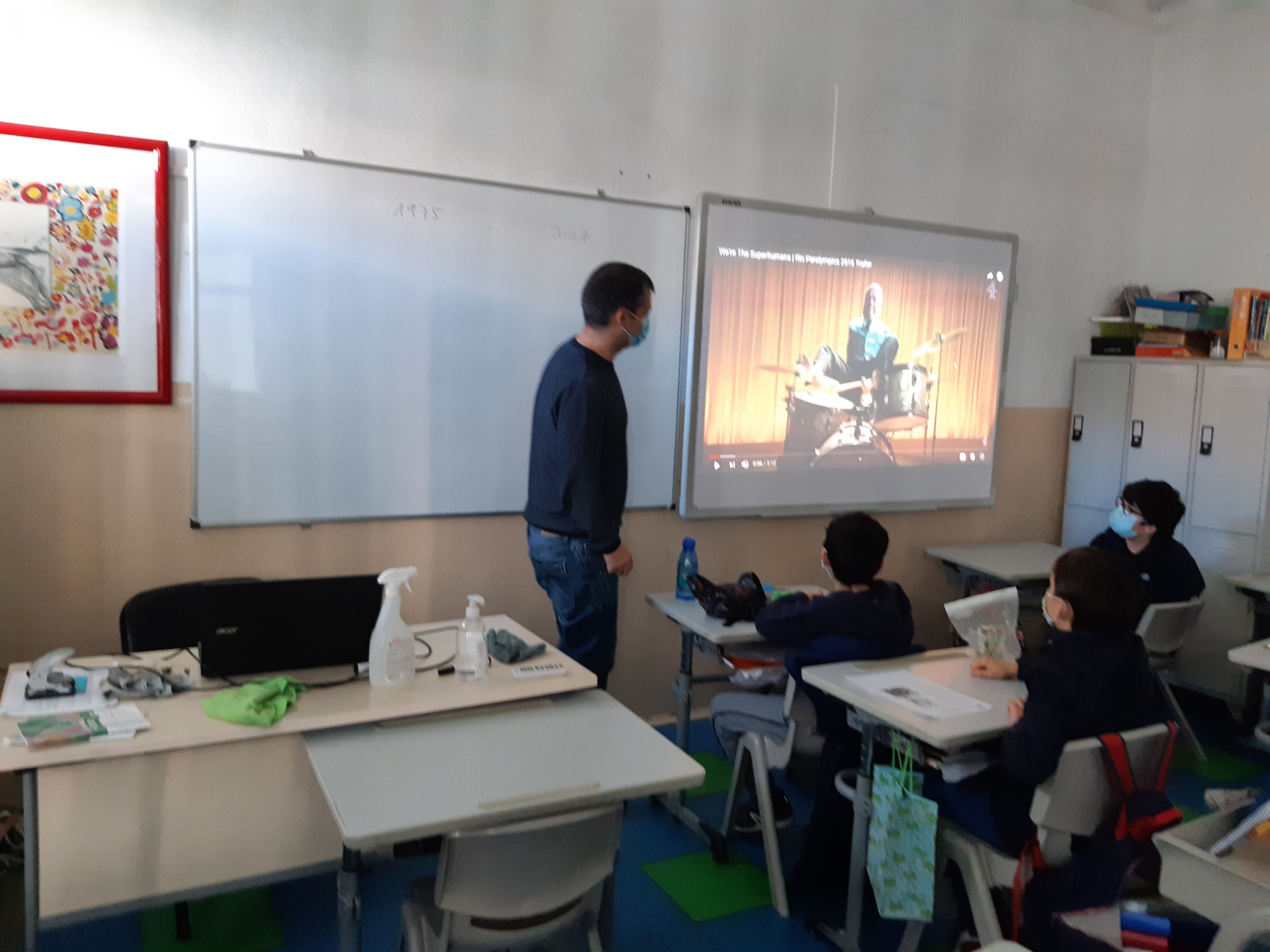 Oficina Criativa – Realização de silhuetas dos instrumentos musicais com mensagens ou palavras alusivas ao Natal. Em conjunto com a disciplina de Cidadania e Desenvolvimento, foram realizados alguns ensaios para os vídeos produzidos em conjunto nas duas disciplinas.