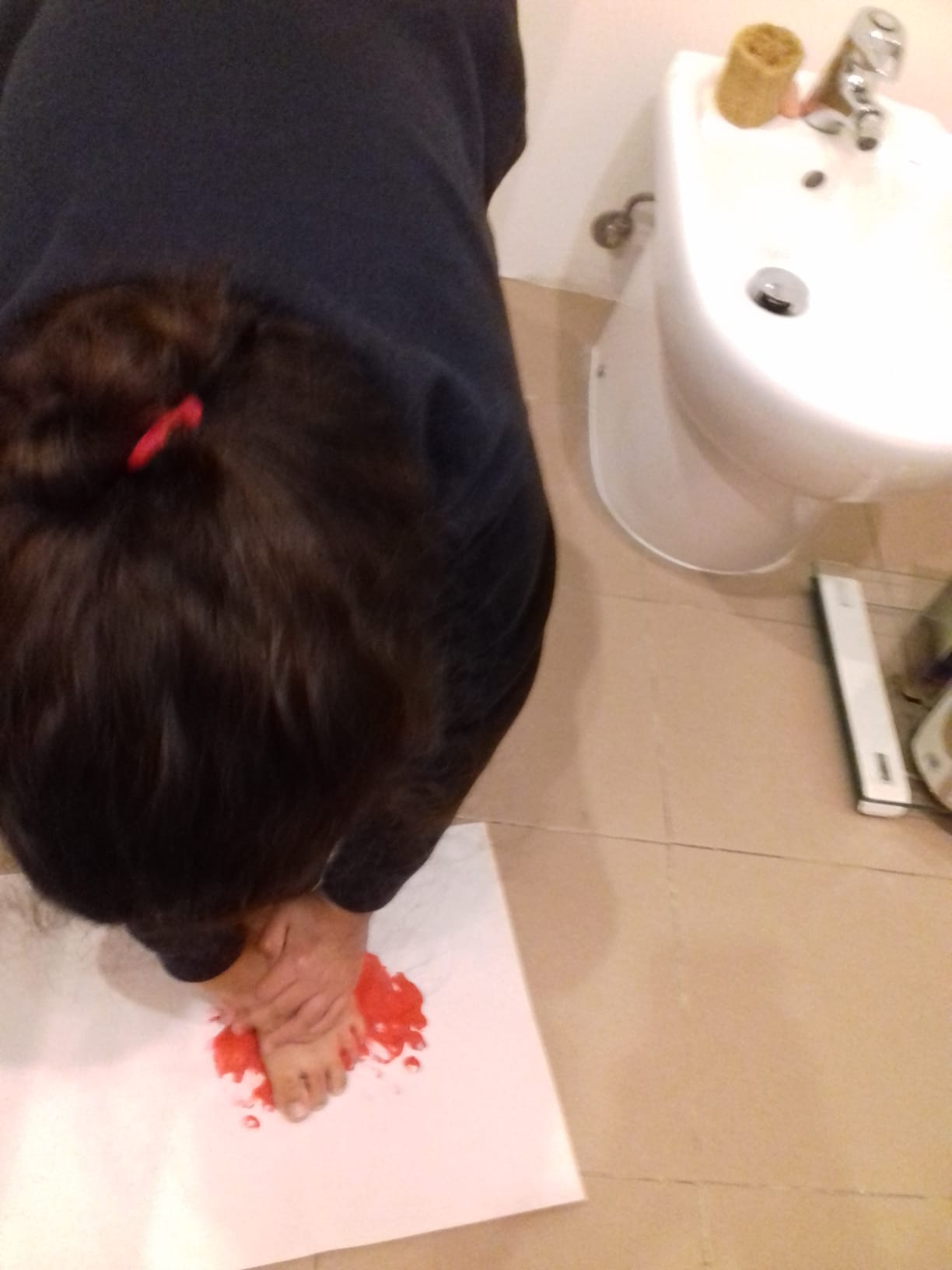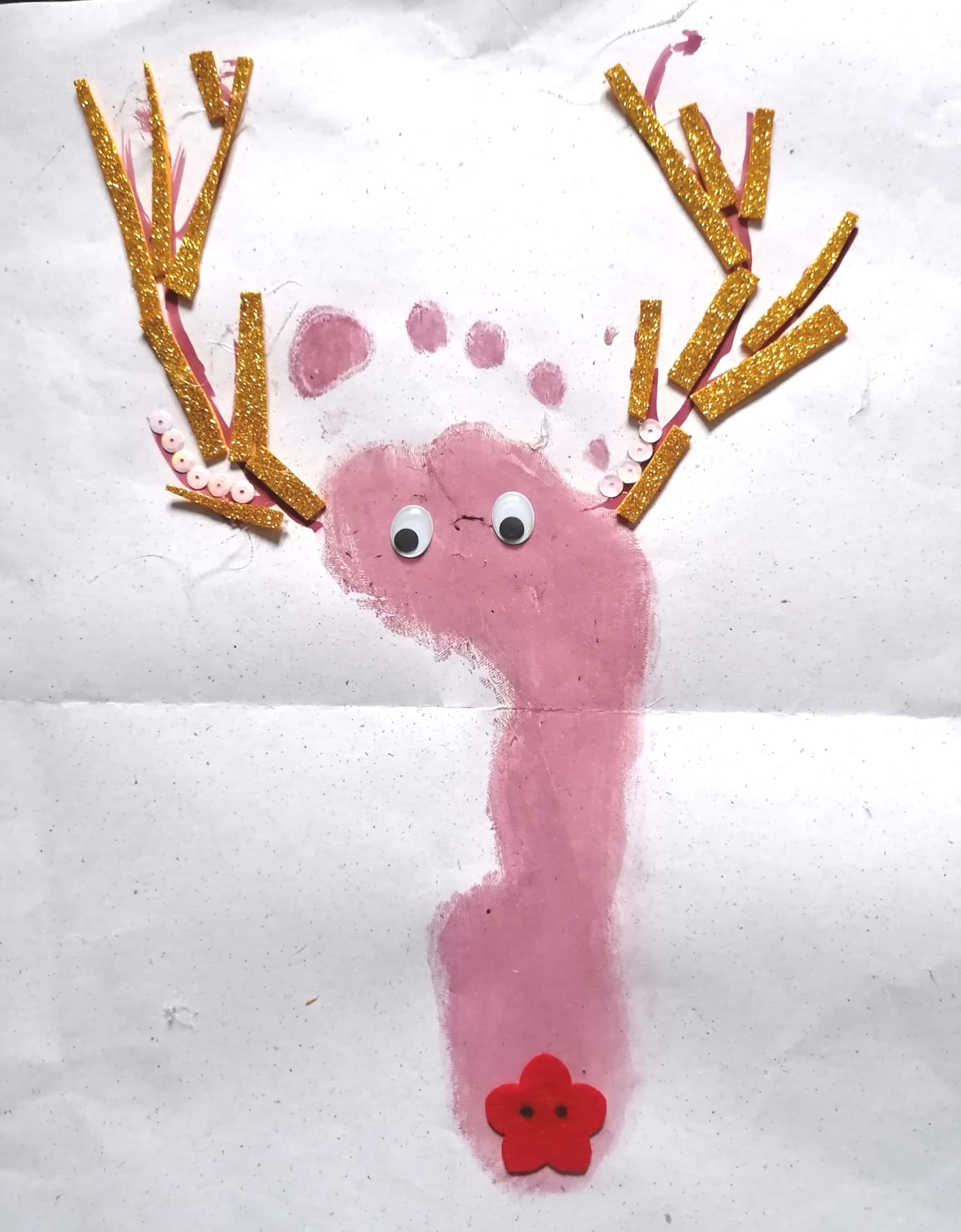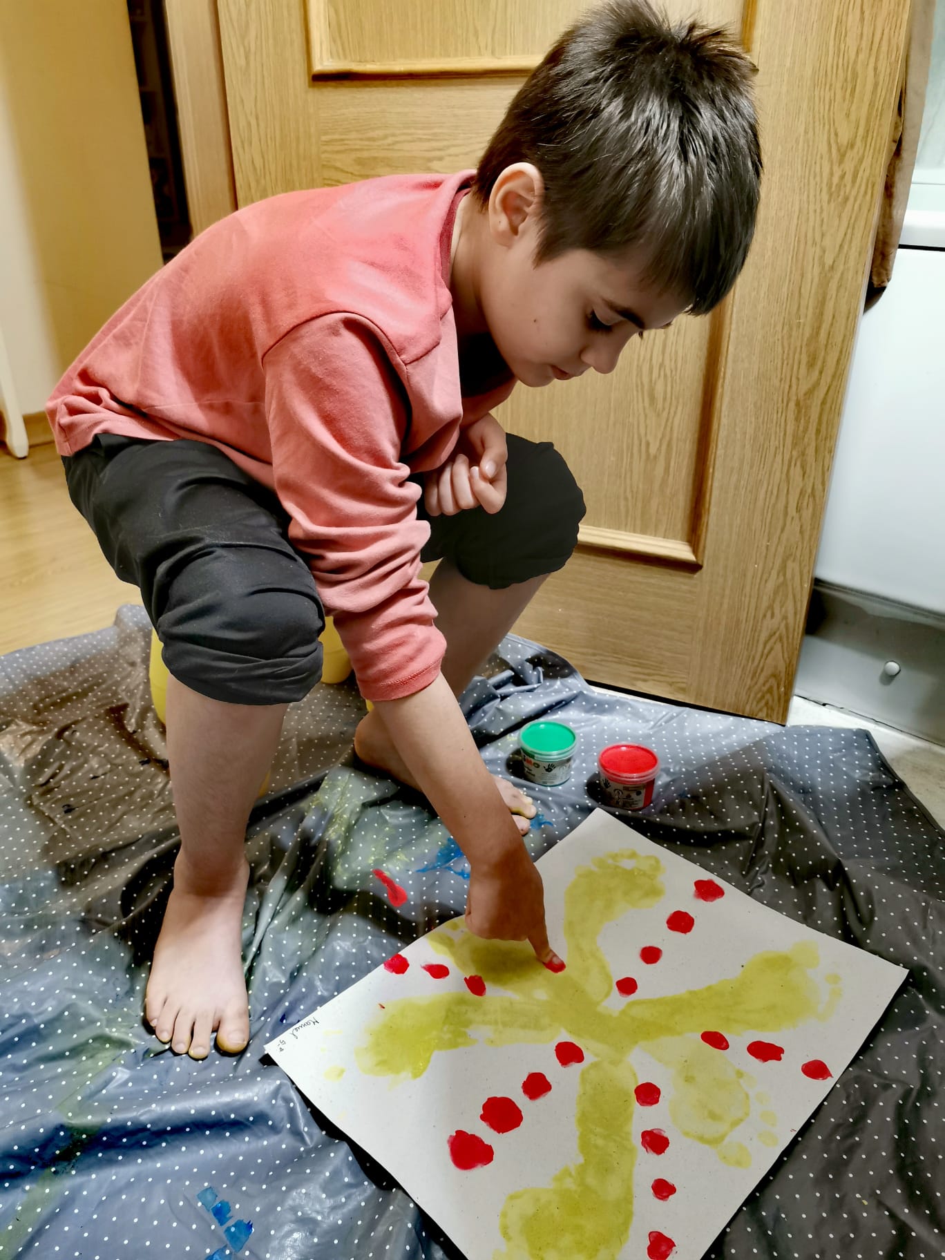 Educação Visual – Realização de pinturas com a boca, os pés e as mãos de forma a representar uma composição natalícia. Elaboração de uma embalagem para a Prenda de Natal, que foi decorada com a técnica de pintura/estampagem/impressão das mãos, juntando uma mensagem alusiva ao tema Paz e Natal.
