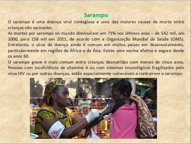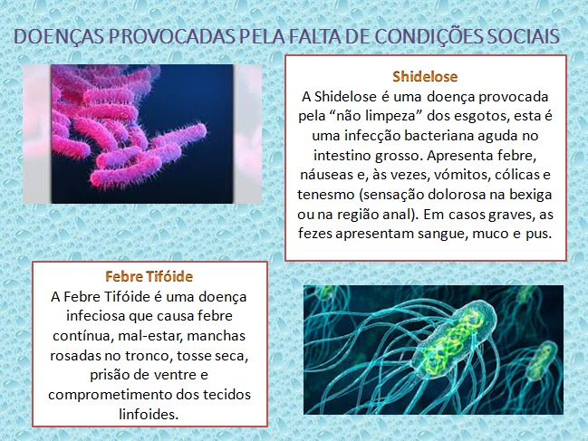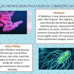 Ciências – Realização de pesquisas sobre diferentes doenças provocadas por falta de condições sociais. Análise e relação dessas doenças com zonas no mundo onde há menos condições sociais com a discussão em grupo turma sobre possíveis hipóteses para solucionar estes problemas sociais. Elaboração de cartazes sobre os temas pesquisados e discutidos.