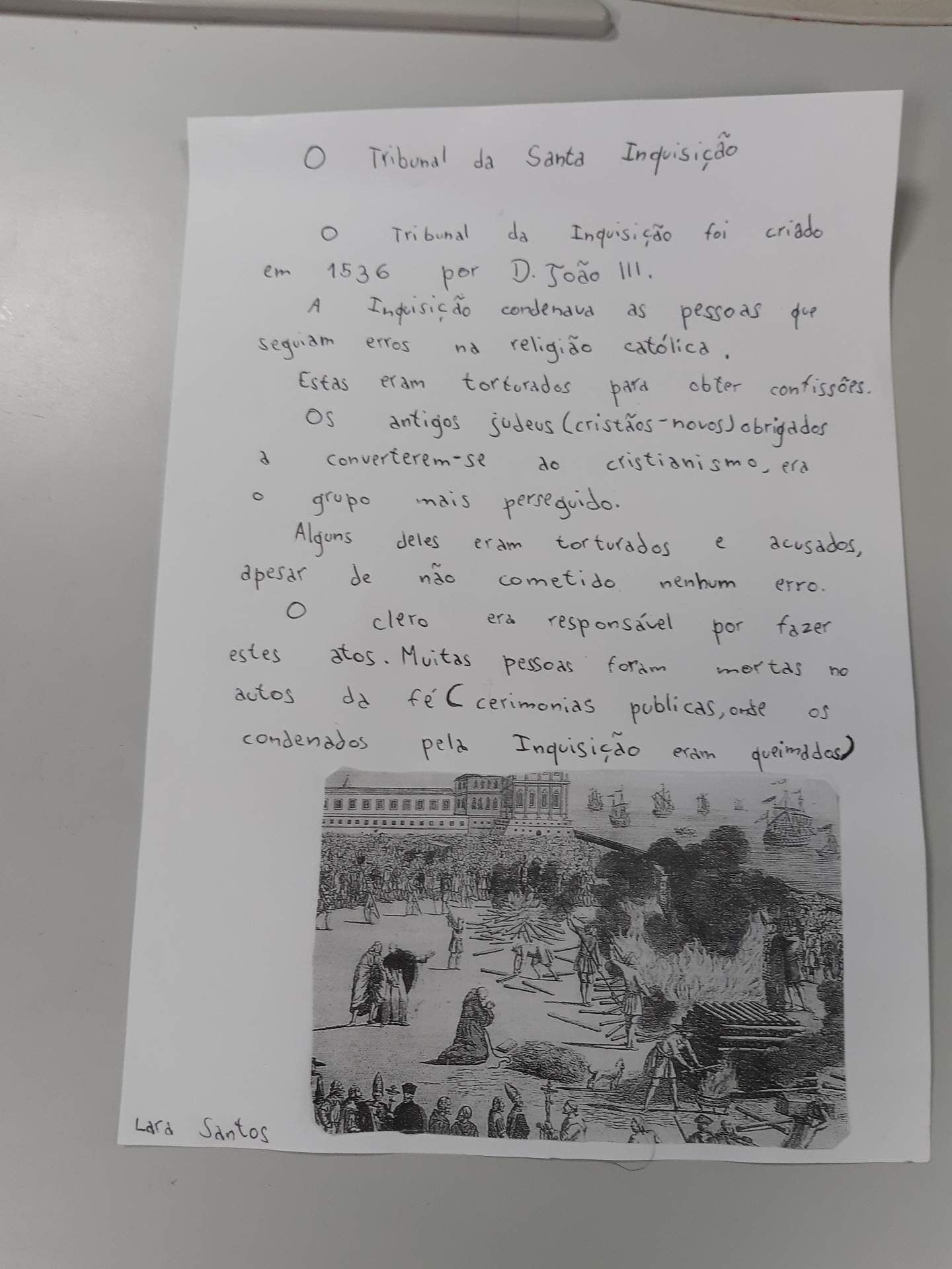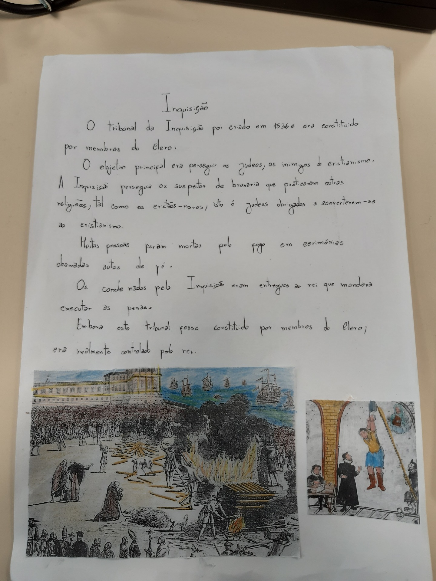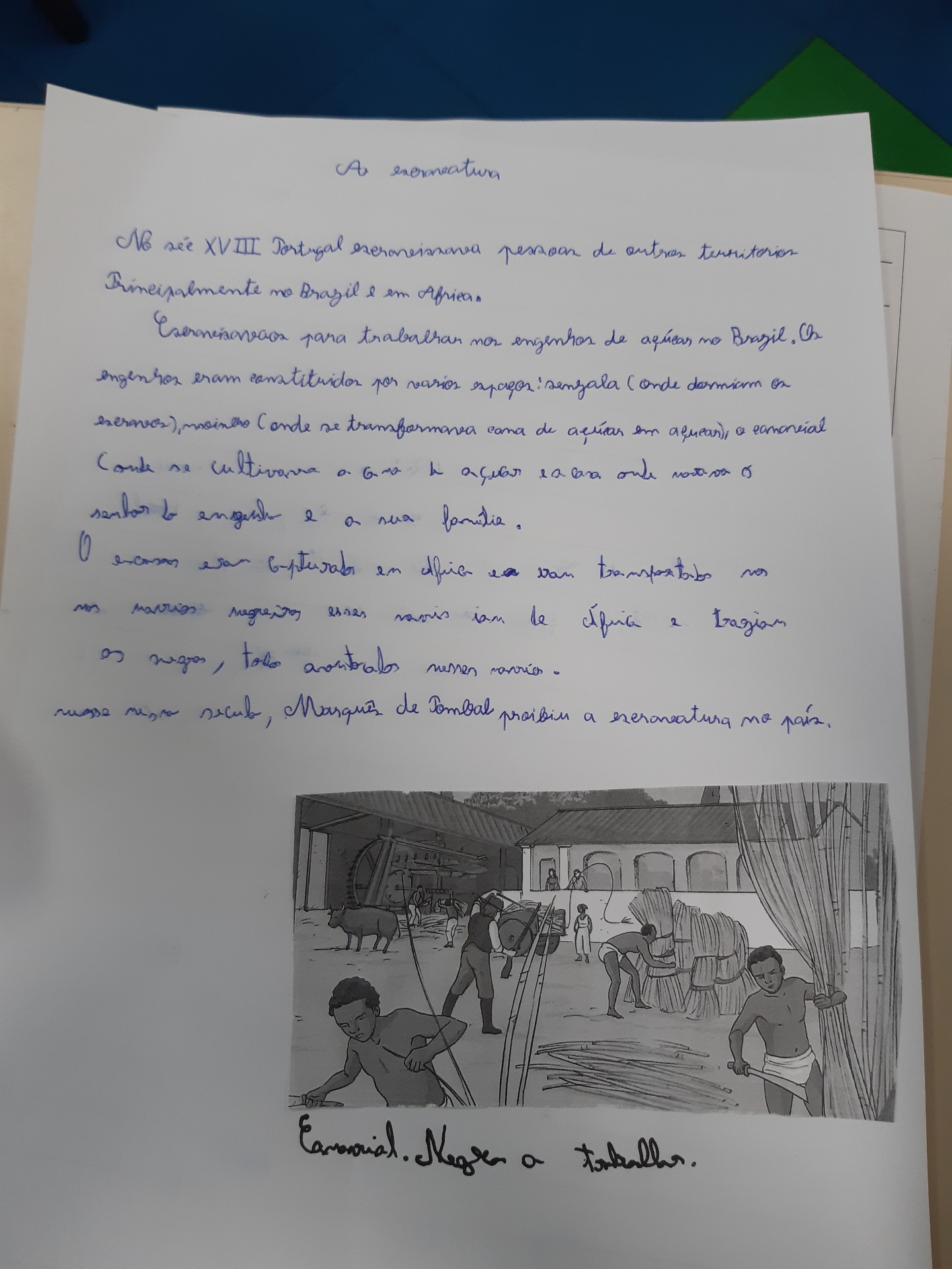 HGP– Em sala de aula foi lecionada a tipologia textual: texto de opinião. Os alunos produziram textos de opinião sobre o racismo onde utilizaram conetores discursivos adequados. Depois de avaliados, os textos foram expostos conjuntamente com os trabalhos de História e Geografia de Portugal.