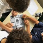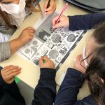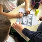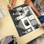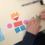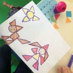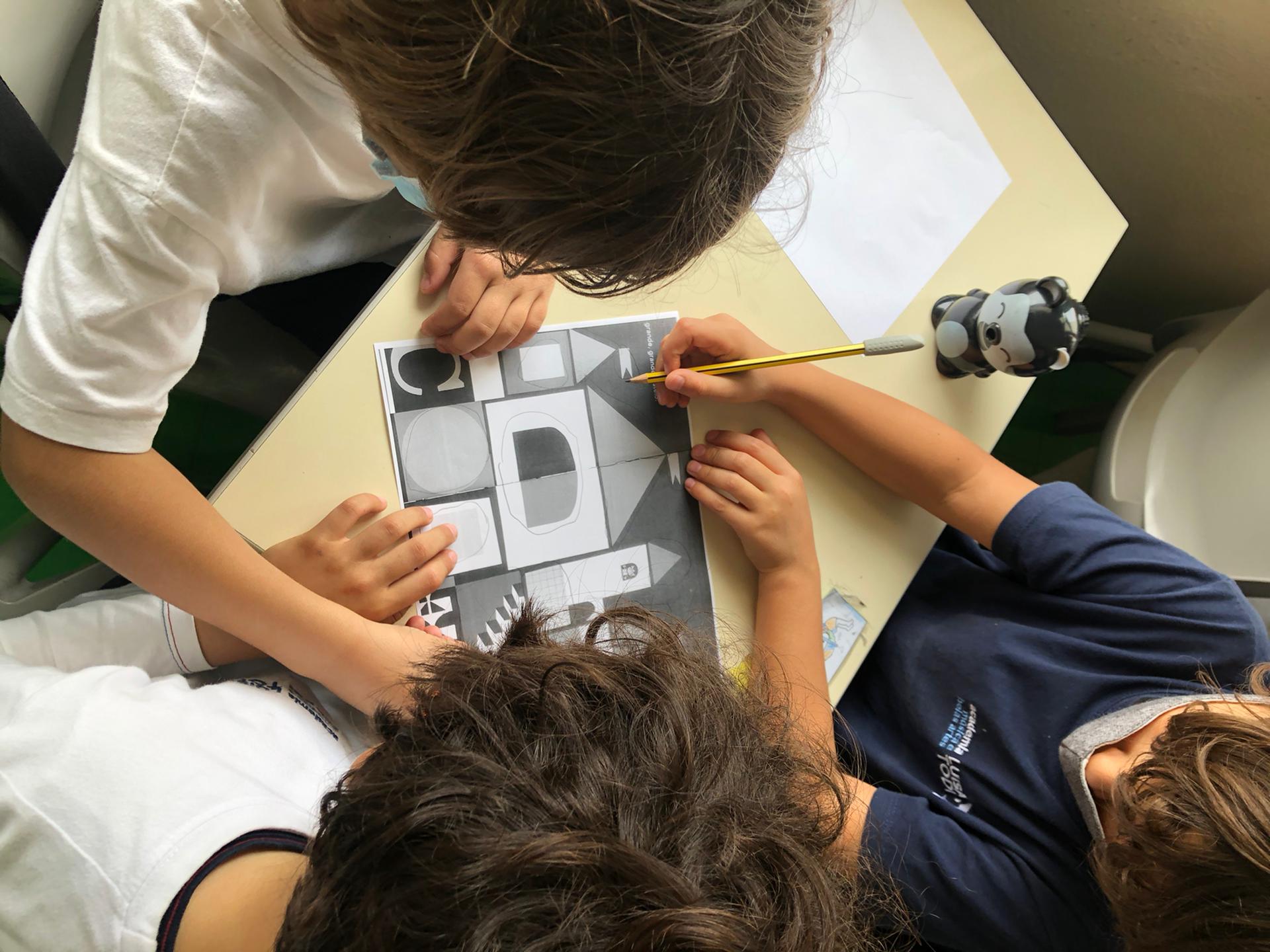 Na sequência das descobertas que realizámos partindo da análise das ilustrações de “O rei pequenino”, descobrimos a pintura “Áspide” de Nadir Afonso. Analisámos e interpretámos a pintura, descobrindo ainda diferentes figuras geométricas. Posteriormente procurámos construir objetos e personagens com figuras geométricas e reproduzimos as nossas ideias através do desenho.