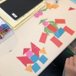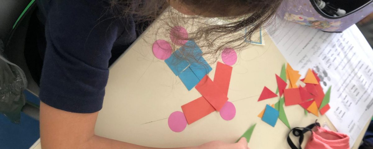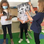 Descobrimos as figuras geométricas partindo das ilustrações do livro trabalhado! Discutimos e analisámos as ilustrações em pequenos grupos, assinalámos as figuras geométricas que descobrimos e, posteriormente, partilhámos as nossas descobertas com os restantes colegas da turma. Descobrimos o que são vértices e lados de uma figura e discutimos as diferenças e semelhanças entre um retângulo e um quadrado.