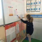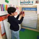 Incluímos uma nova rotina na nossa sala – “A palavra do dia”. Diariamente escrevemos uma palavra escolhida por nós e realizamos 4 tarefas: contagem de letras, divisão silábica, construção de uma frase que inclua a palavra do dia e partilha da palavra com os colegas.