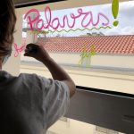 Descobrimos várias palavras com a letra “f” e fomos escrevê-las na janela da nossa sala.