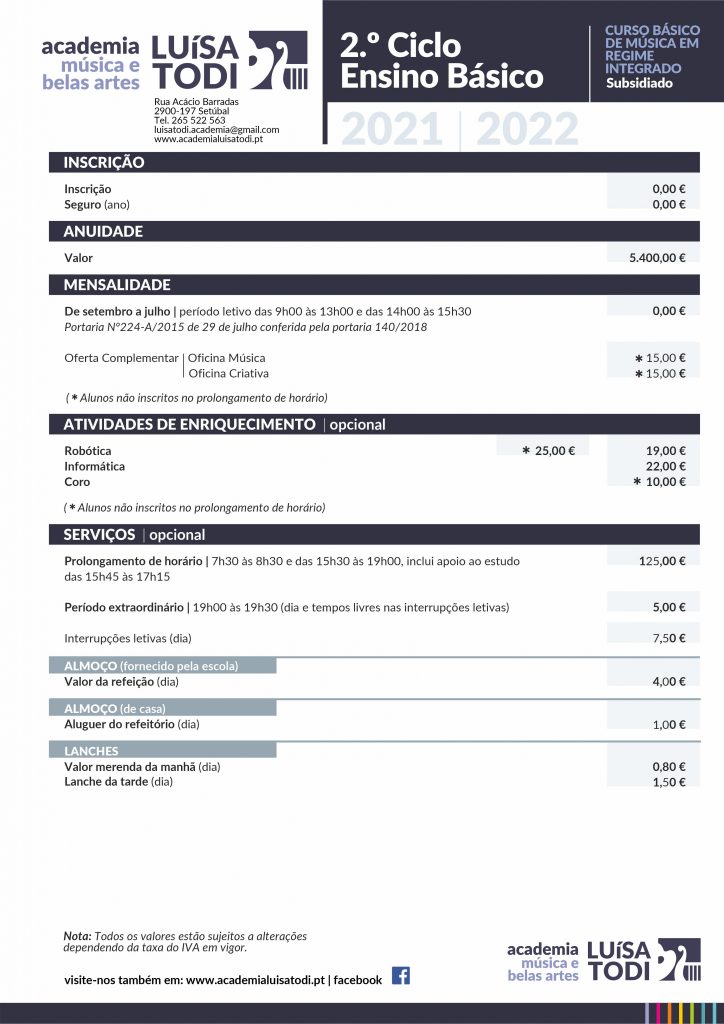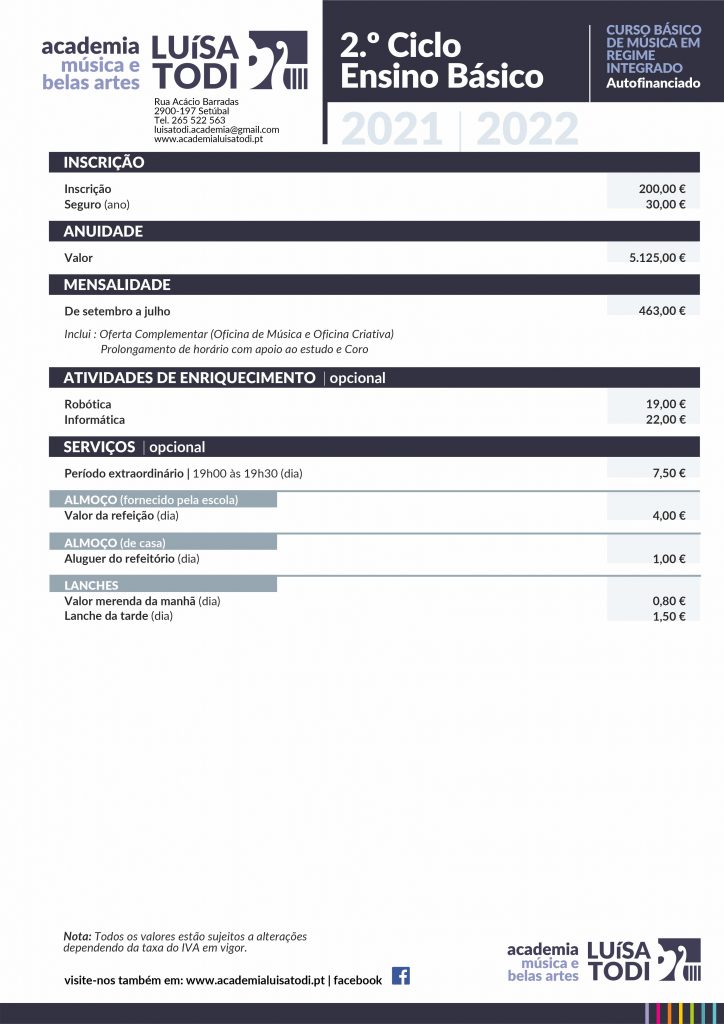 2º Ciclo Curso Básico de Música – Regime Integrado – Autofinanciado