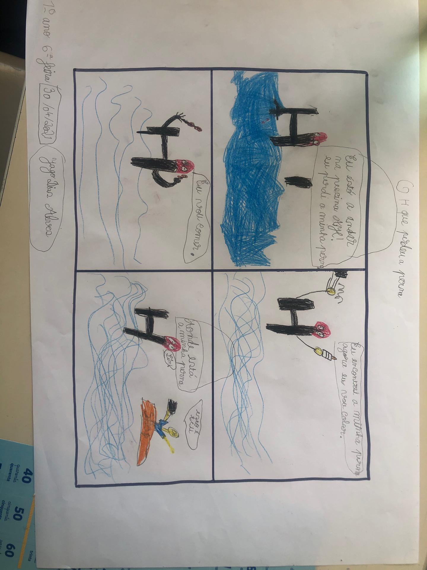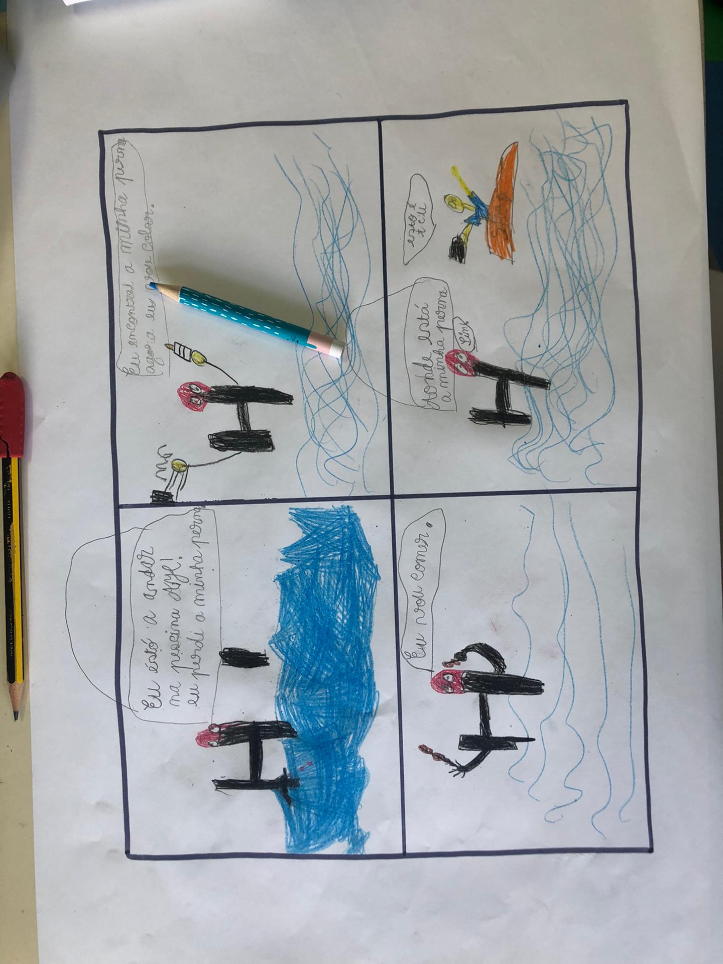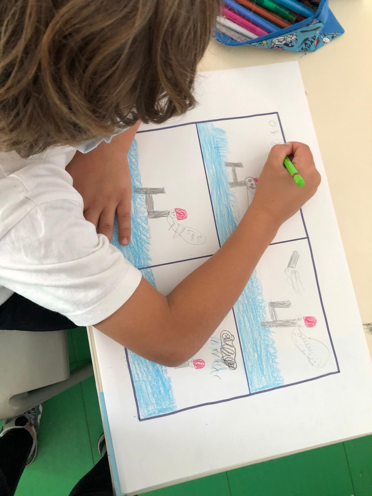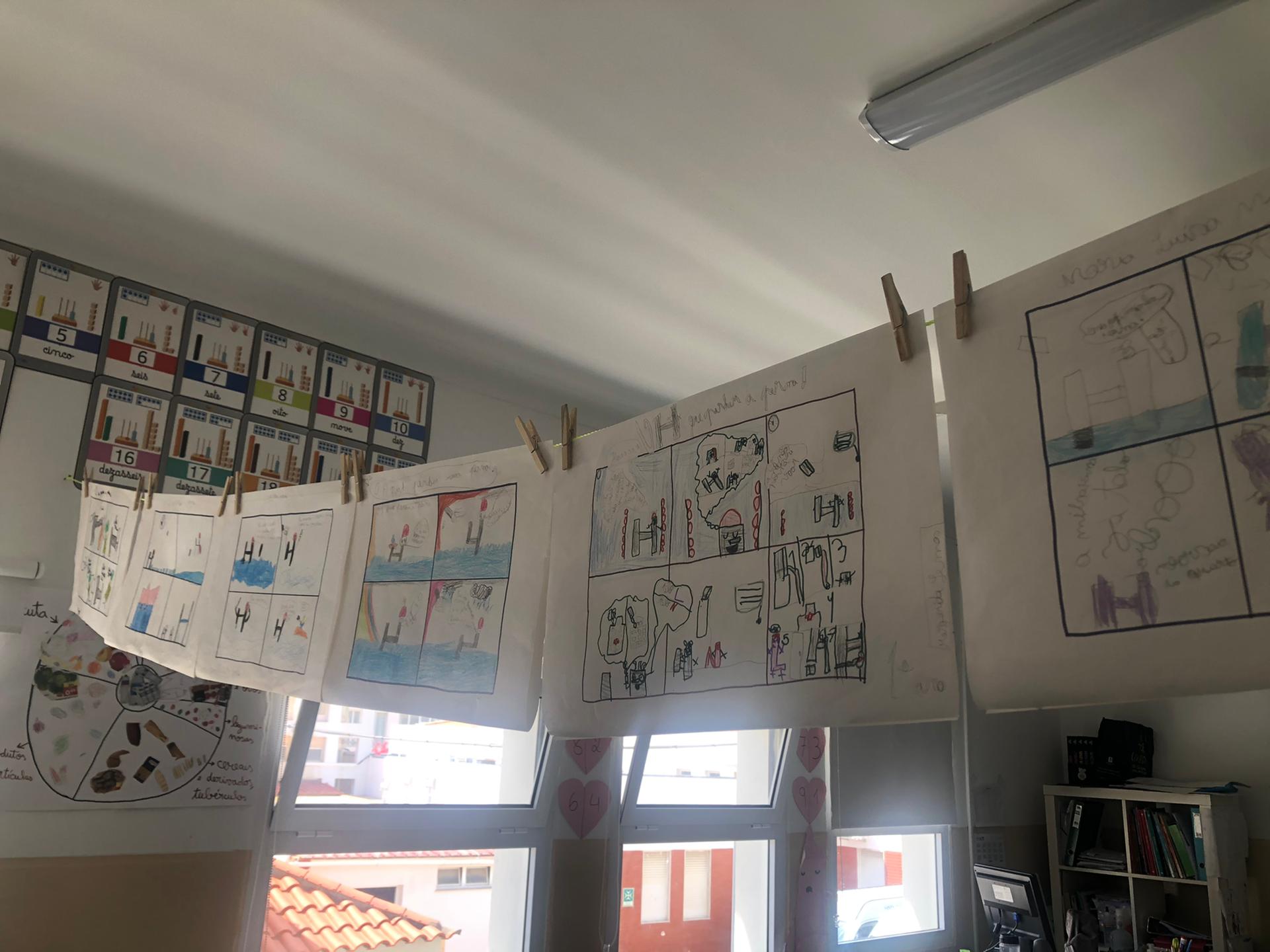 Português Introduzimos a letra “H” com um excerto da história “O H que perdeu uma perna”. Depois de escutarmos a leitura do excerto, tivemos que pedir ajuda à nossa imaginação para solucionar o problema do H. Expusemos a nossa solução, oralmente, à turma. Descobrimos palavras com “h” através de adivinhas! Descobrimos que na língua portuguesa, quando a letra “h” é a primeira letra da palavra, esta letra não tem qualquer som. Contudo, esta letra pode juntar-se às consoantes “c”, “l” e “n” formando três sons diferentes. Reparámos que a inexistência da letra “h” em algumas palavras altera o seu significado. Por fim, analisámos as características de uma Banda Desenhada (BD) e propusemo-nos a construir a nossa própria BD. |