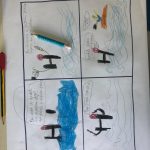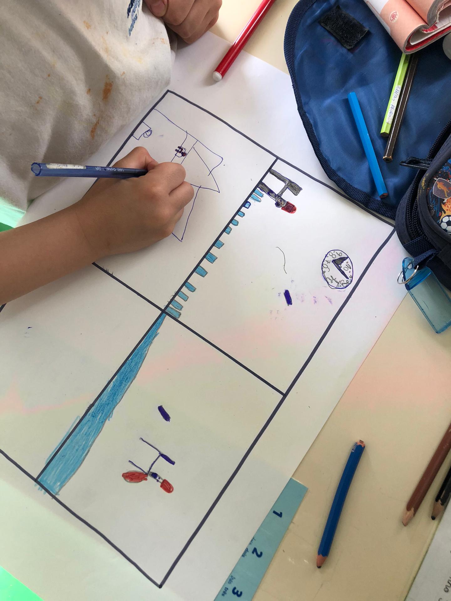 Estudo do Meio Foi às 10 horas que a personagem da história, o H, perdeu a sua perna. Neste sentido, introduzimos as “horas” na disciplina de estudo do meio e analisámos que um dia é composto por três partes (manhã, tarde e noite). Realizámos uma discussão em turma sobre as nossas rotinas (que ações realizamos em cada parte do dia e a que horas as costumamos realizar?). |