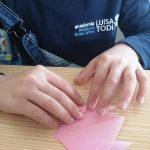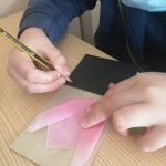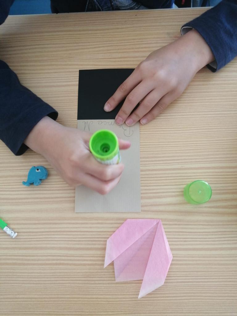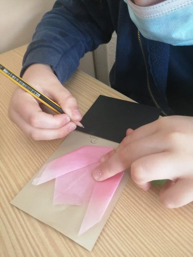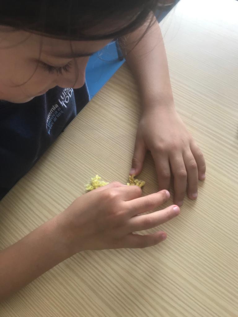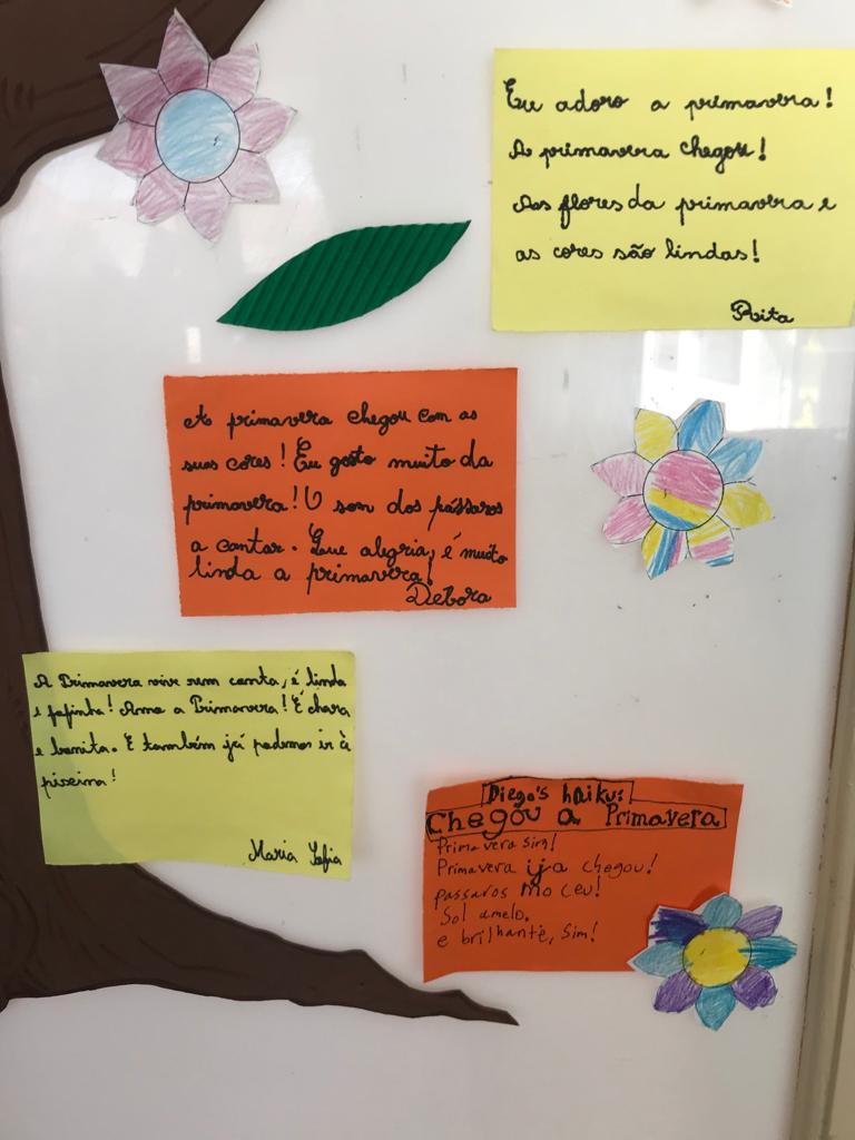 Na aula de Educação Musical, os alunos aprenderam a canção “O Girassol” e, em Artes Visuais, elaboraram marcadores de livros a partir de tulipas em origami.