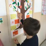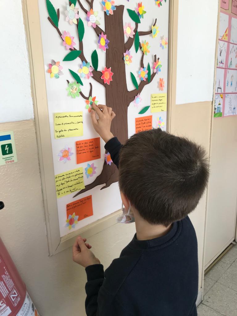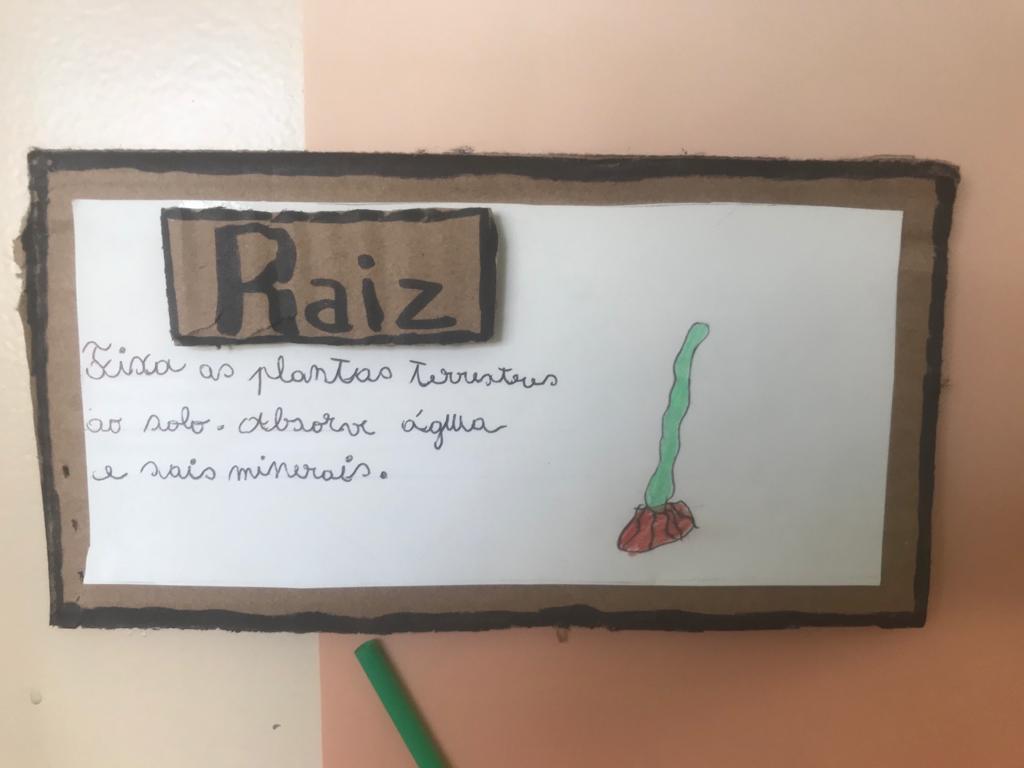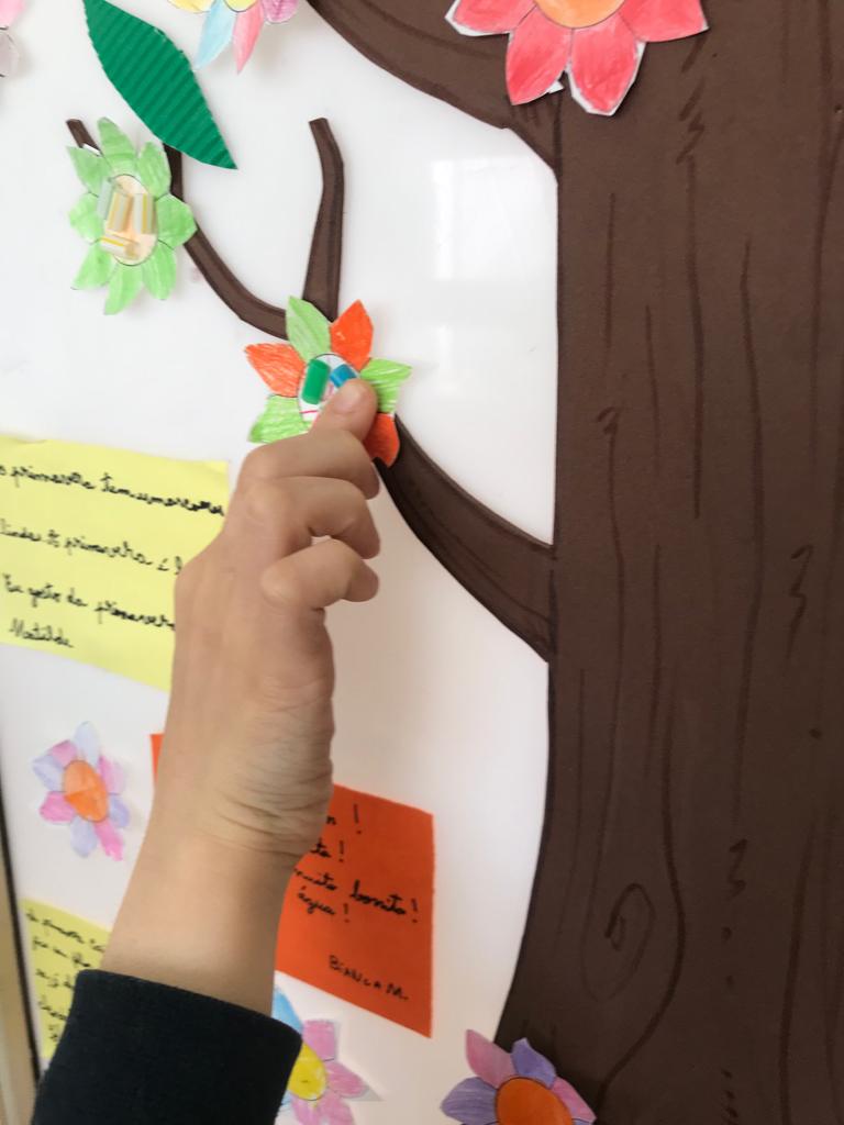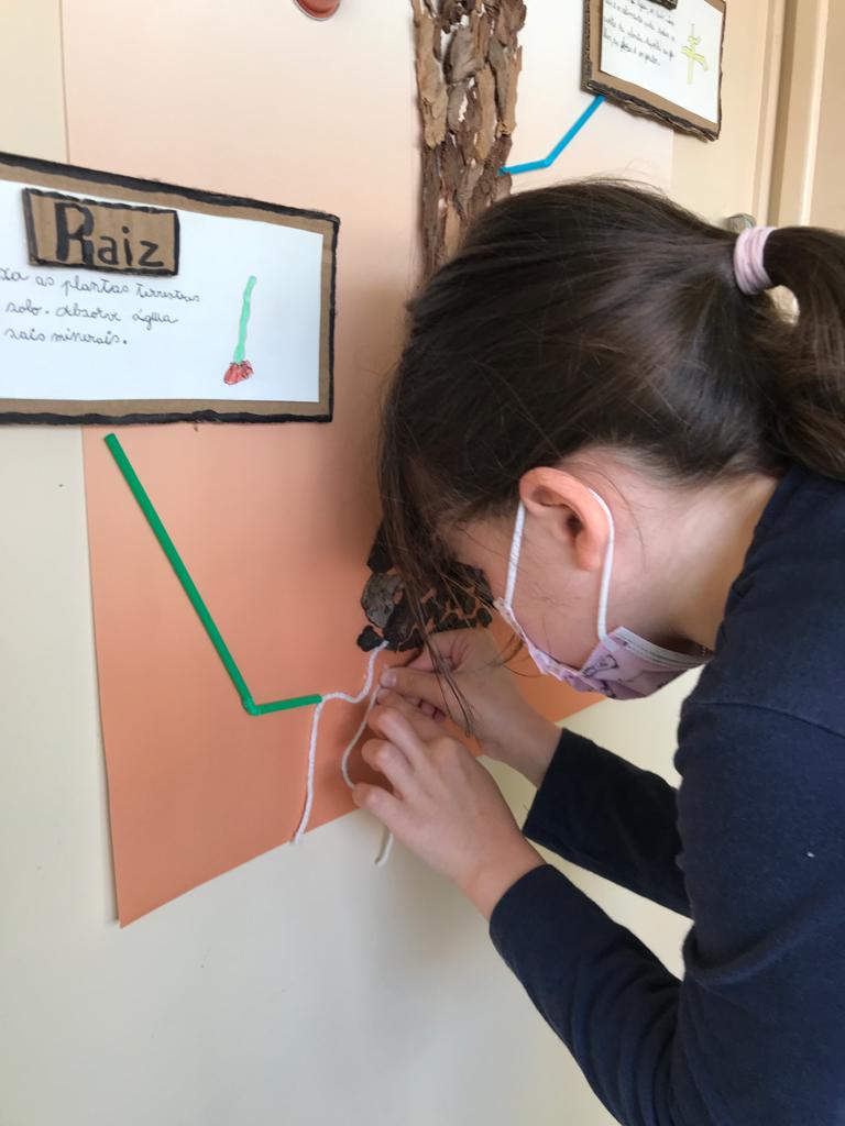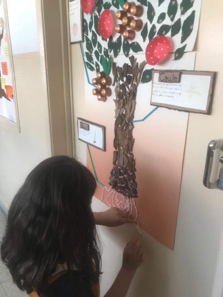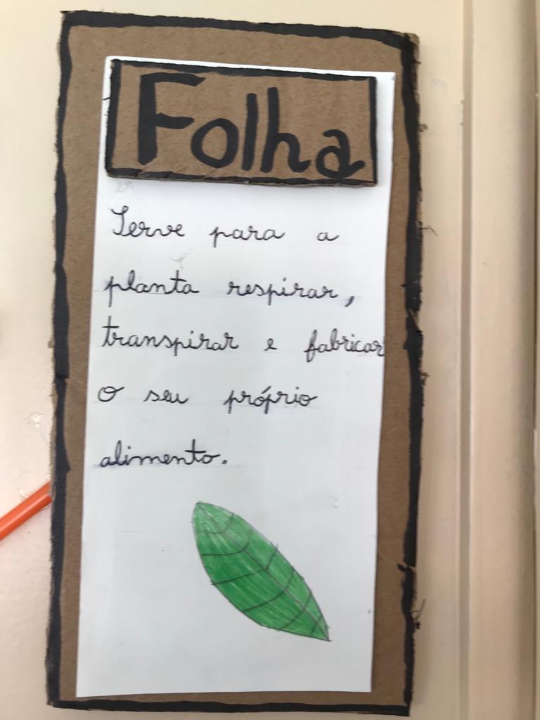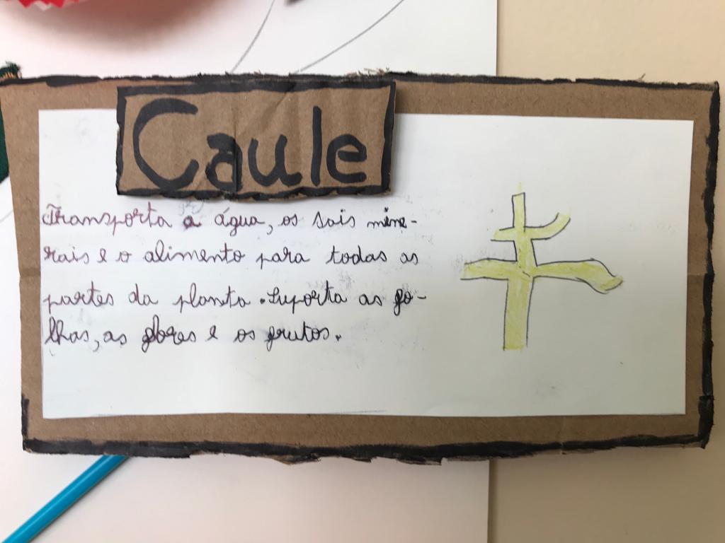 Partindo da história “O Nabo Gigante”, de António Mota, a turma de 2º ano fez uma pesquisa sobre várias espécies de plantas. Através deste tema, utilizando o conhecimento adquirido sobre as partes constituintes de uma planta completa, aprenderam também a organizar um texto informativo. Trabalharam também sobre o texto não literário descrevendo uma experiência efetuada com gerberas brancas, uma espécie de flor. Recolheram também alguns materiais reutilizáveis – como por exemplo cápsulas de café, retalhos de tecido, casca de árvores, entre outros – para construir o modelo de uma planta completa.