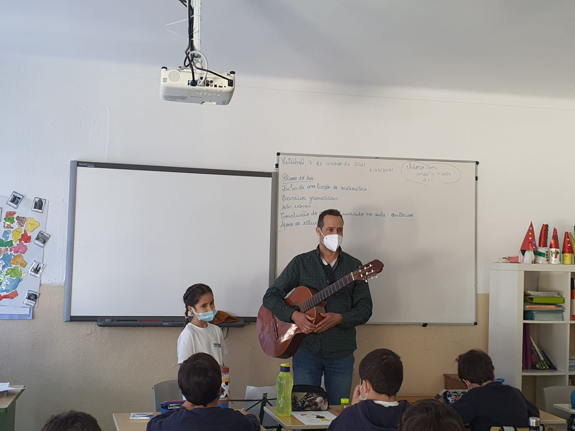 Por sua vez, o professor Nuno veio à nossa sala e apresentou-nos com a nossa colega Lara a música de uma série que vimos excertos “Era uma vez o universo”.