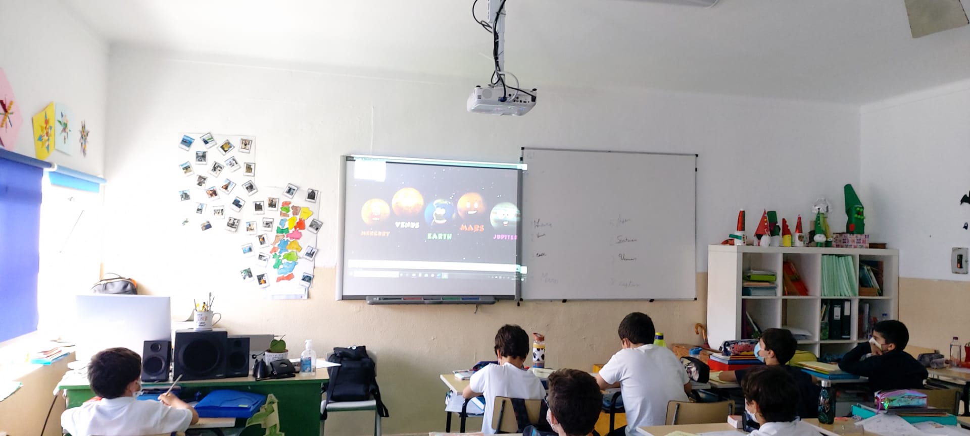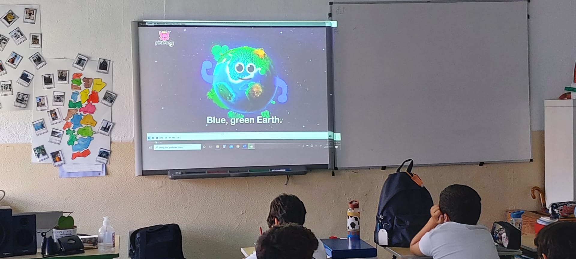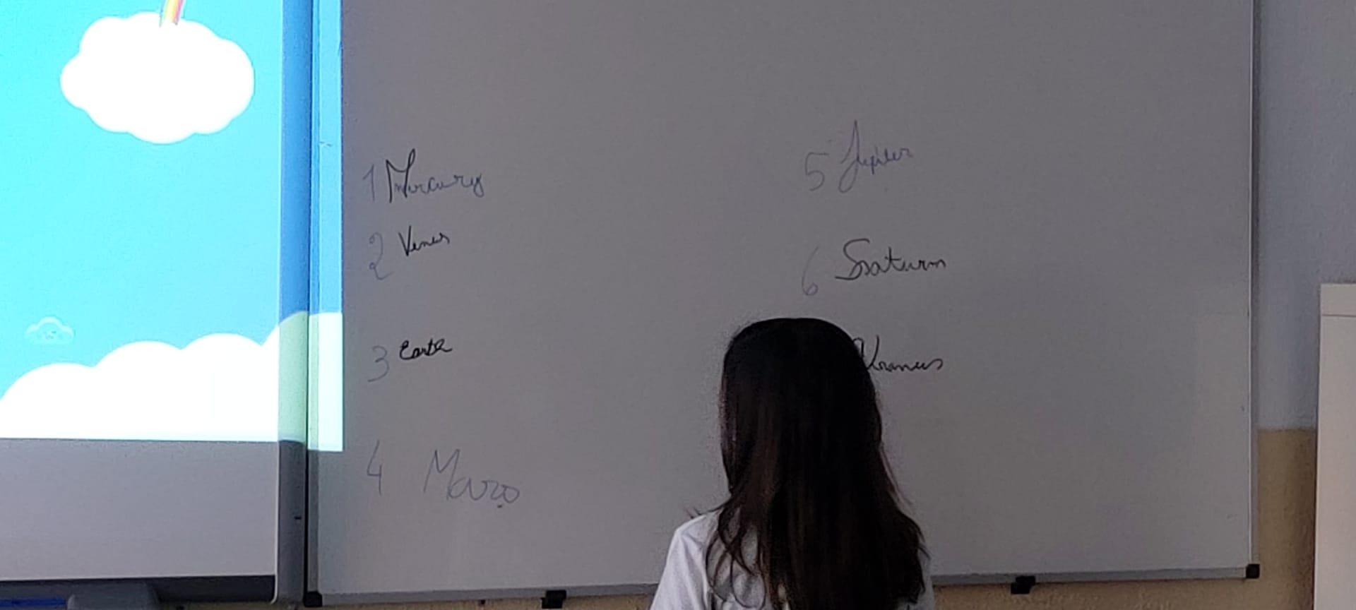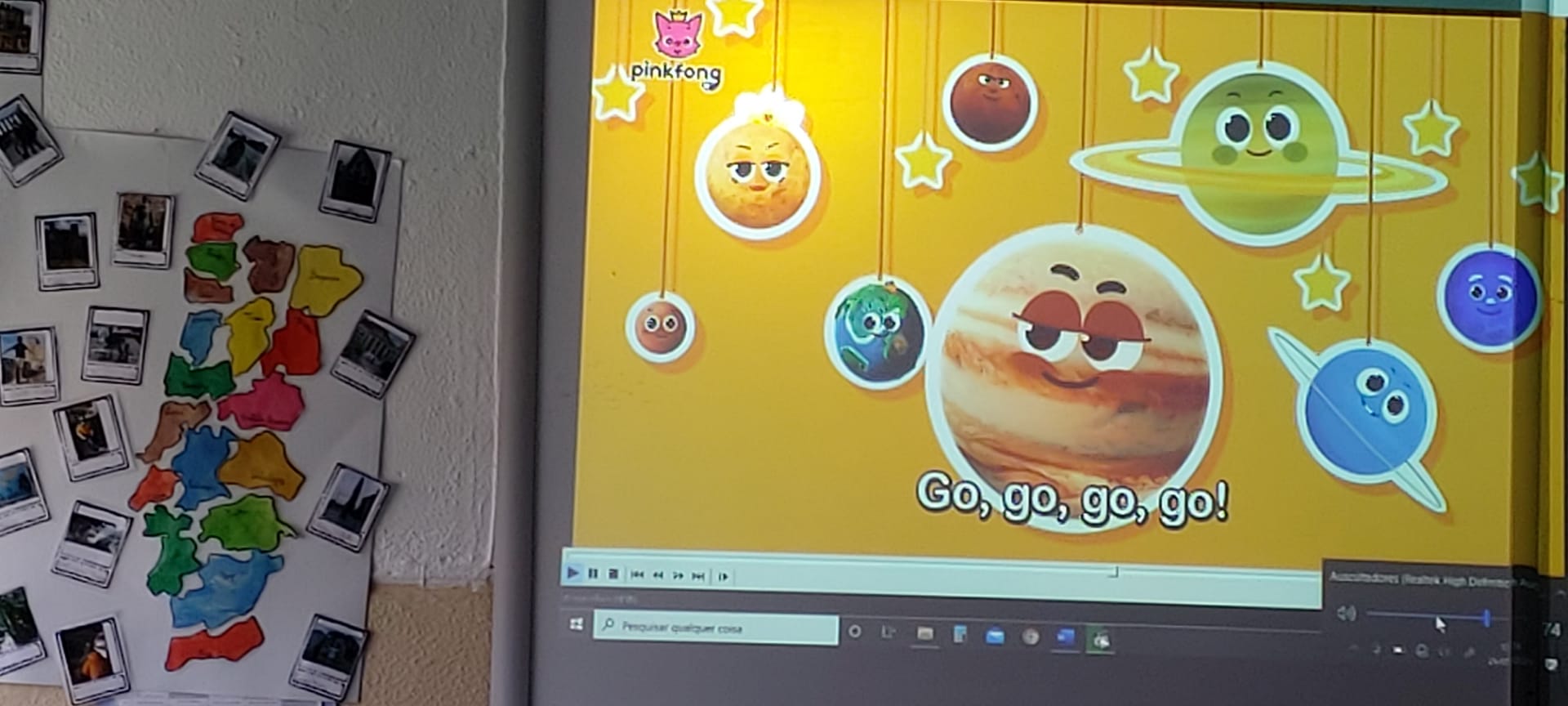 Em inglês também visualizámos um vídeo e aprendemos como se dizem os nomes dos planetas do Sistema Solar em inglês.