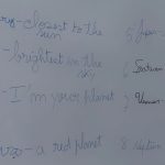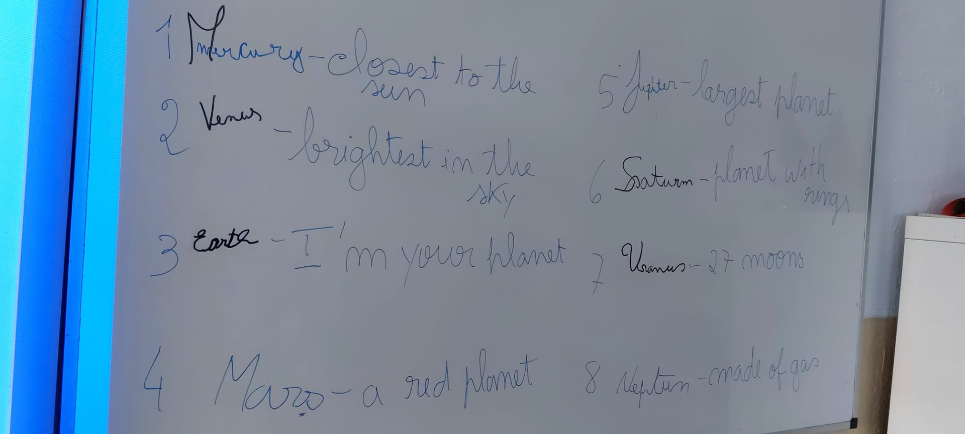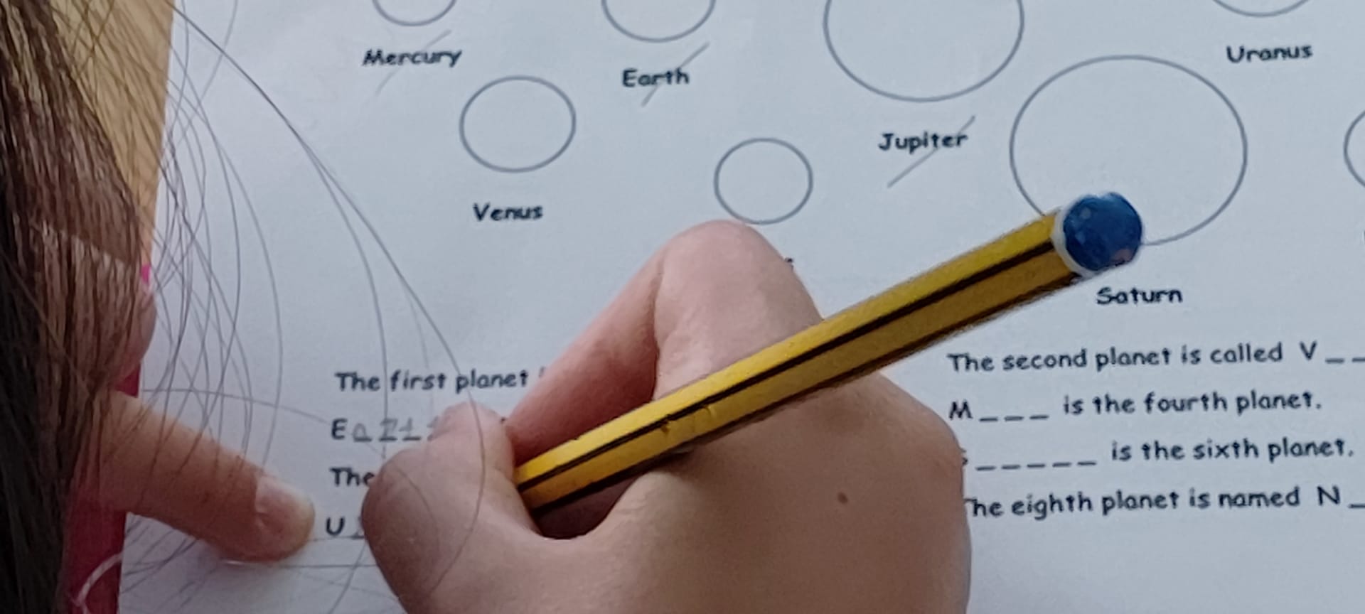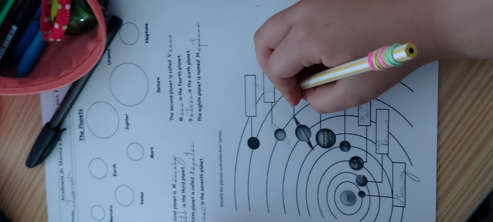 Em inglês também visualizámos um vídeo e aprendemos como se dizem os nomes dos planetas do Sistema Solar em inglês.