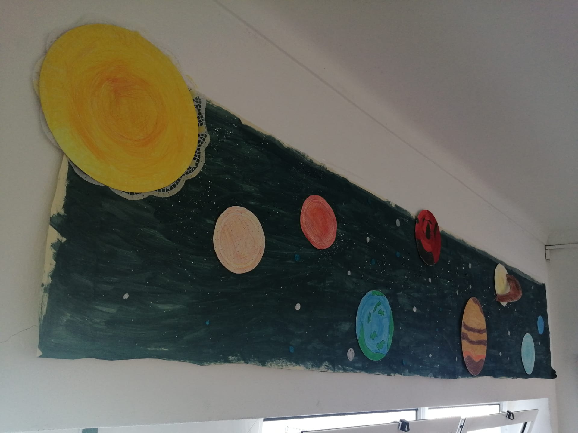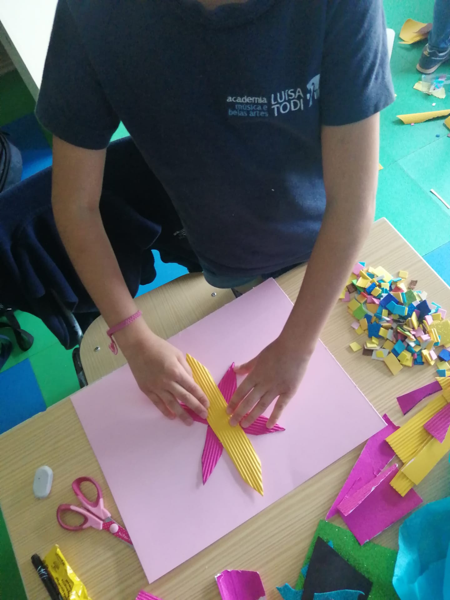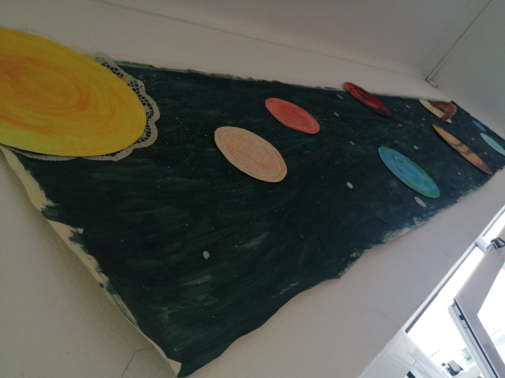 Com a professora Mara, em Artes Visuais criámos o nosso universo e aprendemos a fazer foguetões em origami.