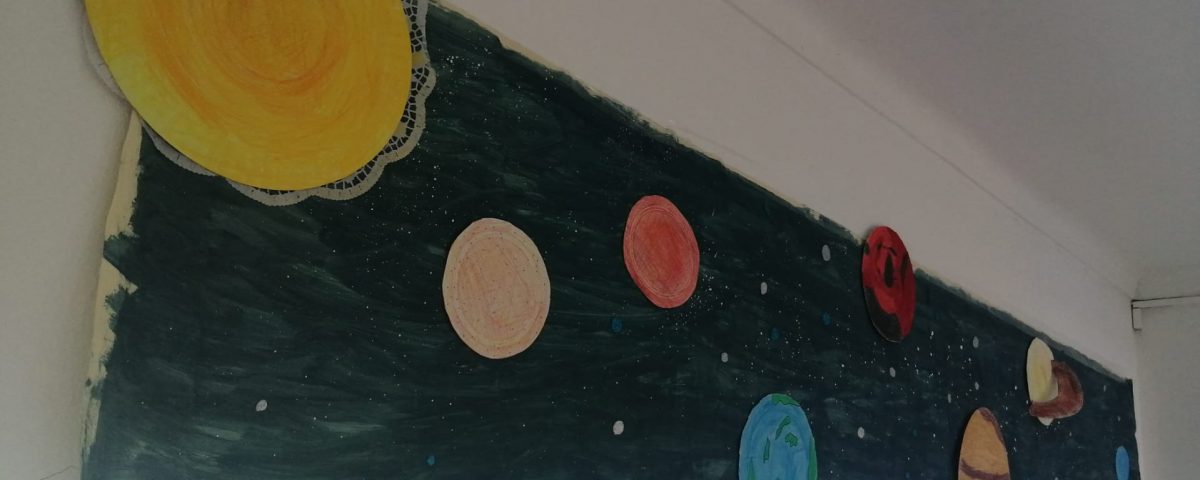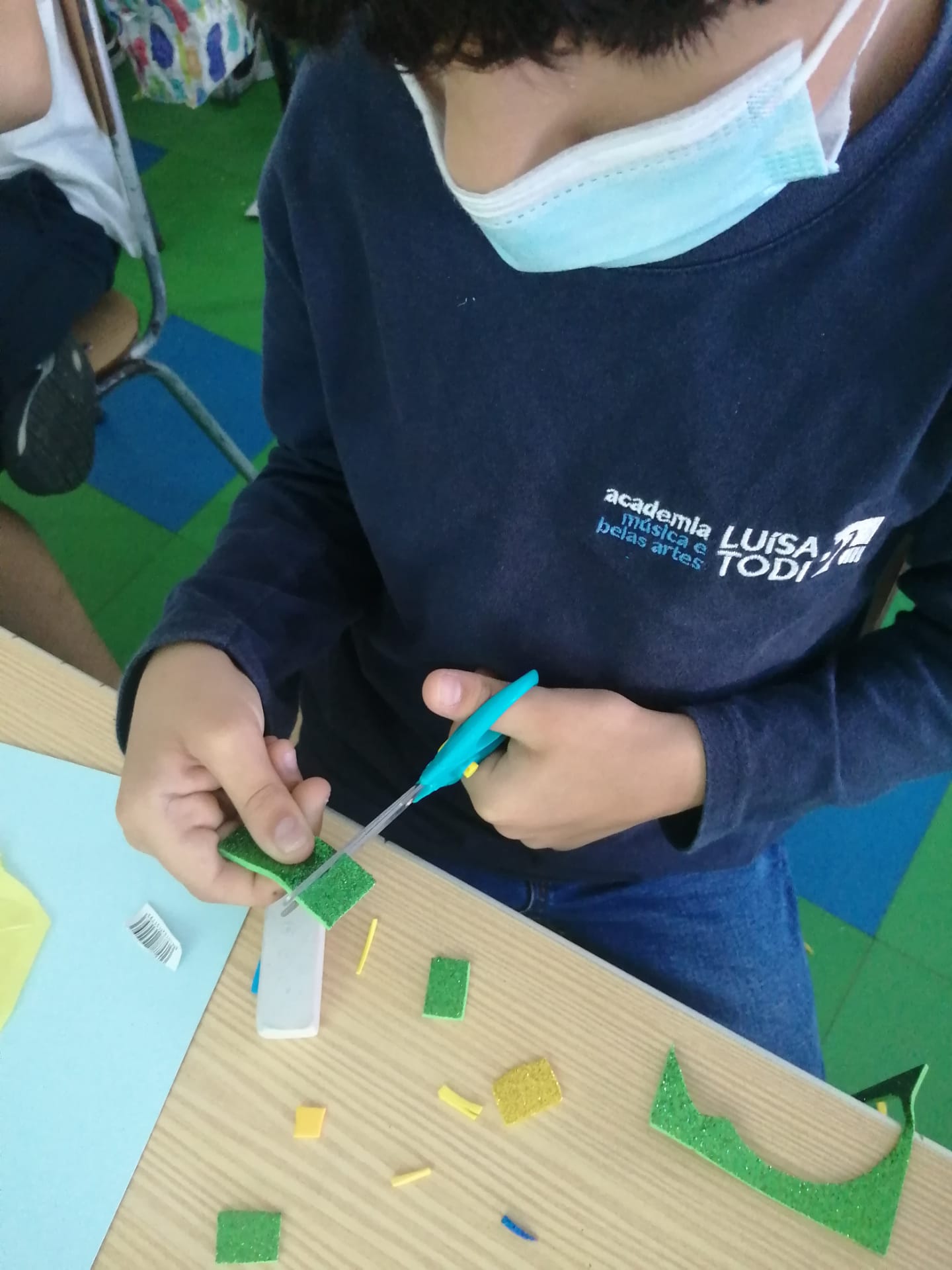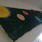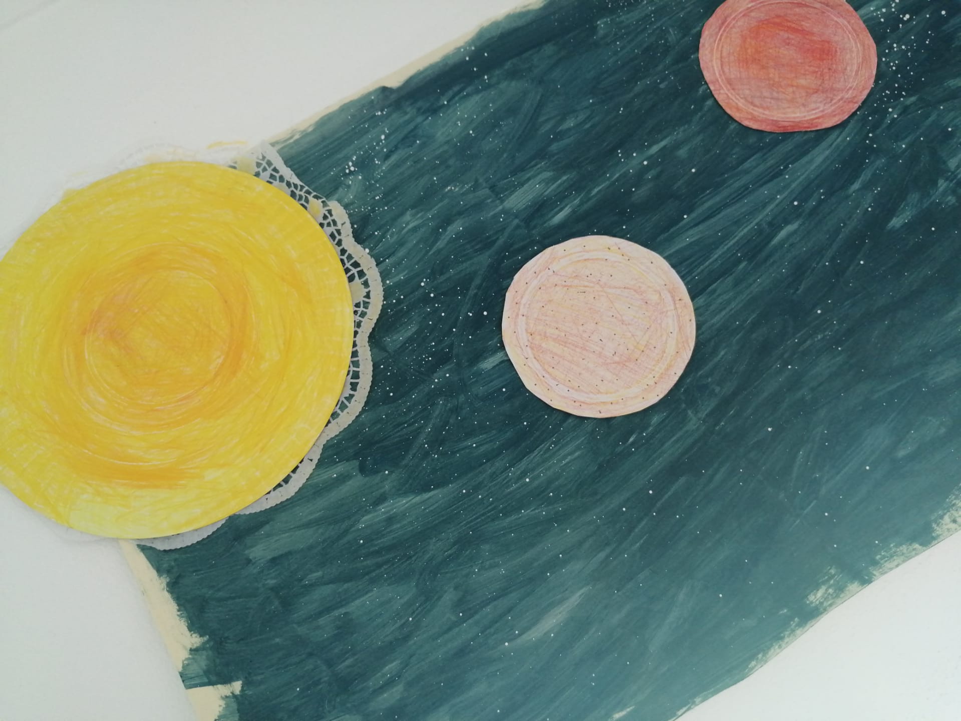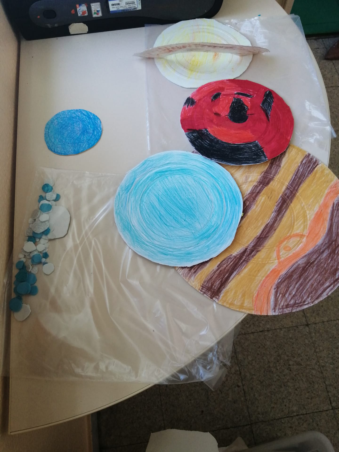 Com a professora Mara, em Artes Visuais criámos o nosso universo e aprendemos a fazer foguetões em origami.