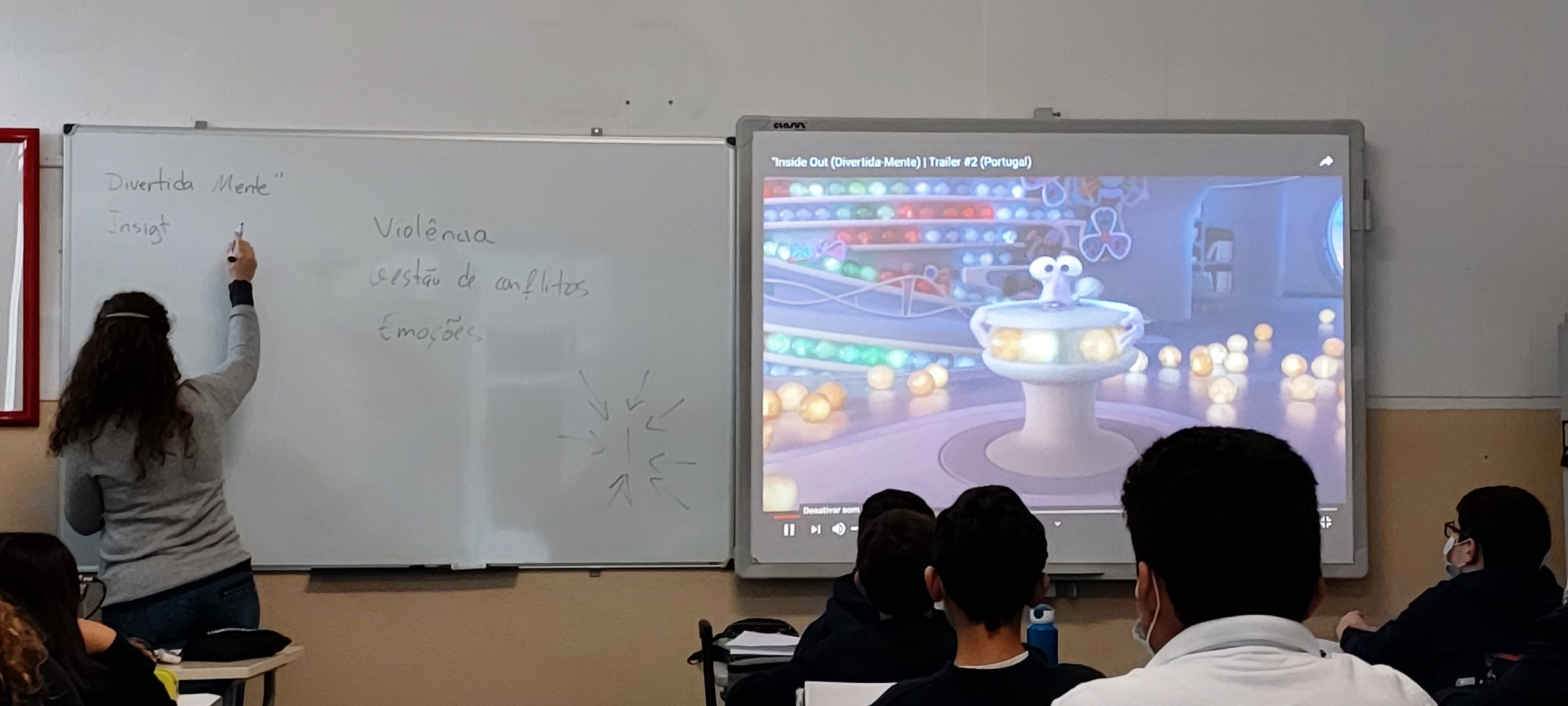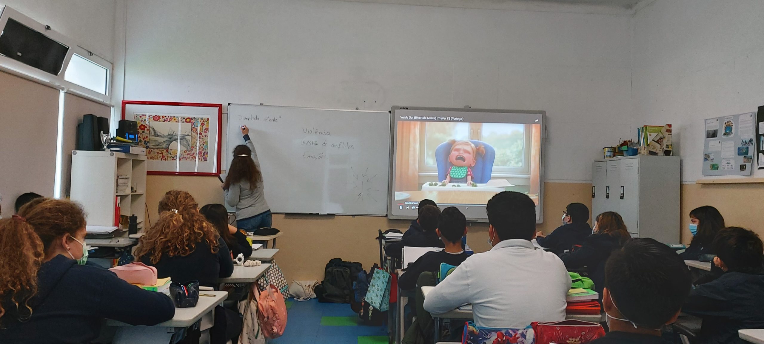 Violino- Apresentação do tema “Violência”, “Gestão de conflitos” e “Emoções”, com a projeção de alguns excertos do filme Divertida Mente.