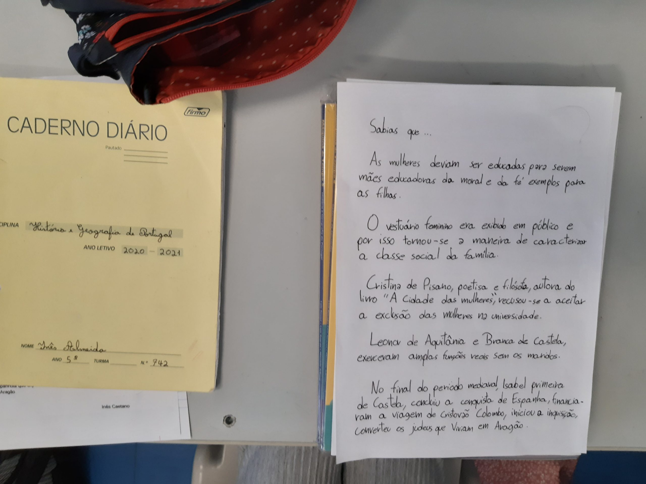 HGP– Realização de pesquisas sobre o papel da mulher na Idade Média, tendo posteriormente sido realizados textos informativos sobre o tema.