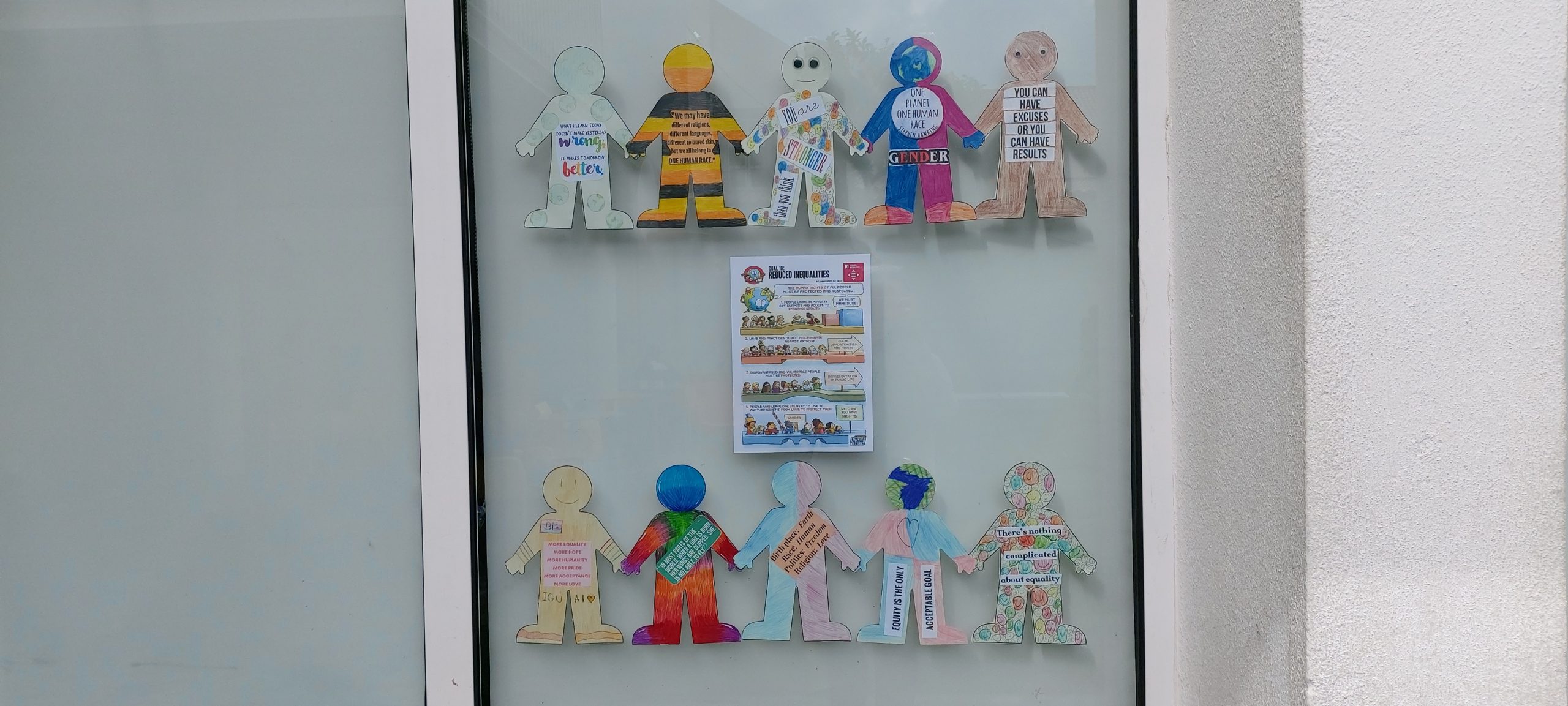 No desenvolvimento do objetivo 10, pretendeu-se sensibilizar os alunos para a promoção da inclusão social, económica e política de todos, independentemente da idade, género, deficiência, raça, etnia, origem, religião, condição económica ou outra. Foi dada especial importância ao garantir a igualdade de oportunidades e reduzir as desigualdades.