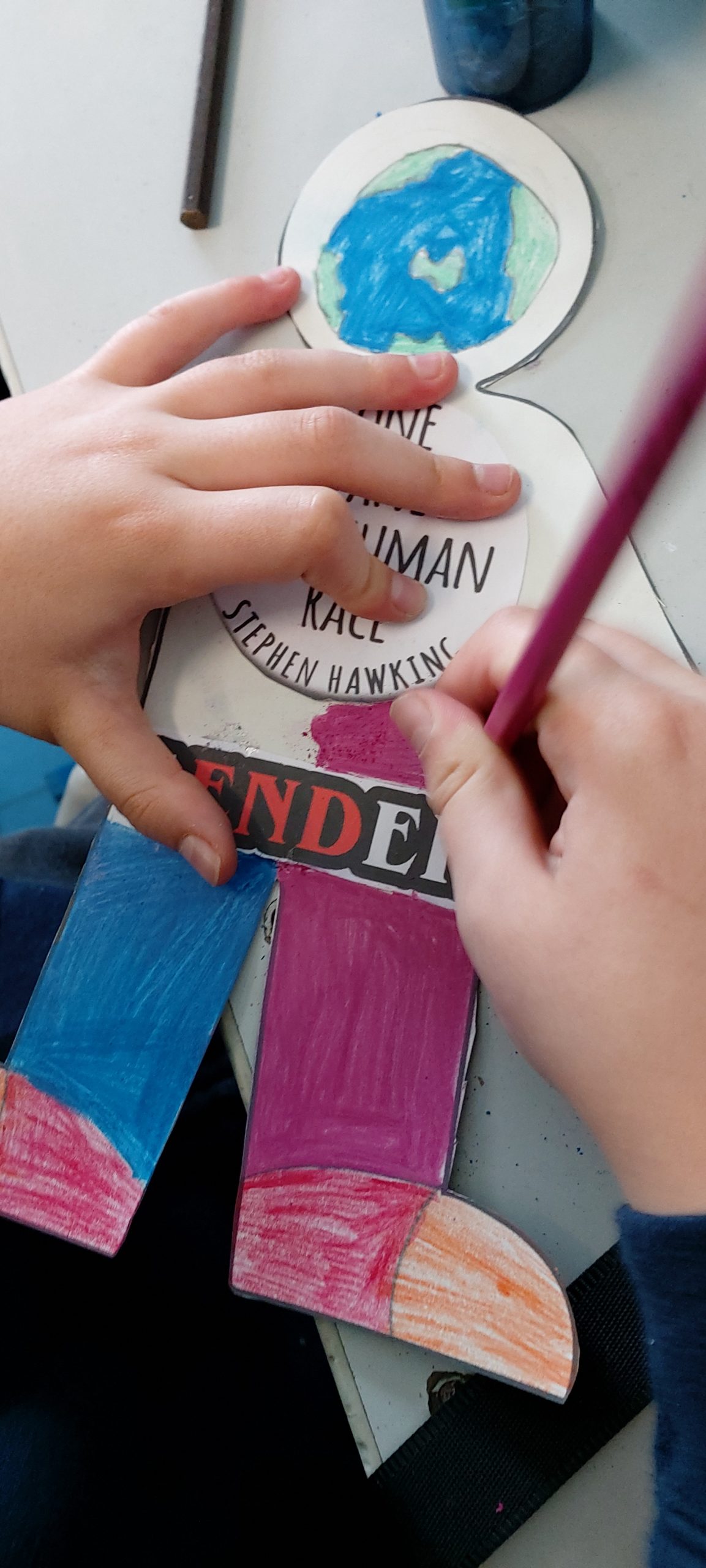 Oficina Criativa – Realização de pesquisas sobre personalidades femininas que se tenham destacado em várias áreas profissionais. Construção de cubos para cada uma dessas personalidades. Em cada uma das faces será colocada informação alusiva à personalidade retratada. Para além da tipologia textual: texto biográfico, os alunos utilizaram técnicas variadas.