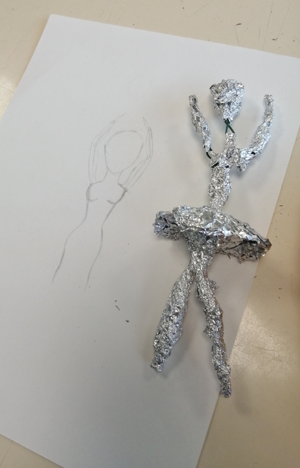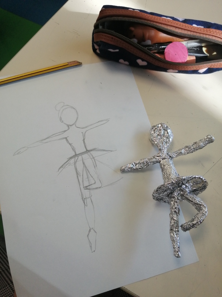 Educação Visual – Elaboração de desenhos/esboços e construção de estatuetas (maioritariamente femininas) utilizando material riscador e diversos materiais como arame; papel; plasticina; fita de pintor ou fita cola; folha de alumínio; jornal e/ou pasta de modelar.