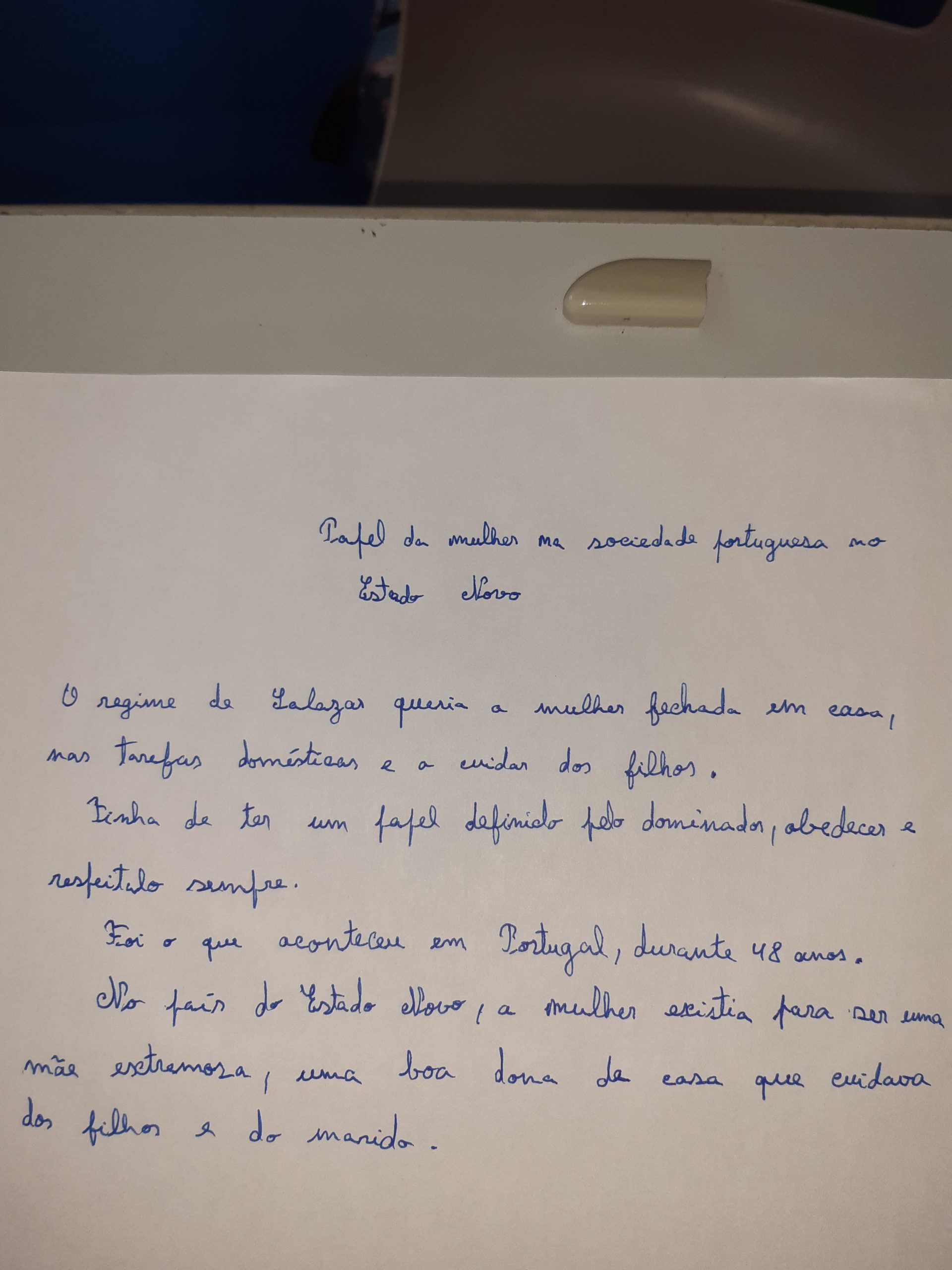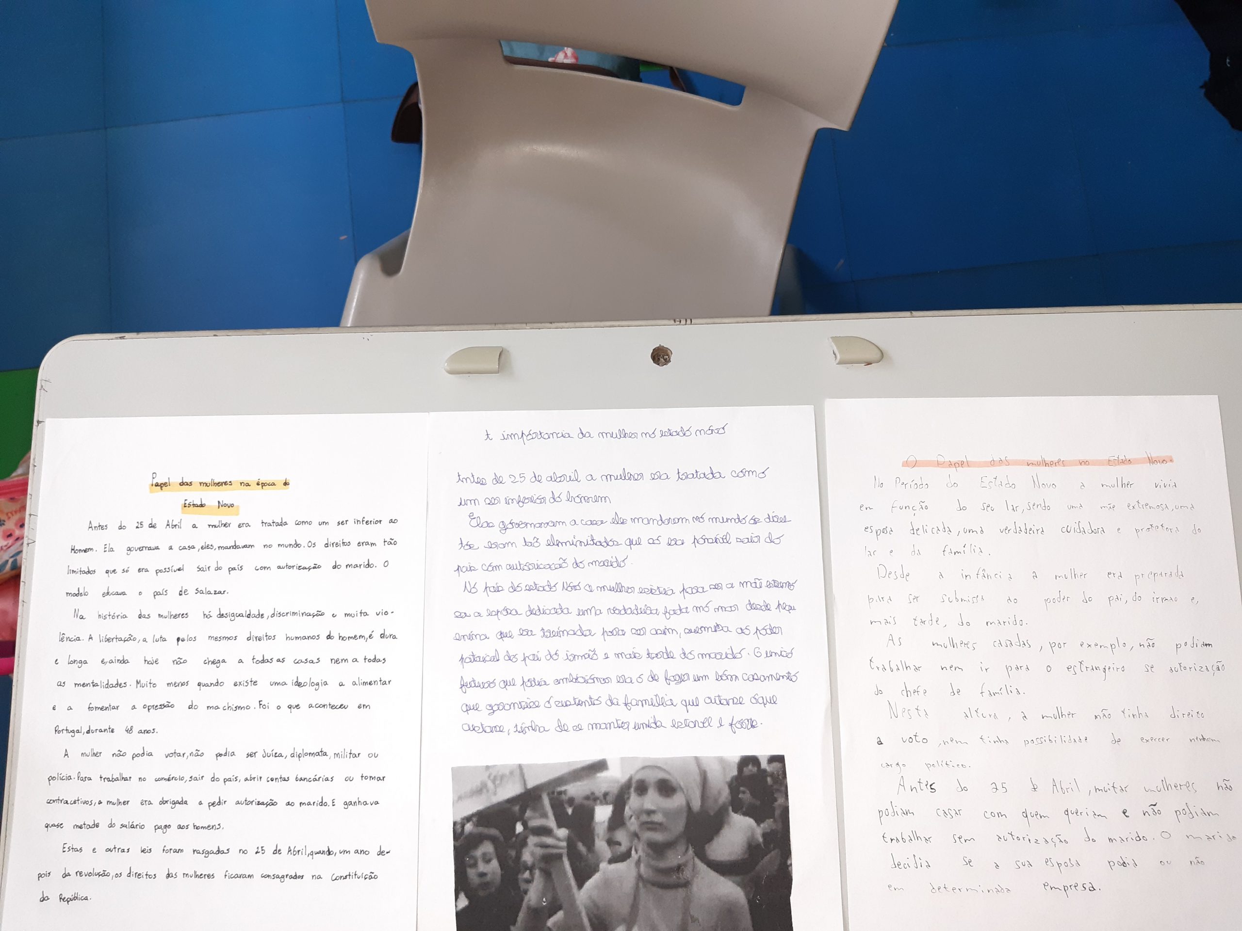 HGP– Realização de pesquisas sobre o papel da mulher na 1ª República e no período do Estado Novo, tendo posteriormente realizado textos informativos sobre o tema. Exposição dos trabalhos.